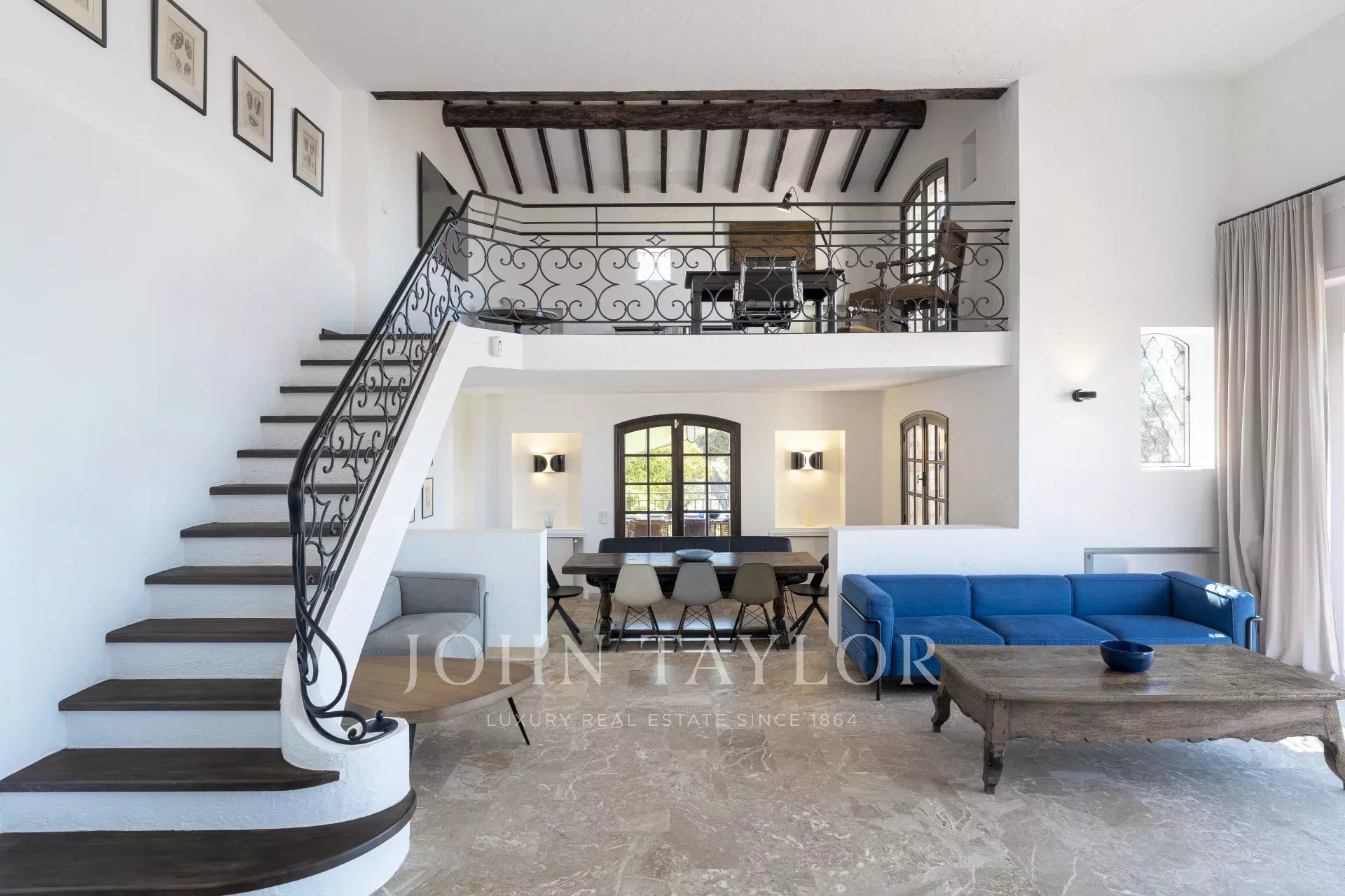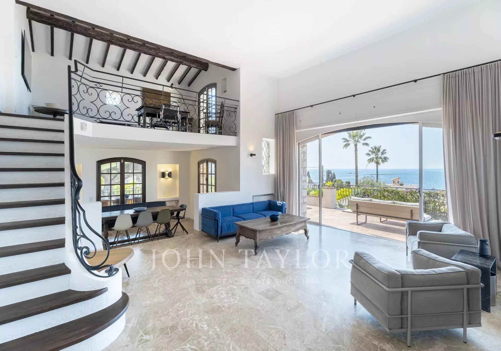 Elle se compose d'une entrée, cuisine équipée, grand séjour avec vue mer, bureau en mezzanine, coin cheminée, salle à manger. Le tout donnant sur terrasses ombragées ou ensoleillées.
