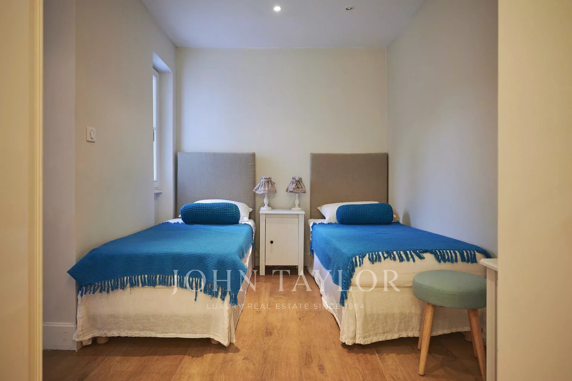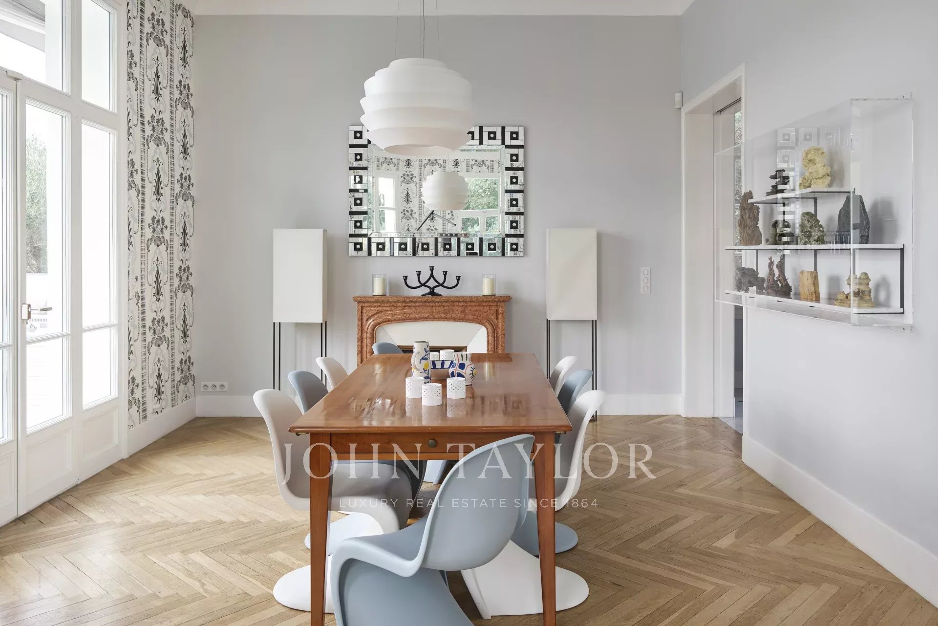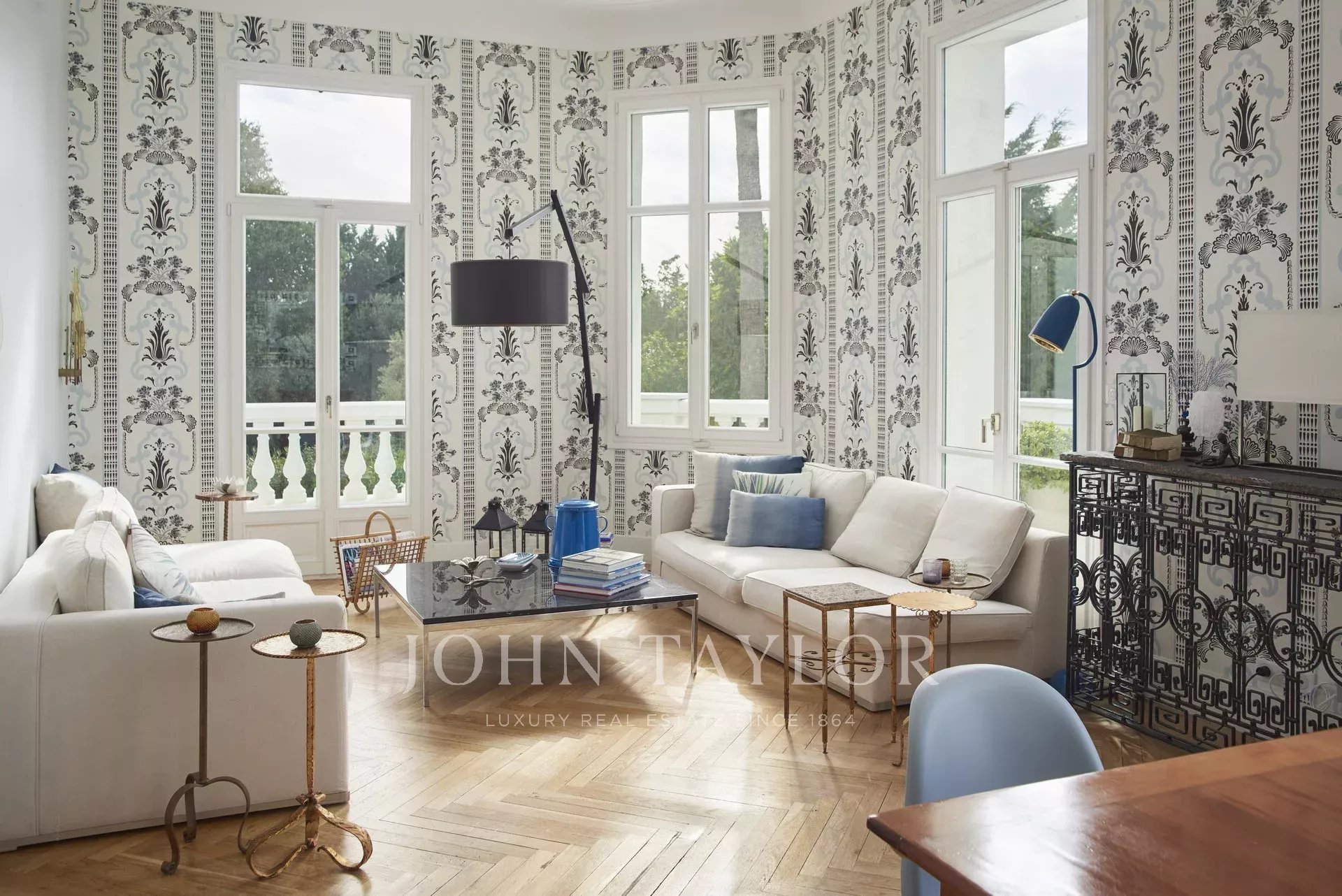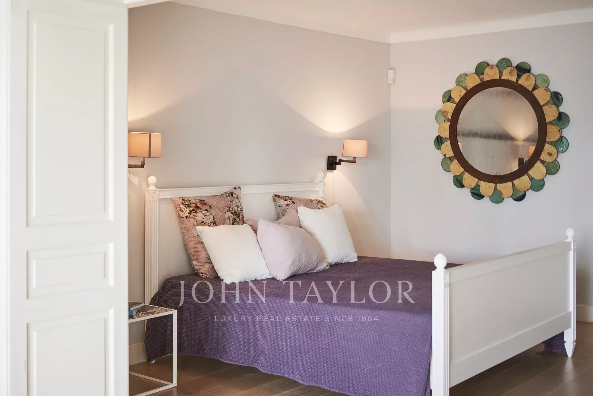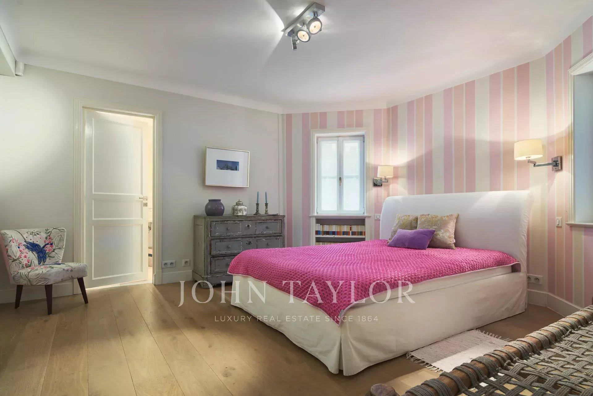 Datant de 1925, belle villa "Art Déco" récemment rénovée offrant de belles prestations dont la climatisation, de 350 m2 habitables au coeur d'un terrain de 1 600 m2, située à pied de Juan-les-Pins et d'Antibes. Quartier calme car au fond d'une impasse.