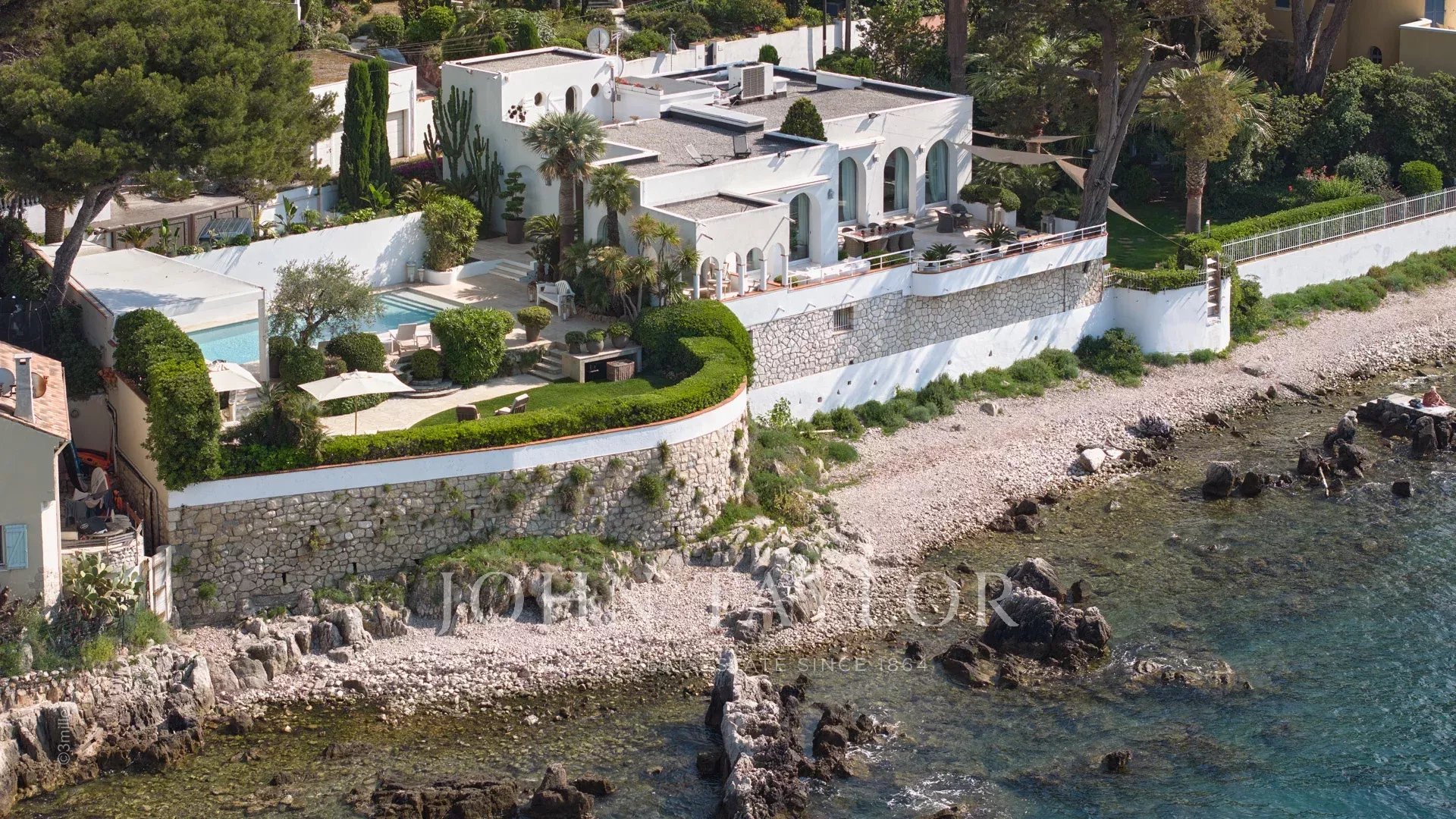 Découvrez cette somptueuse villa "pieds dans l'eau", offrant un accès privé à la mer et située à quelques minutes à pied du centre d'Antibes, ou de ses célèbres restaurants tels que "Le Bacon".
