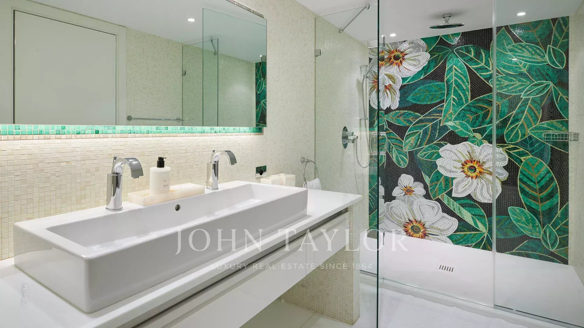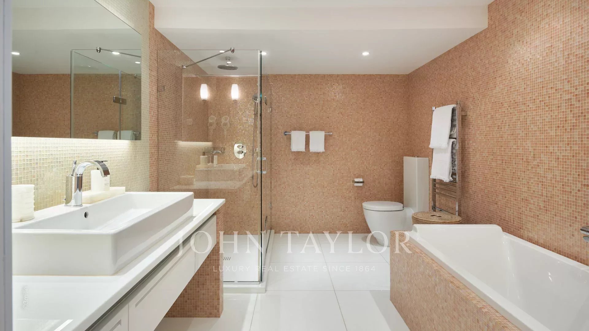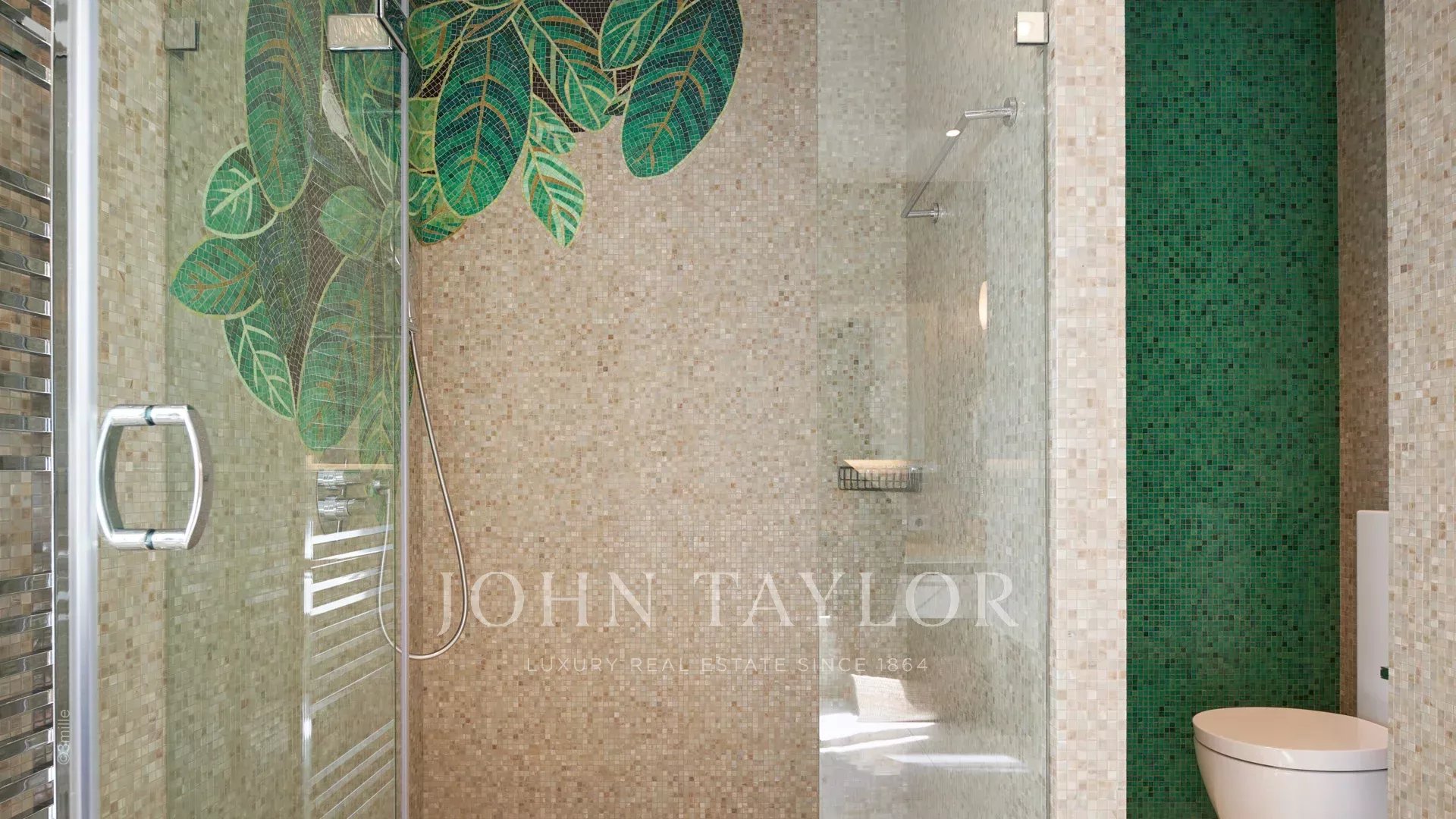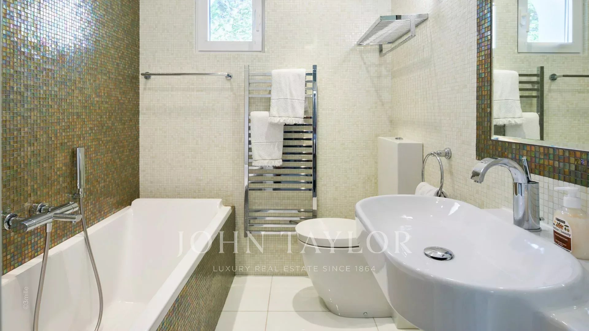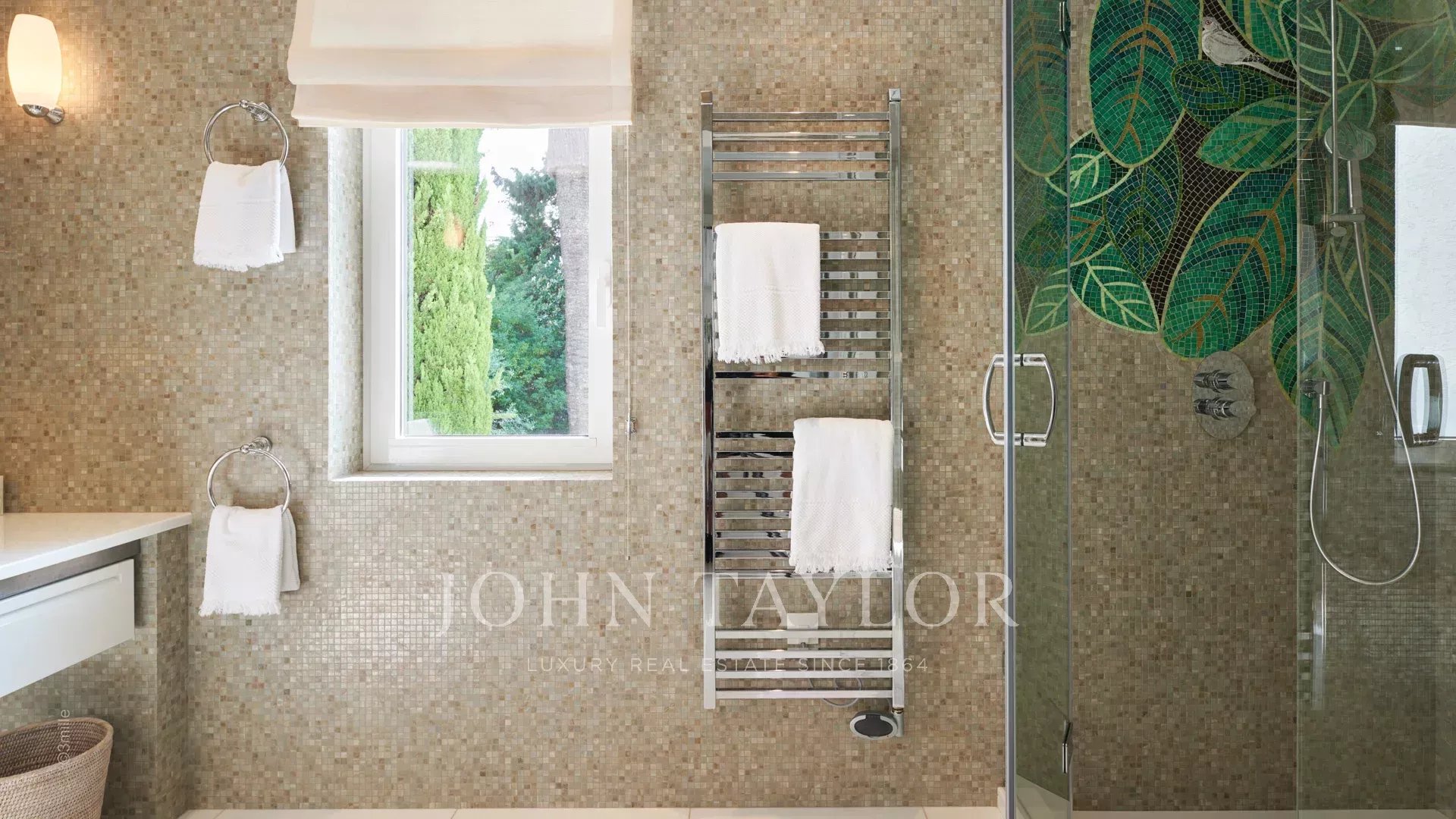 L'entrée vous guide vers une vaste réception ouvrant sur une magnifique terrasse avec vue sur la mer et le vieil Antibes, comprenant un salon et une salle à manger pouvant accueillir 12 personnes.