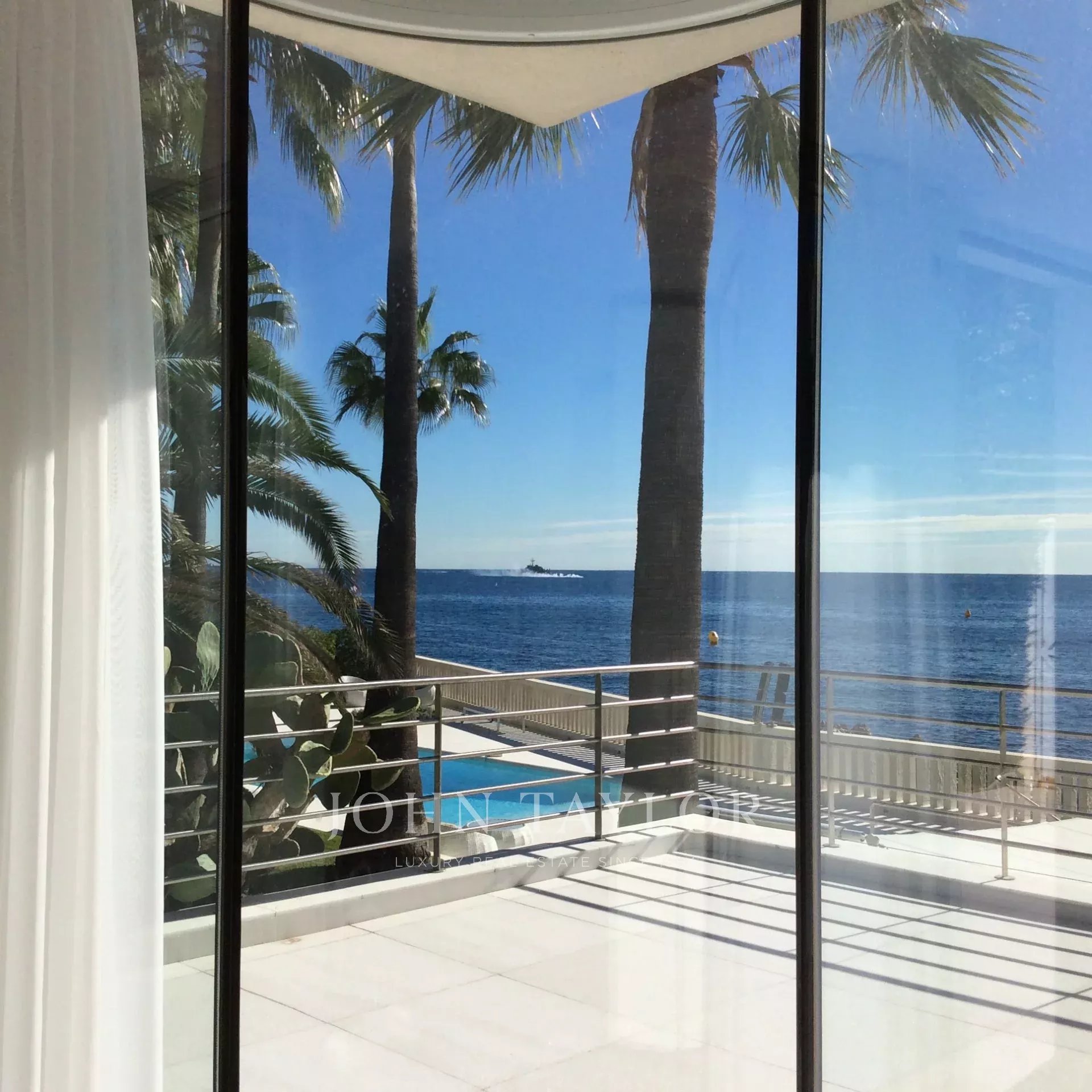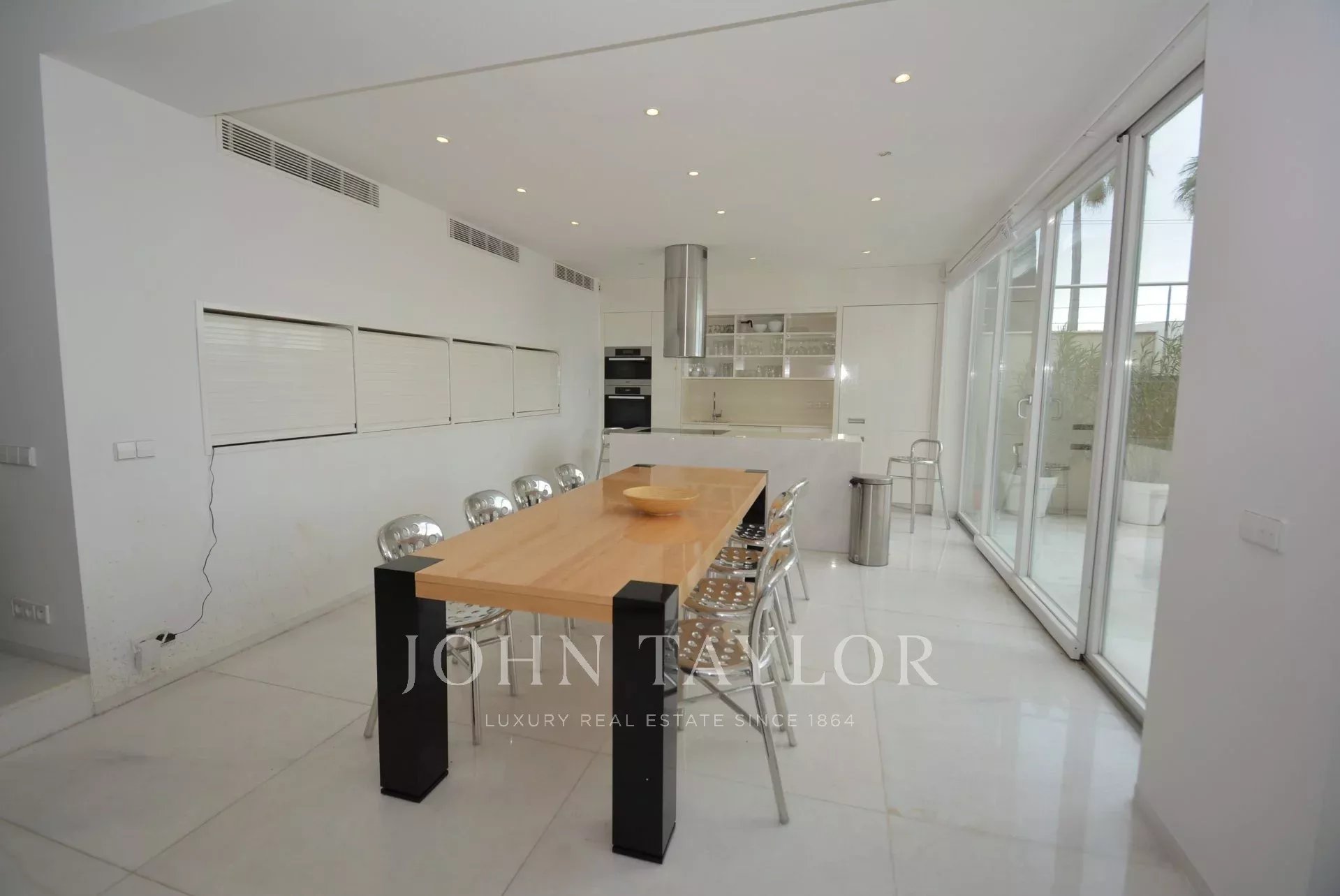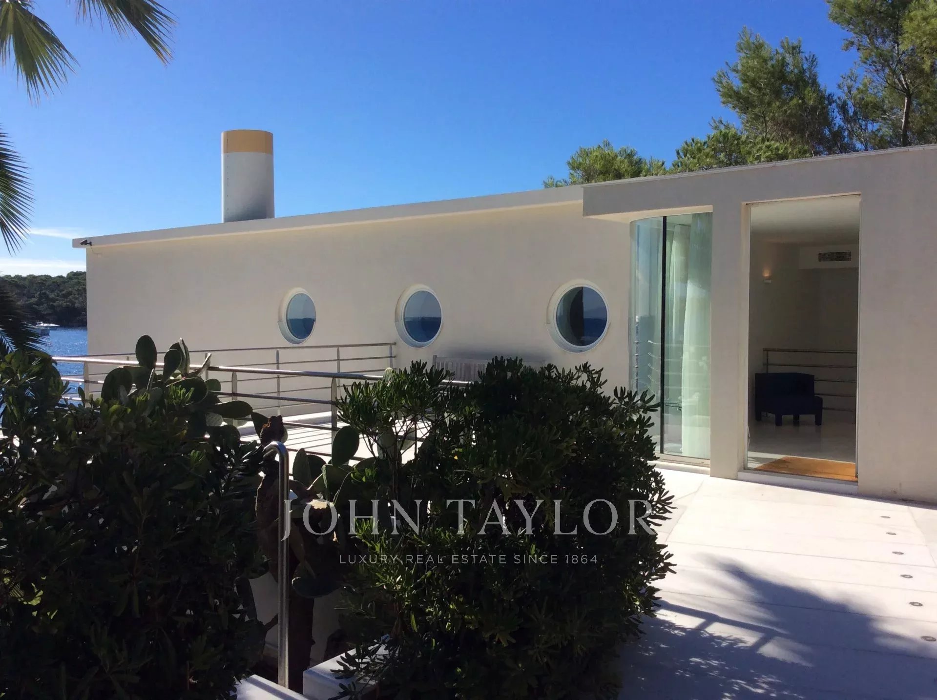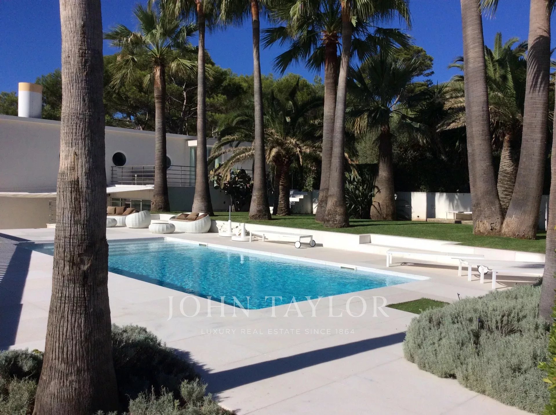 Sur le Cap d’Antibes, « pied dans l’eau » de style contemporain offrant 300 m2 habitables entièrement climatisés au cœur d’un terrain de 900 m2, à proximité immédiate des Plages de la Garoupe.