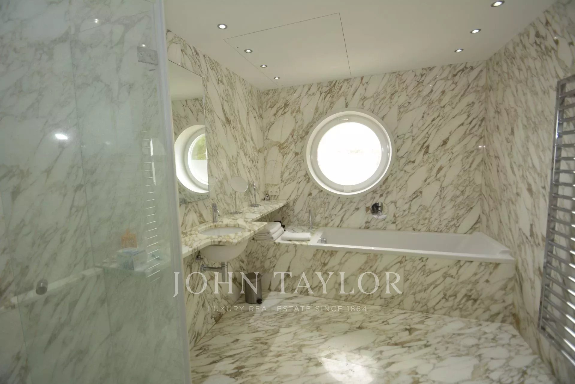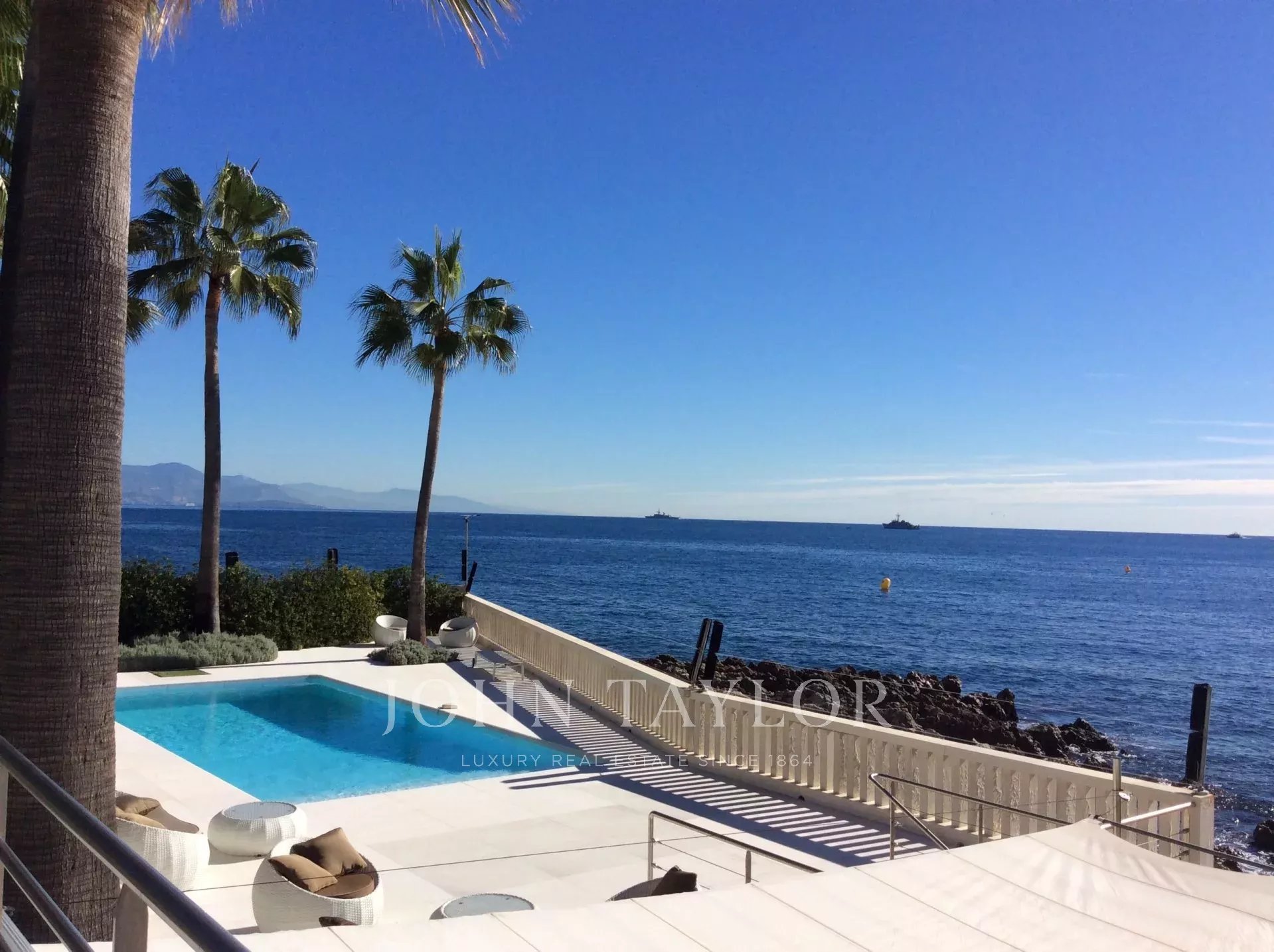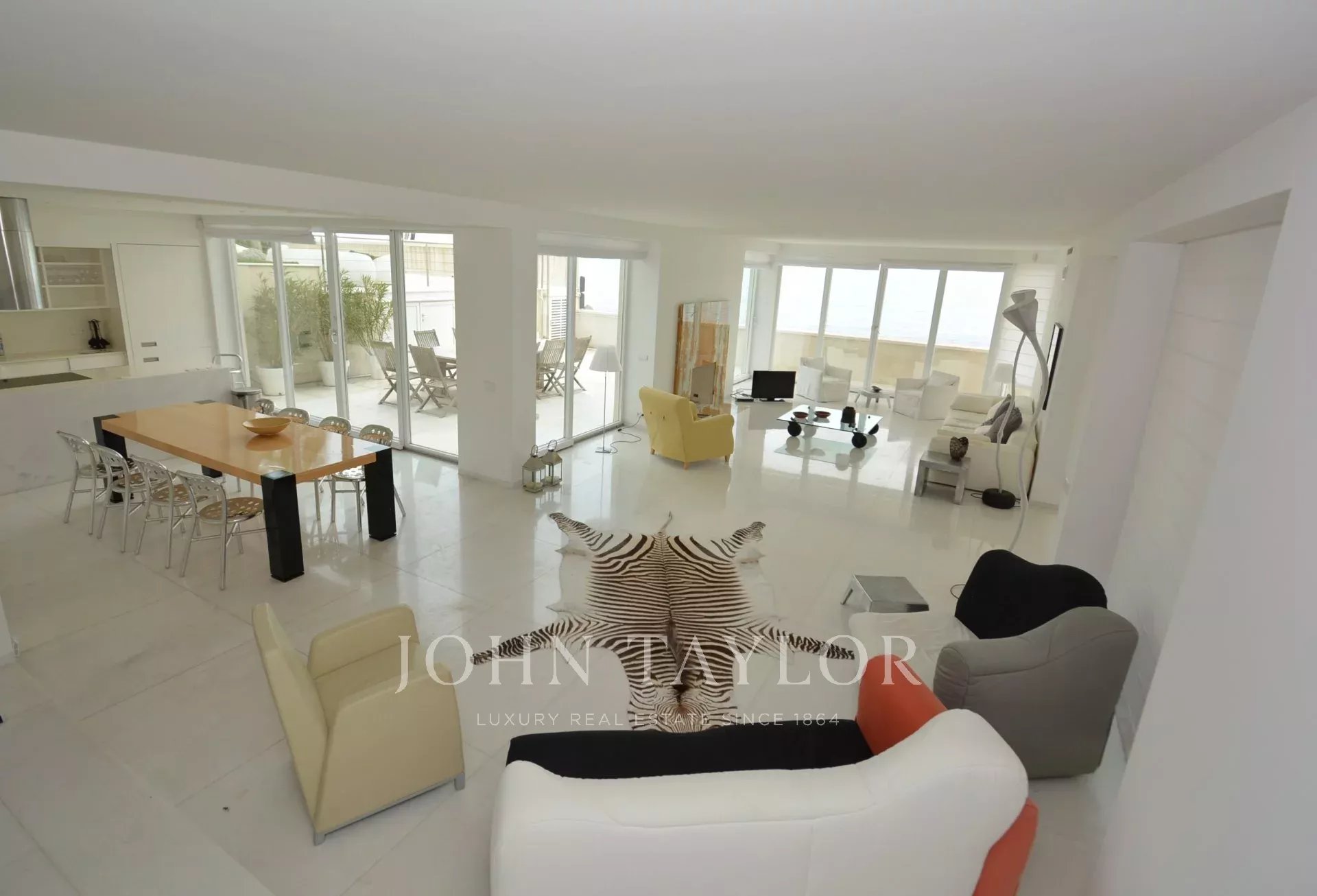 Sur le Cap d’Antibes, « pied dans l’eau » de style contemporain offrant 300 m2 habitables entièrement climatisés au cœur d’un terrain de 900 m2, à proximité immédiate des Plages de la Garoupe.
