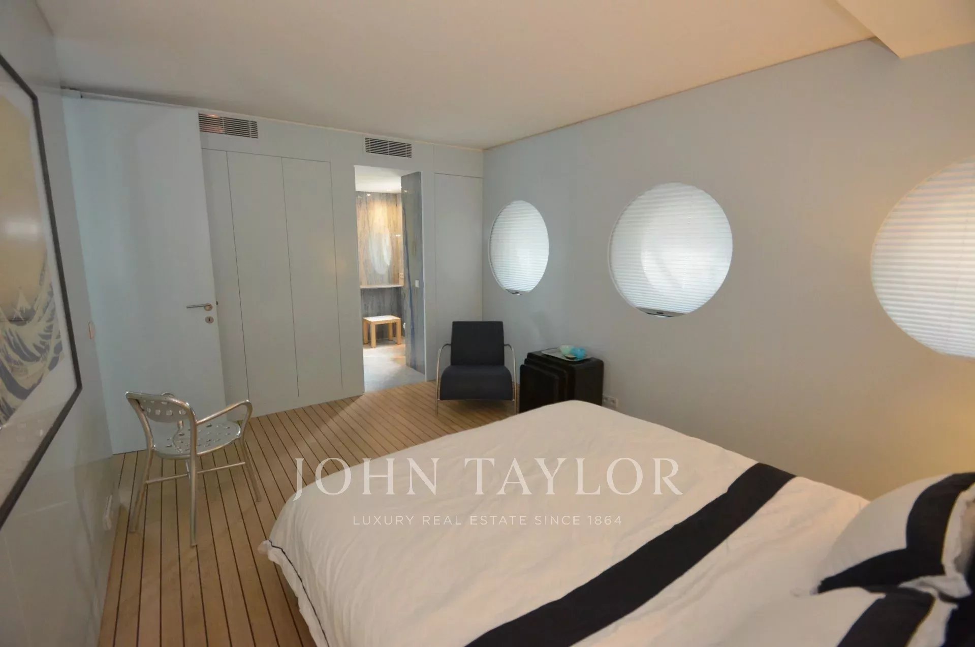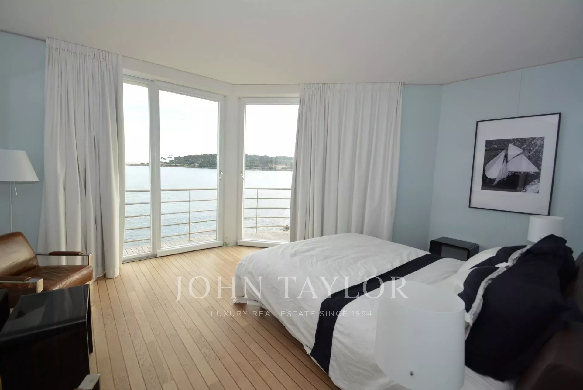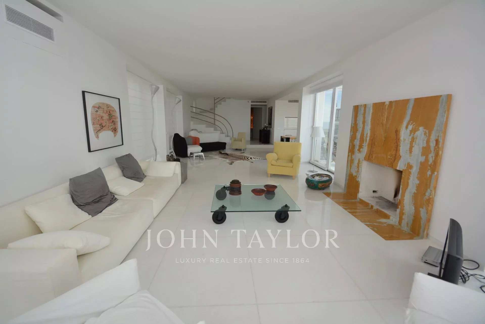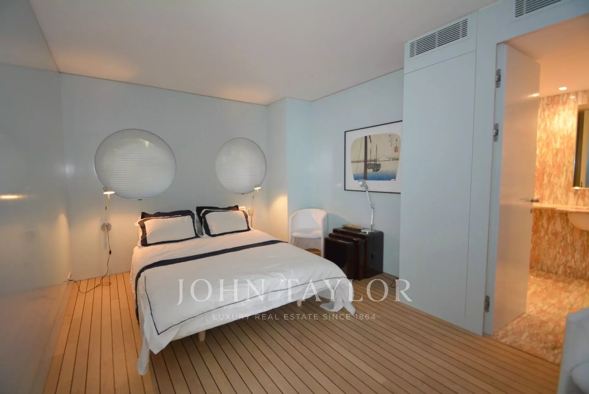 Sur le Cap d’Antibes, « pied dans l’eau » de style contemporain offrant 300 m2 habitables entièrement climatisés au cœur d’un terrain de 900 m2, à proximité immédiate des Plages de la Garoupe.