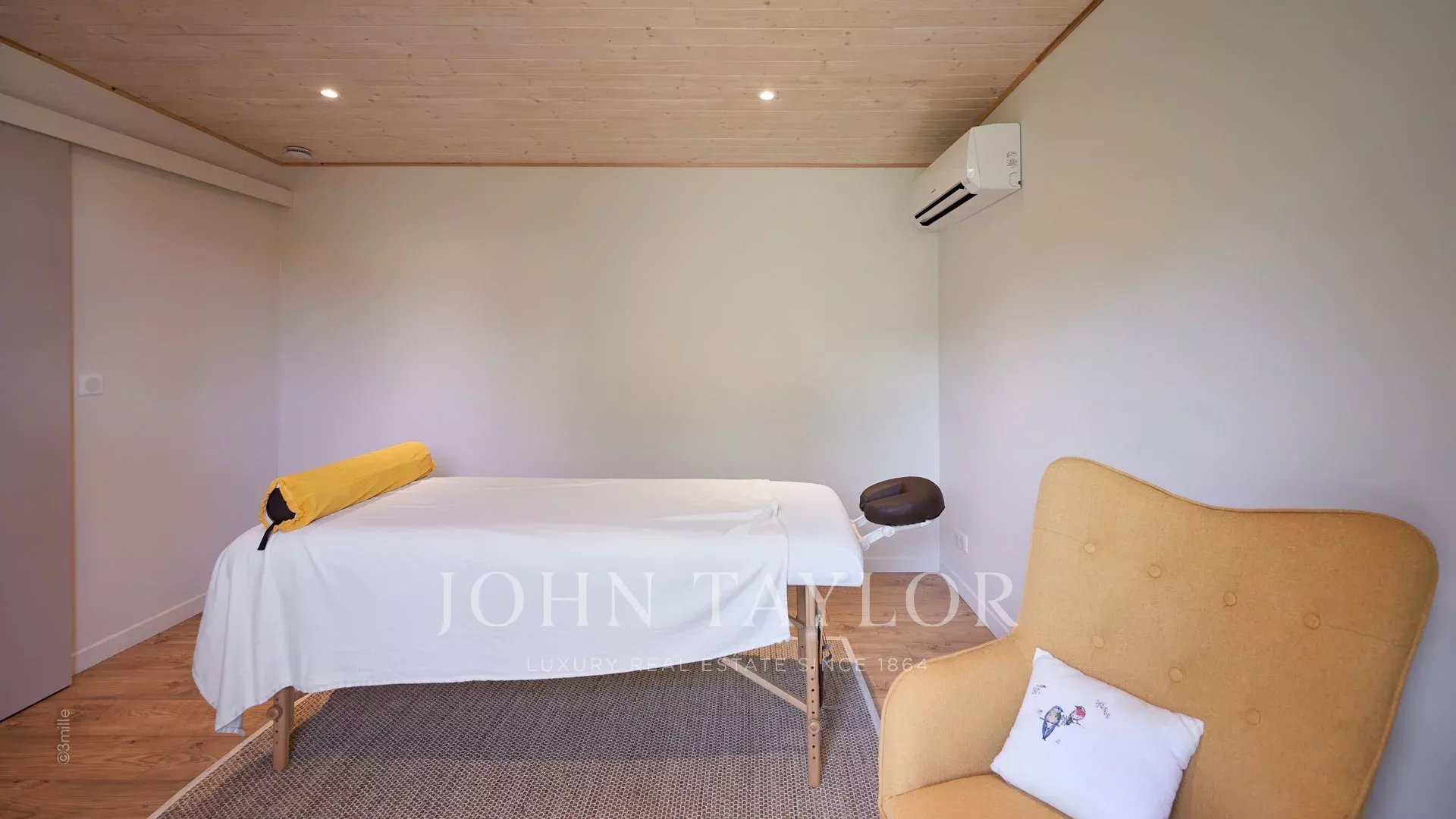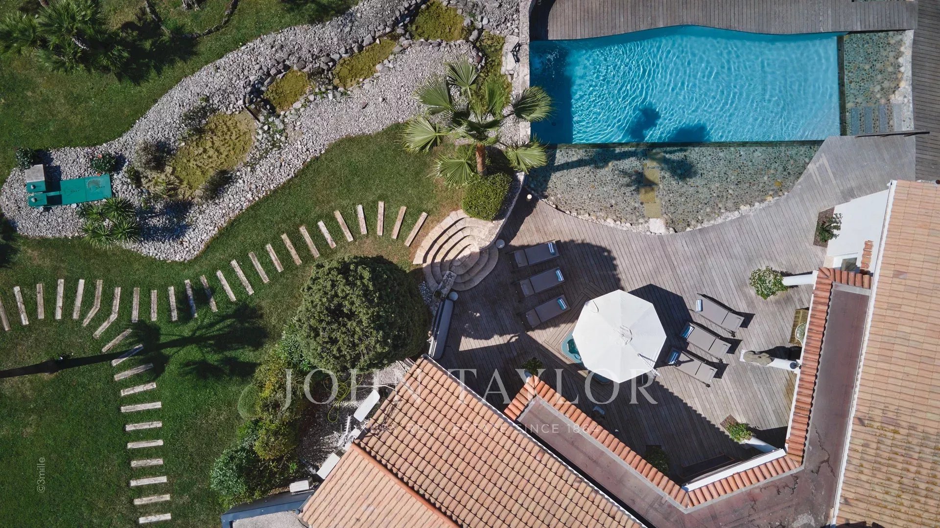 Située à 100 mètres du Port et des plages de la Salis et de la ville d'Antibes, belle villa contemporaine de 220m2 habitables au cœur d’un jardin de 2000 m2.