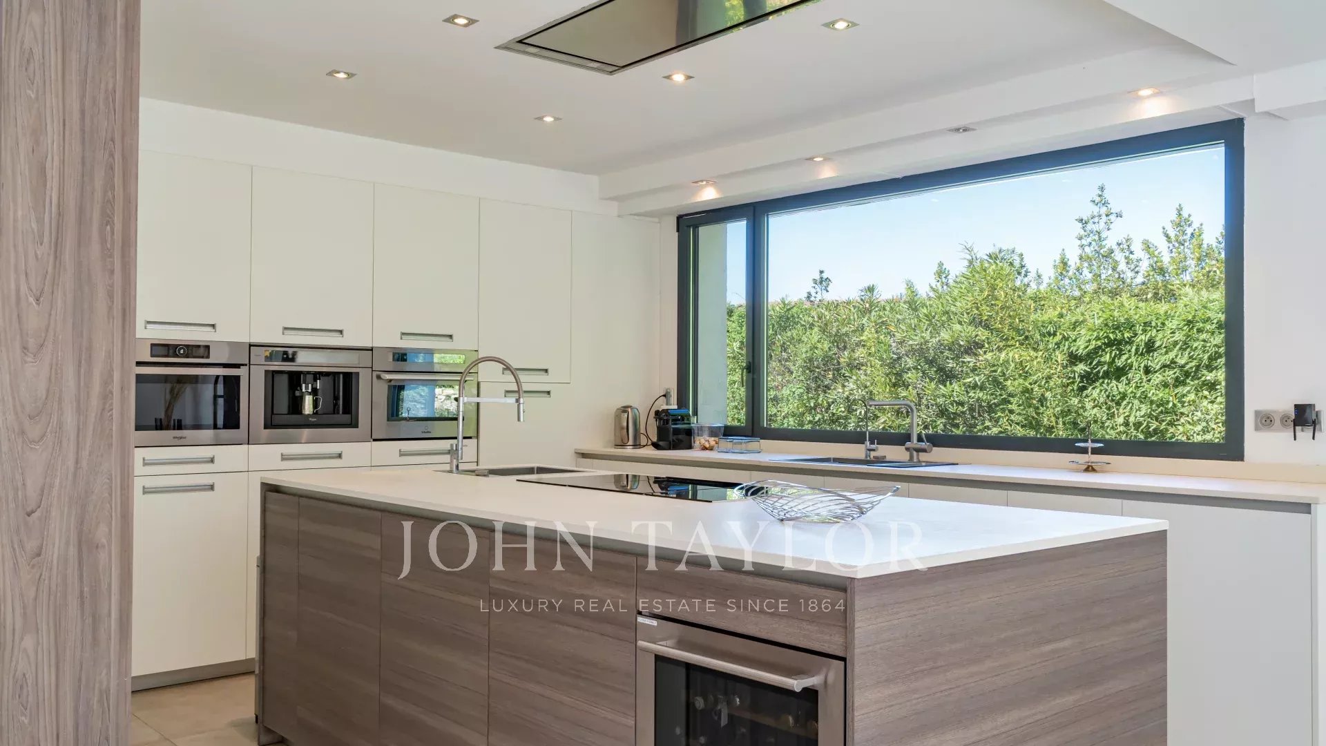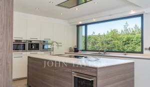 Profitez d’un vaste salon avec une cheminée baigné de lumière, s’ouvrant sur le jardin, ainsi qu’une cuisine moderne entièrement équipée, ouverte sur une élégante salle à manger.