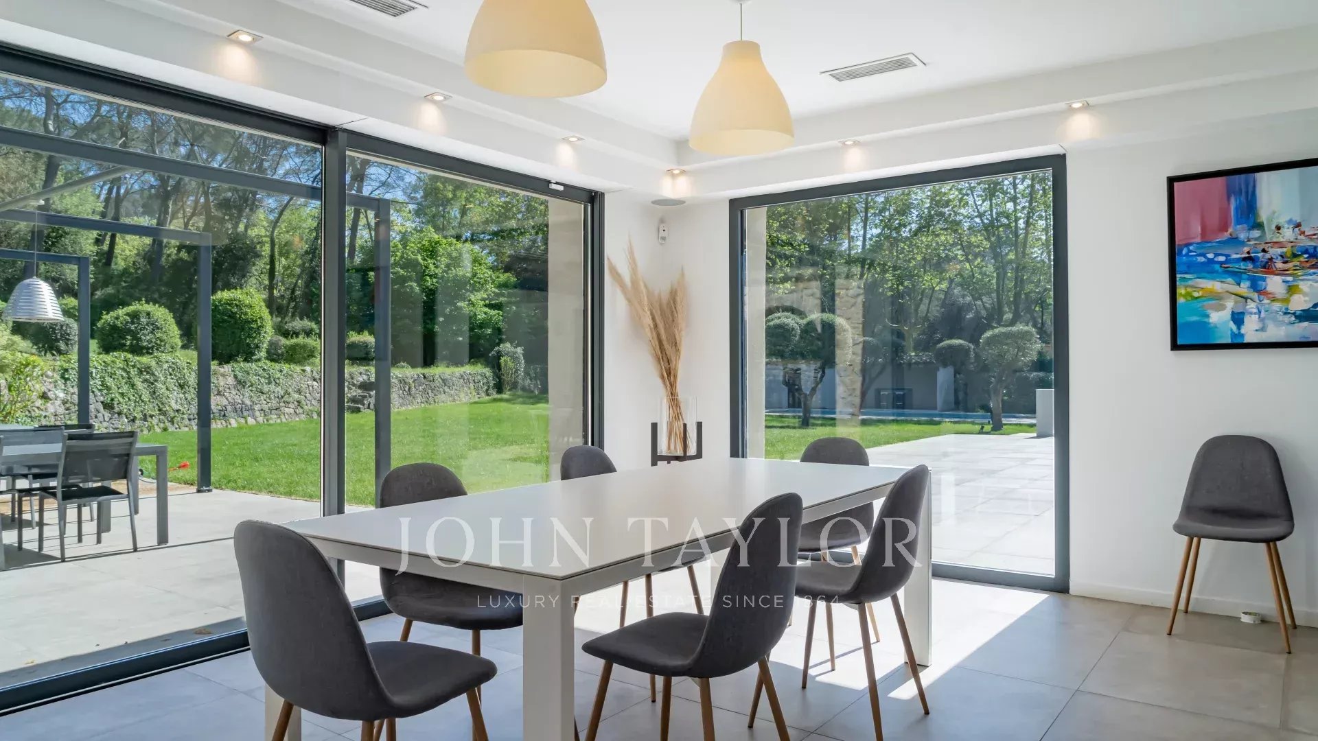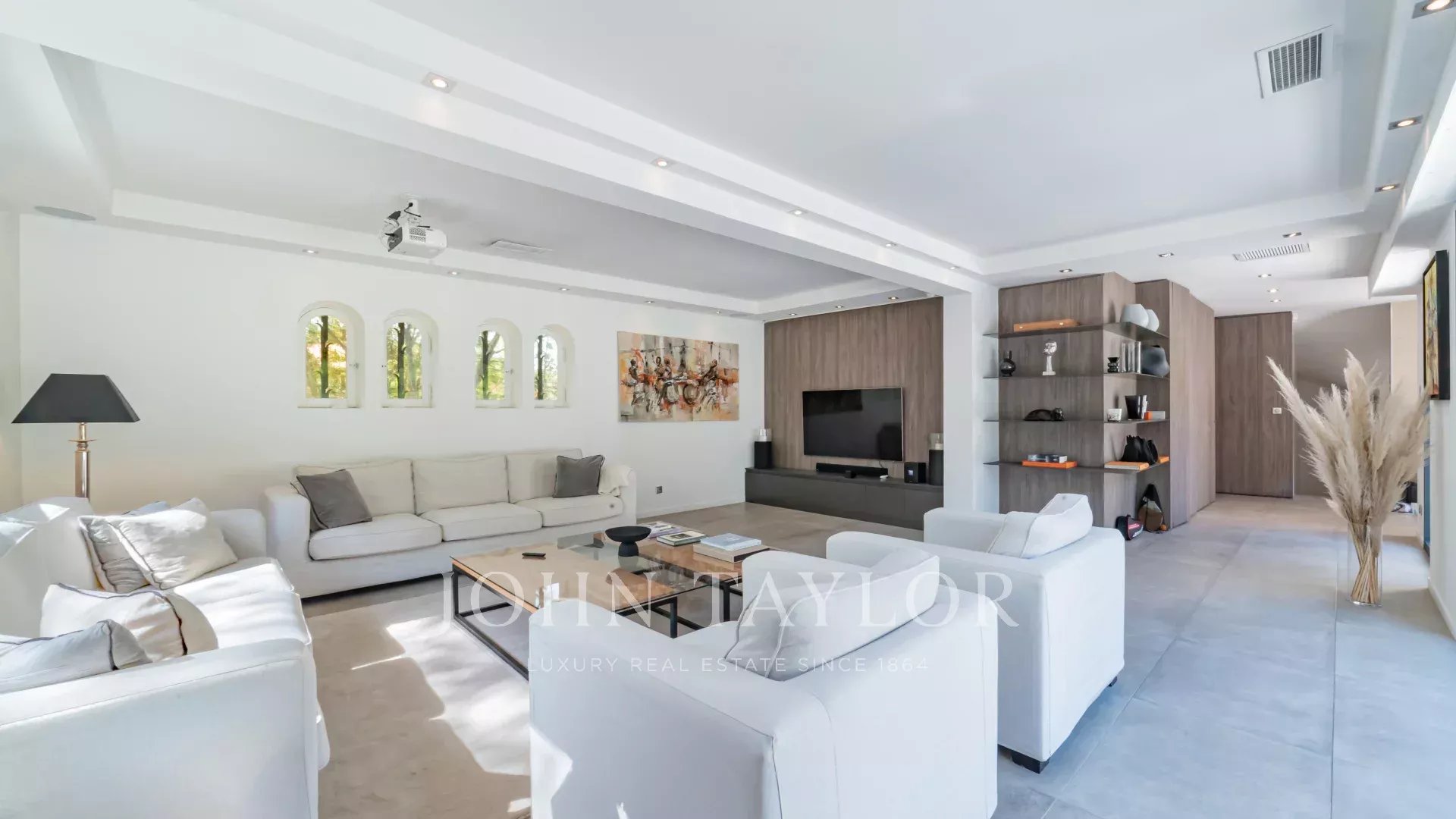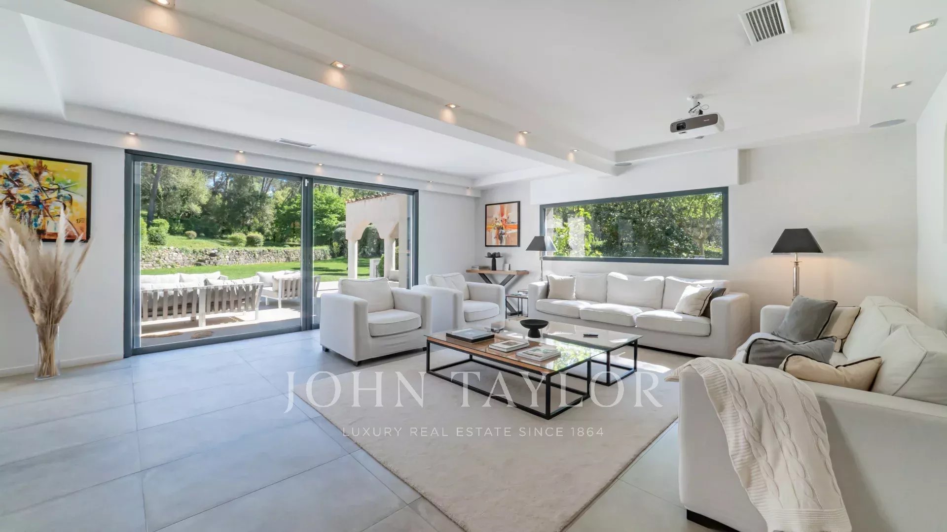 Située dans un quartier paisible et résidentiel de Mougins, à proximité immédiate du golf, cette superbe villa de style hacienda vous séduira par son intérieur contemporain et ses prestations haut de gamme.