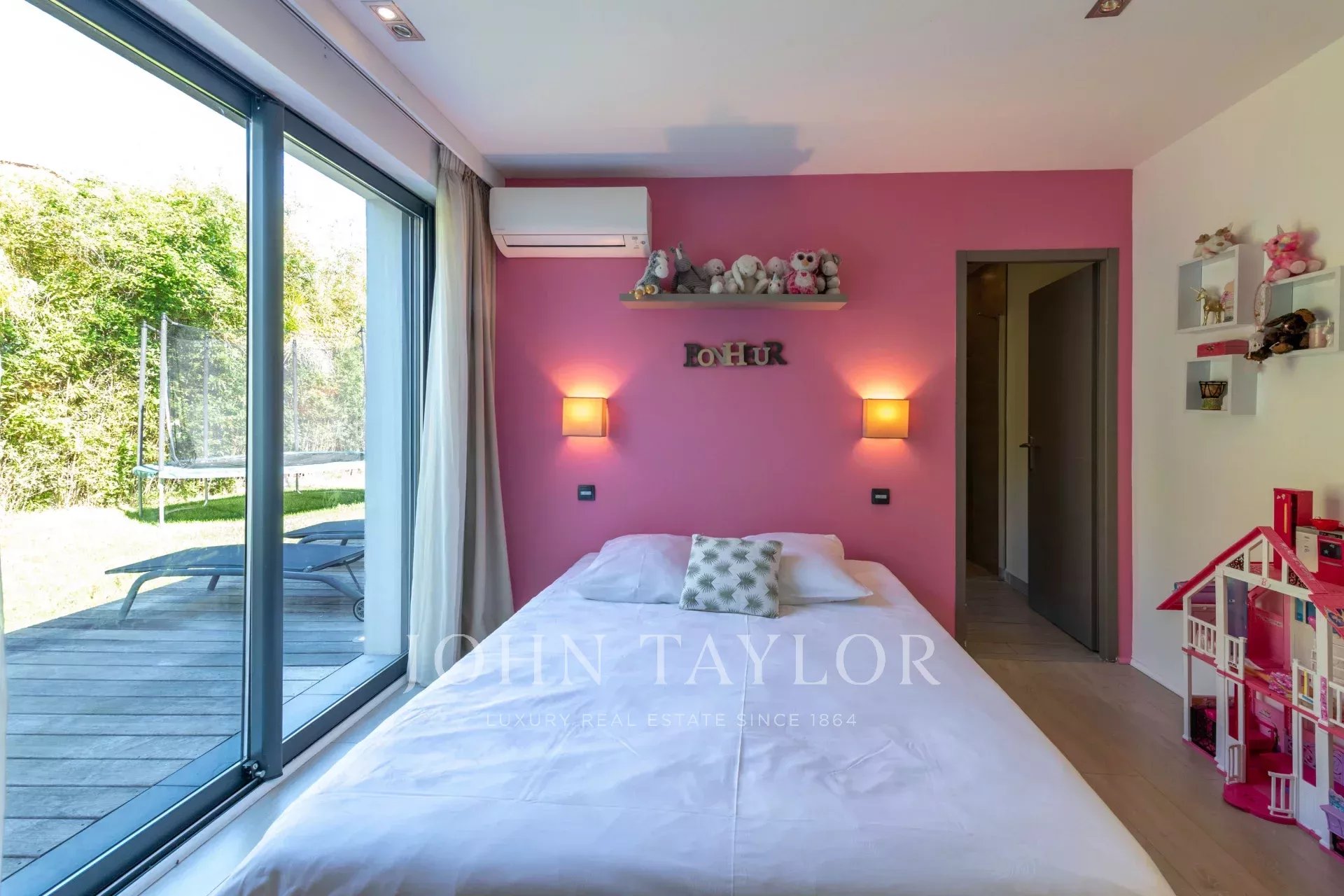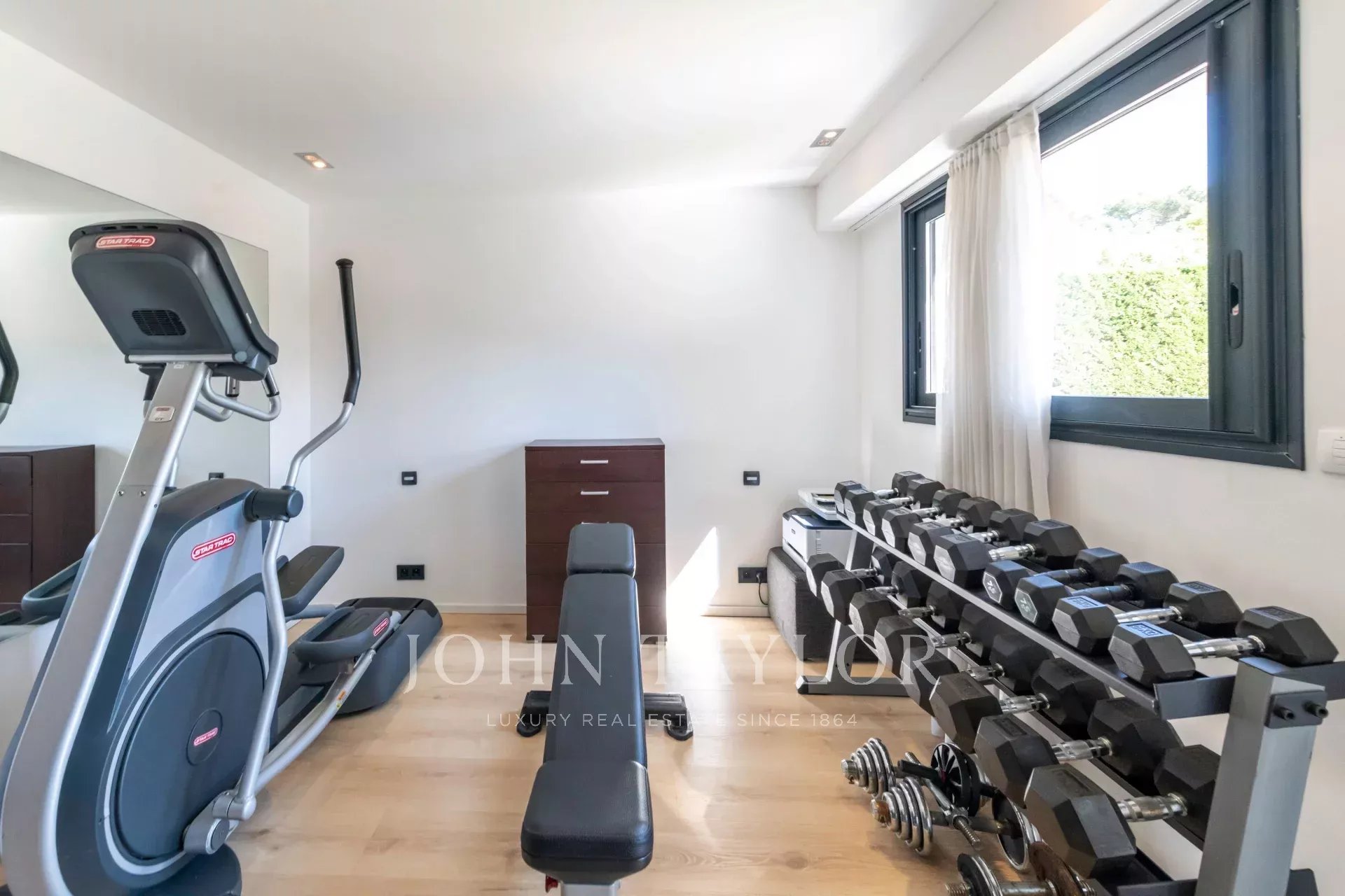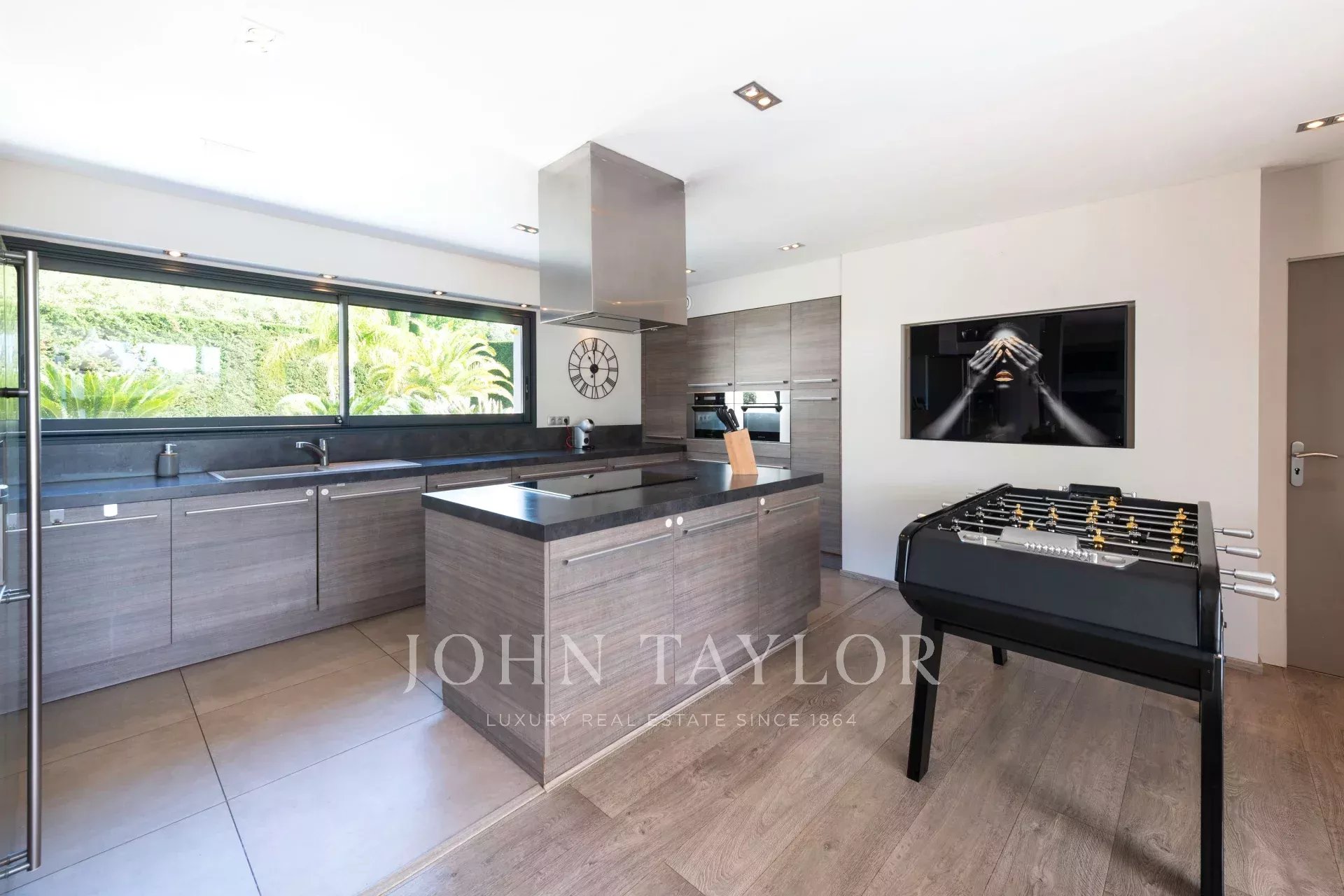 Climatisation dans toute la villa, domotique KNX (gestion de l'éclairage, des volets, etc. via iPad), système sonore Sonos, internet par fibre, alarme et vidéosurveillance pour un confort et une sécurité modernes.