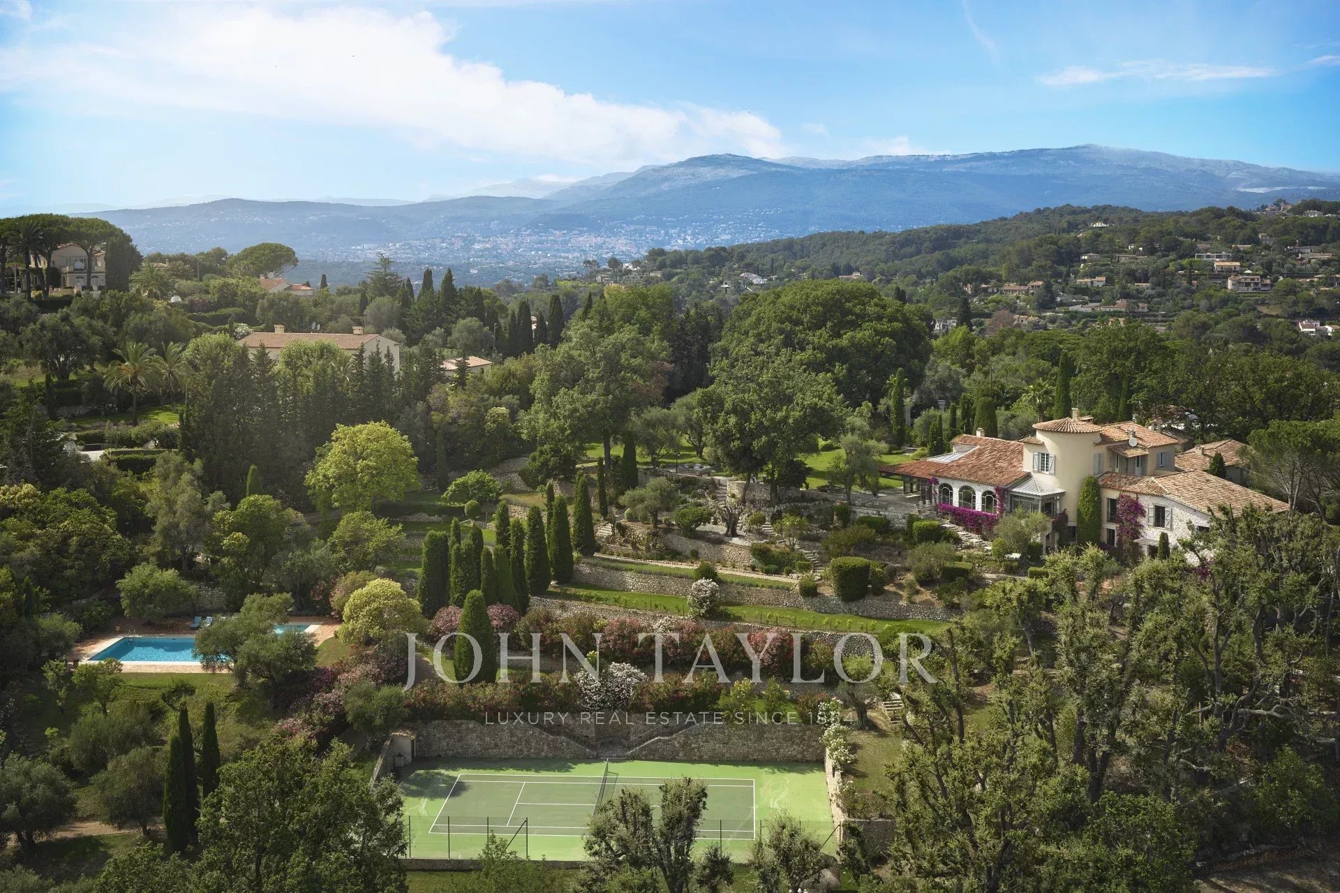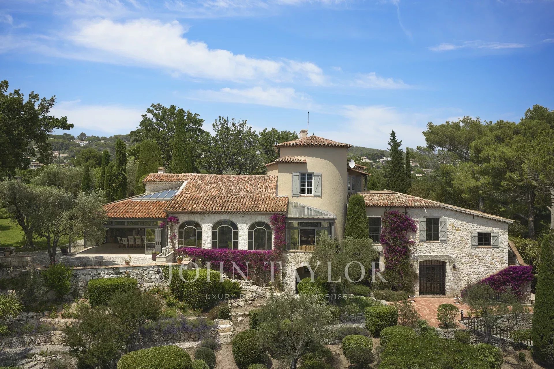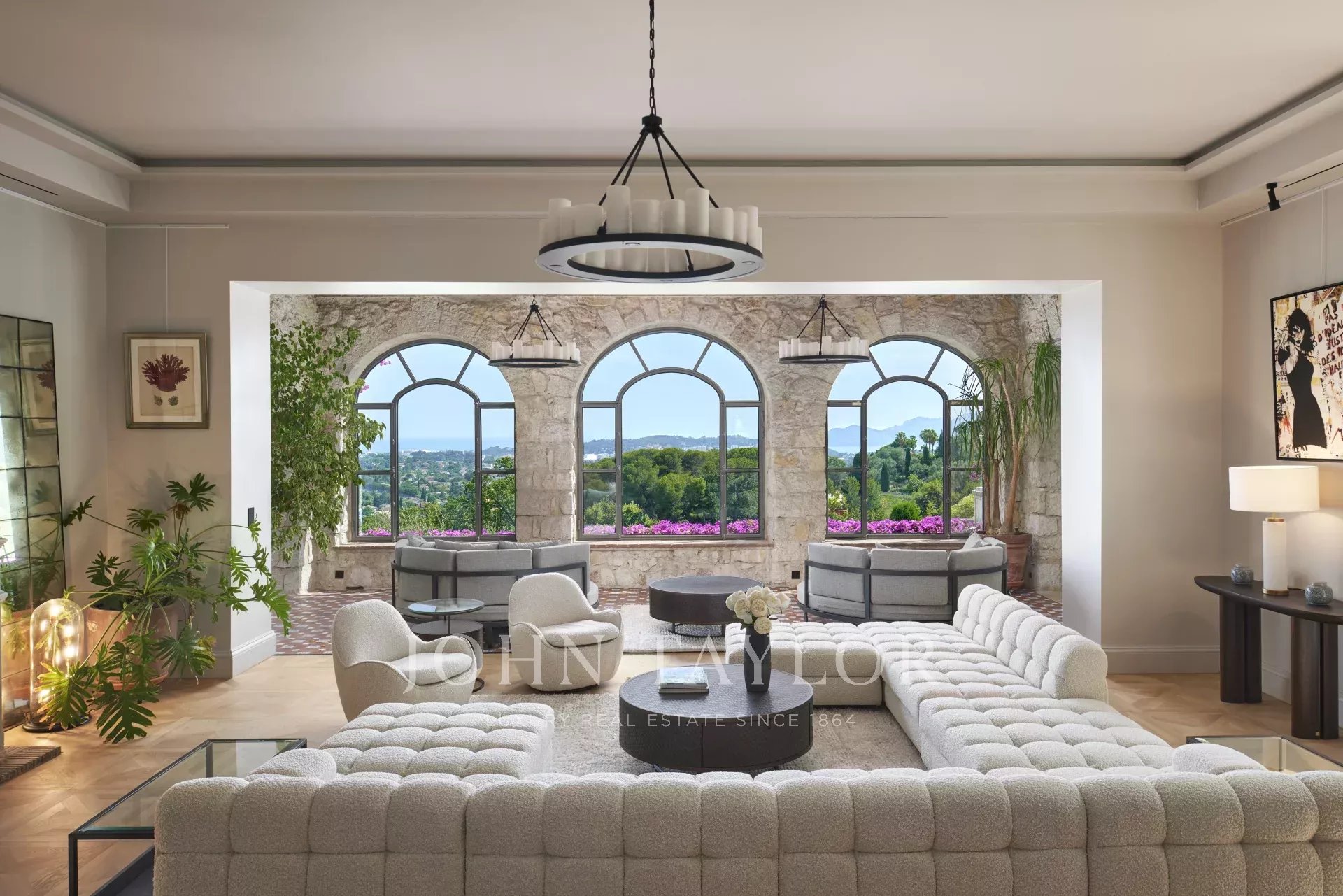 Nichée sur les hauteurs prisées de Mougins, au cœur d’un parc paysager de 26 000 m², cette propriété unique offre un cadre de vie rare et raffiné, avec une vue imprenable sur la Méditerranée. À quelques pas seulement du village historique de Mougins, elle incarne l’alliance parfaite entre luxe, sérénité et art de vivre.