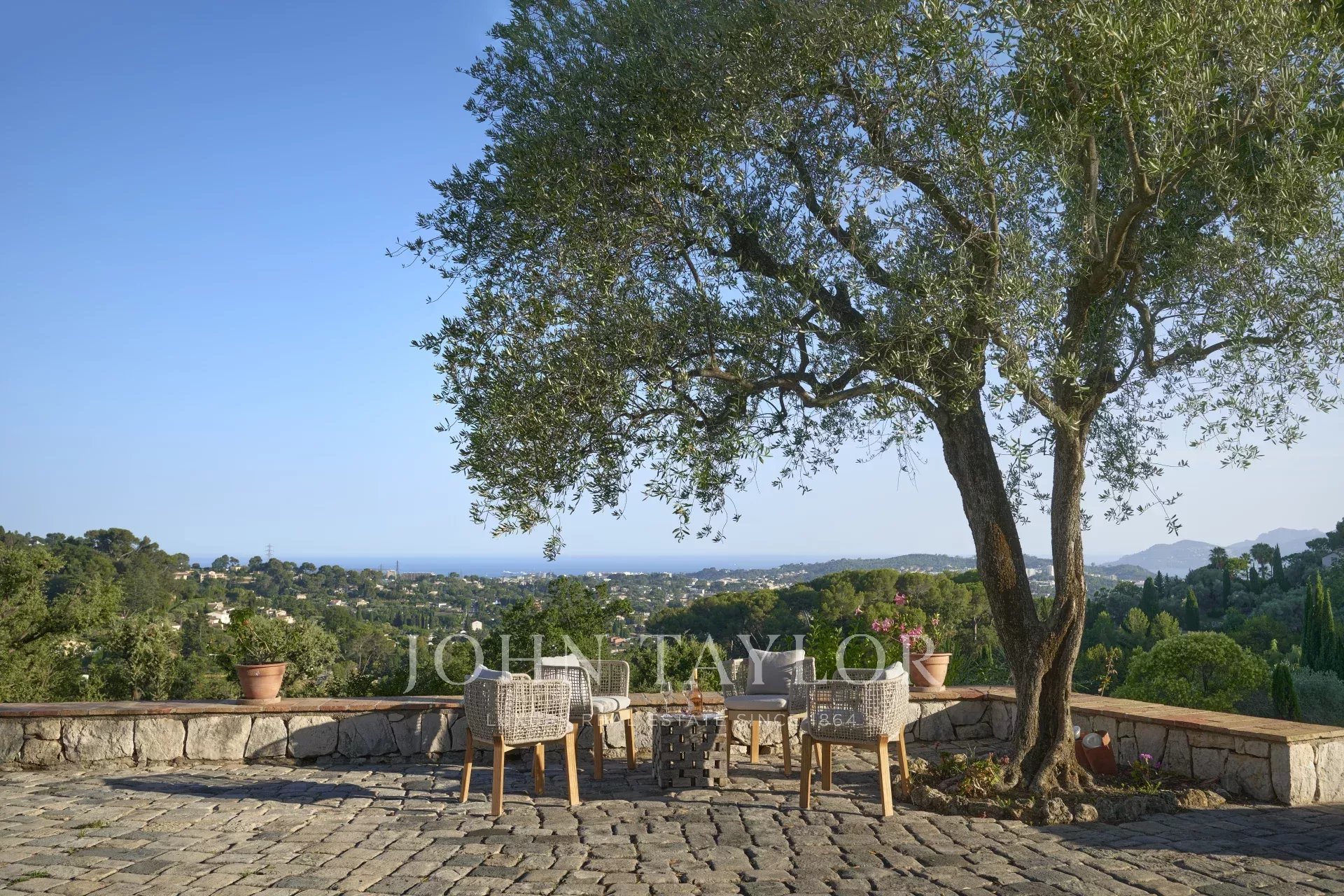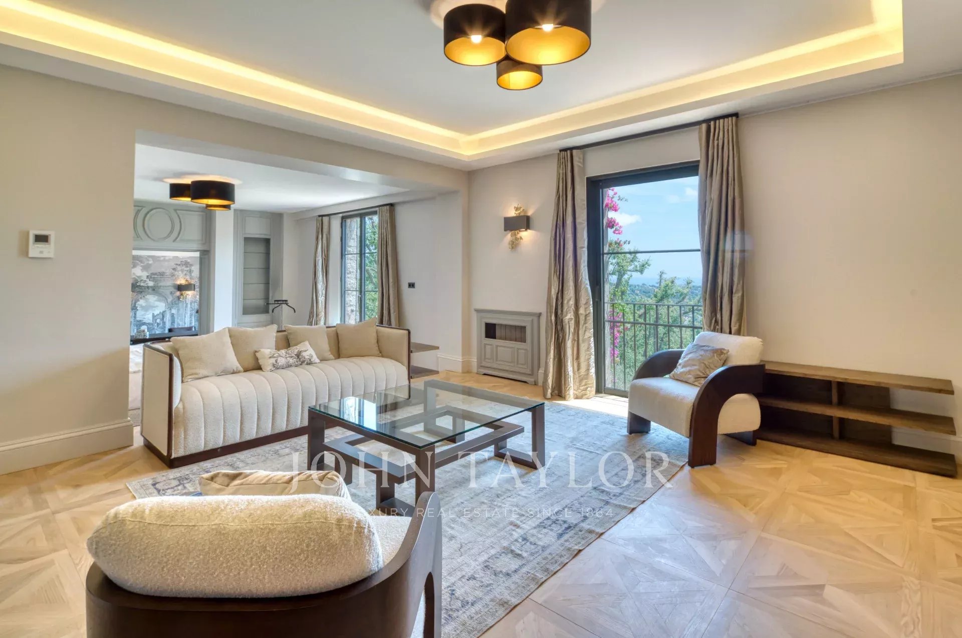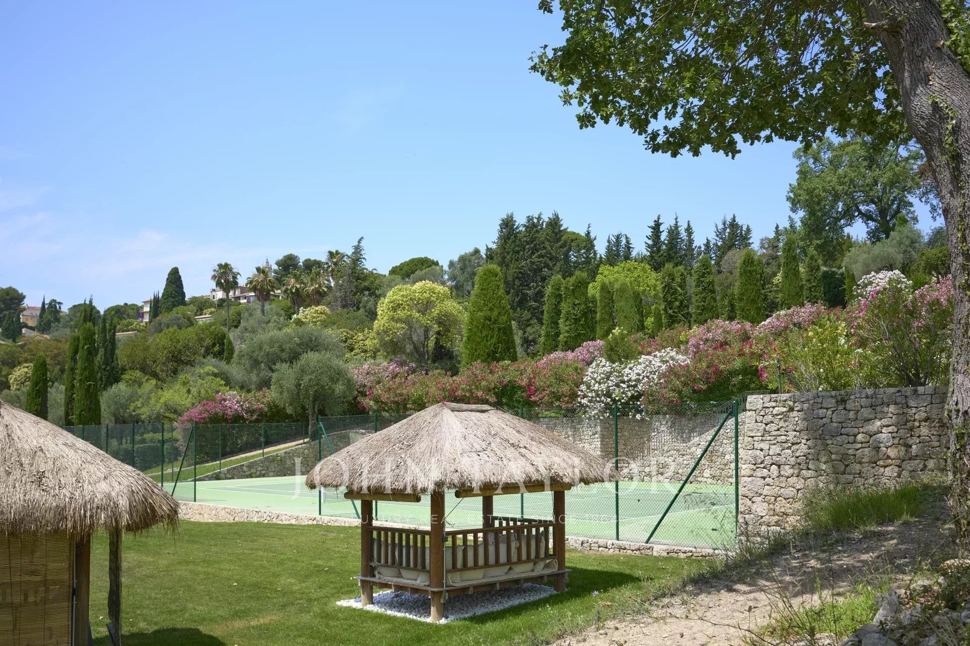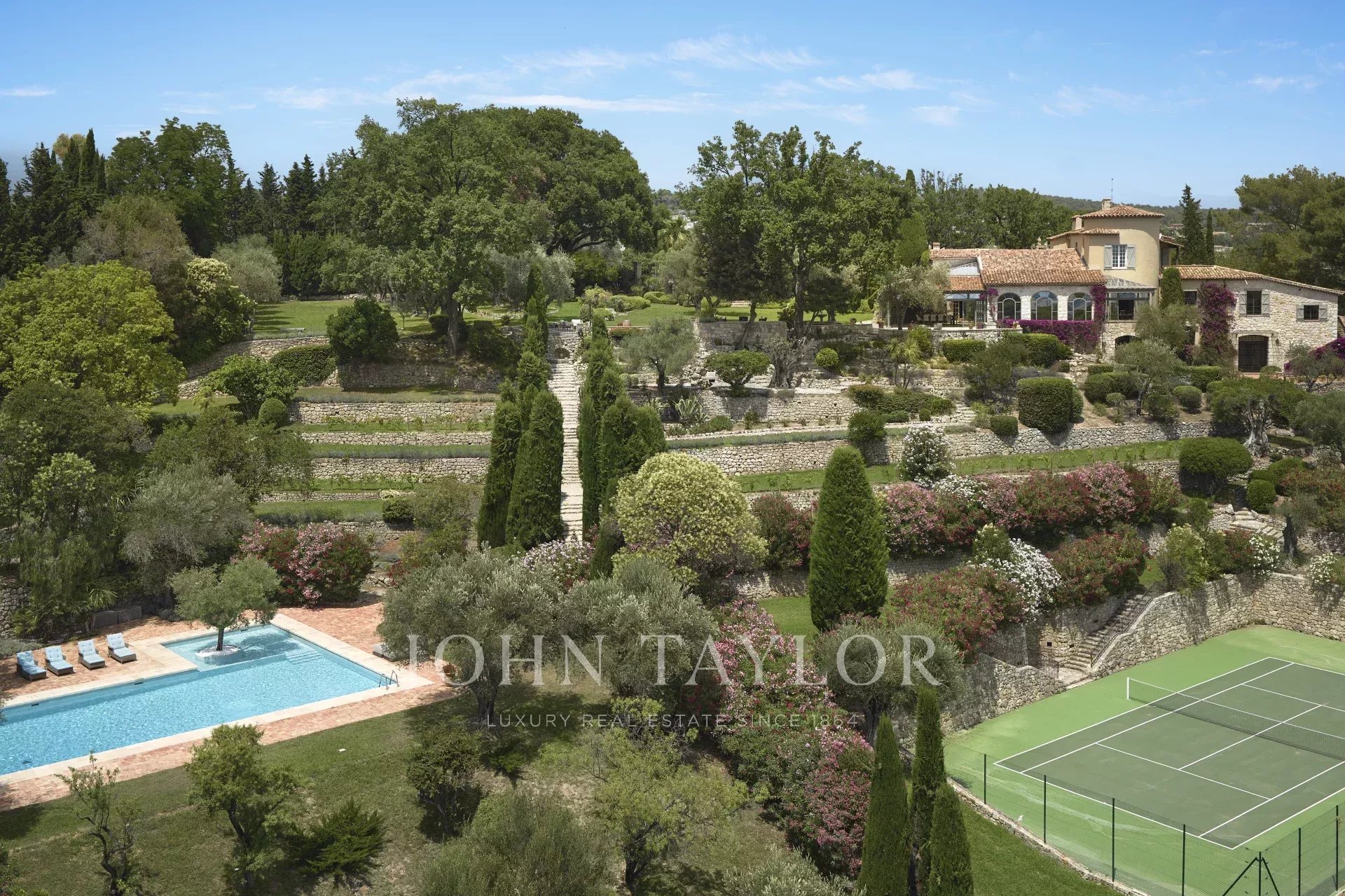 Nichée sur les hauteurs prisées de Mougins, au cœur d’un parc paysager de 26 000 m², cette propriété unique offre un cadre de vie rare et raffiné, avec une vue imprenable sur la Méditerranée. À quelques pas seulement du village historique de Mougins, elle incarne l’alliance parfaite entre luxe, sérénité et art de vivre.