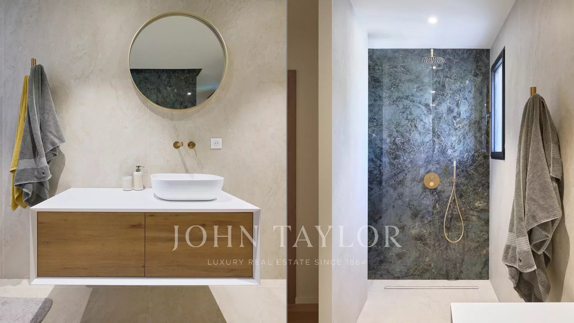 - Chambre de maître : lit double, salle de bains, dressing, terrasse.