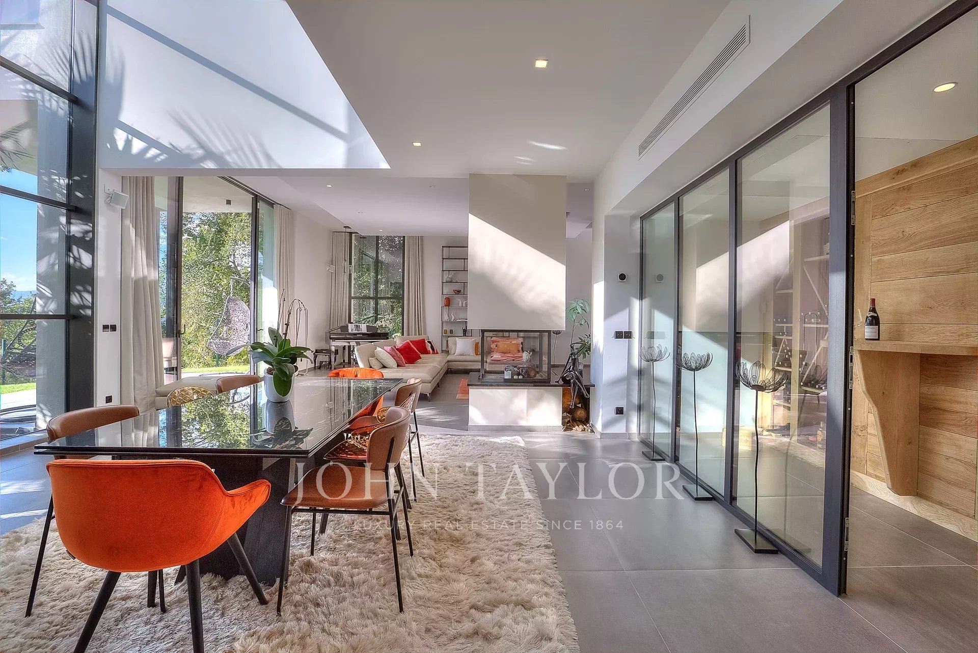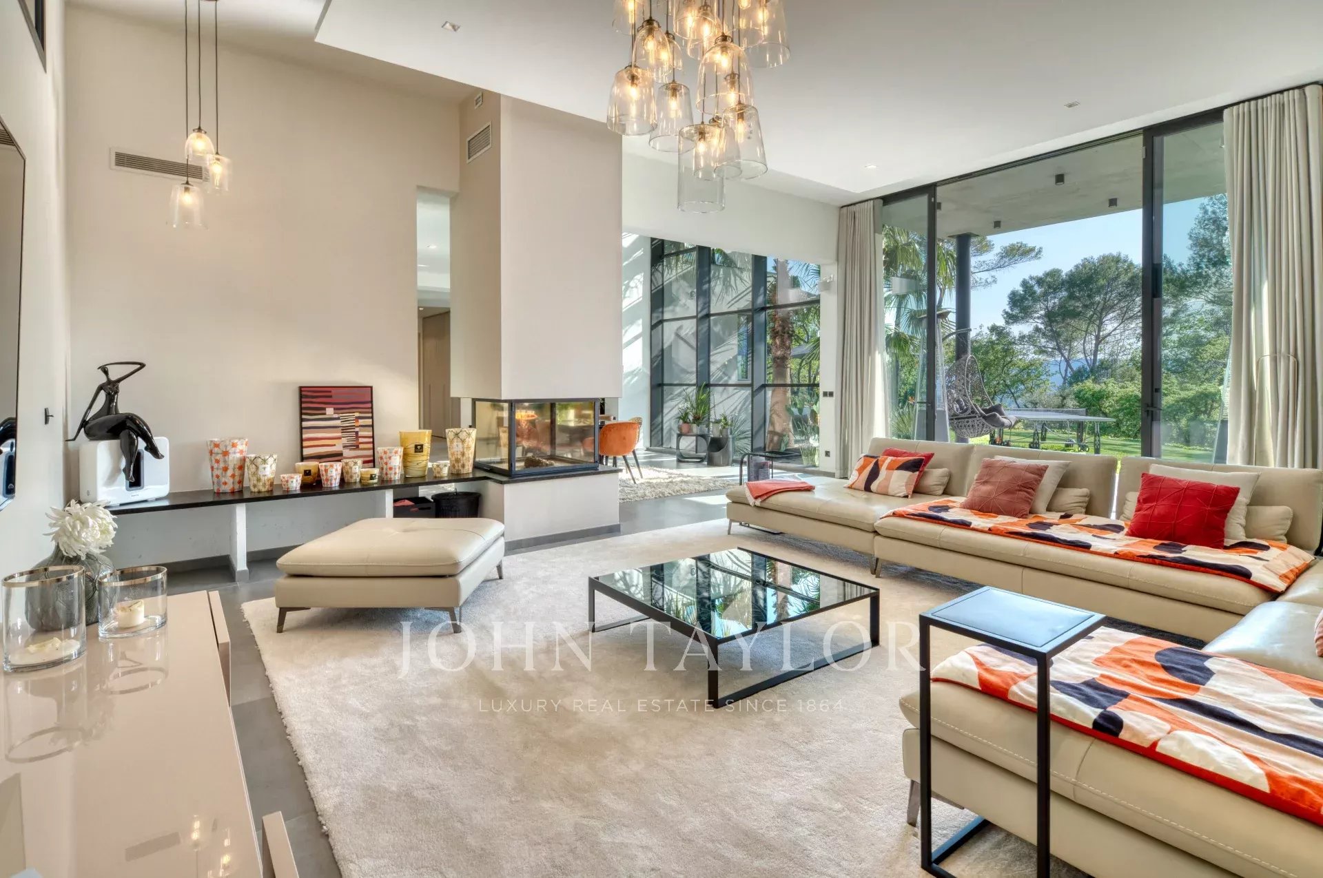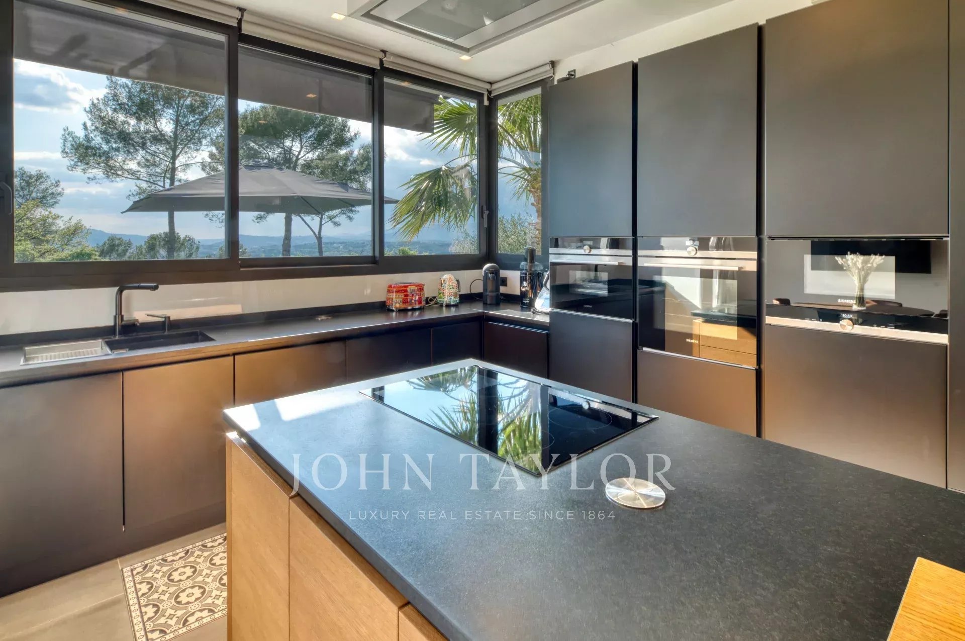 Cette très belle villa contemporaine de 430 m² proche Mougins et Valbonne, dispose d'une luminosité exceptionnelle grâce à ses énormes baies vitrées ainsi qu'une vue panoramique à couper le souffle.