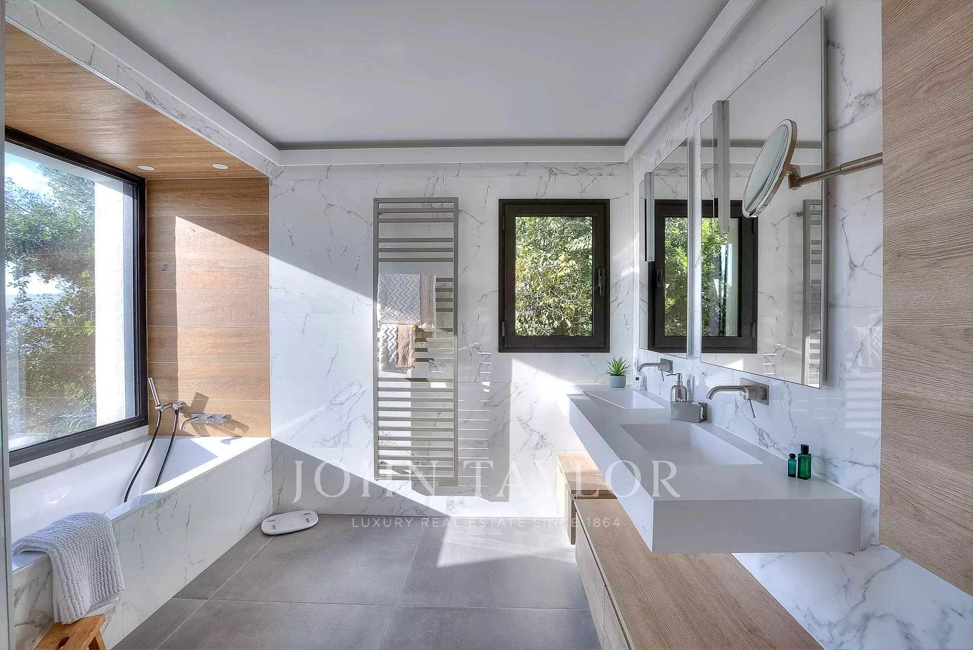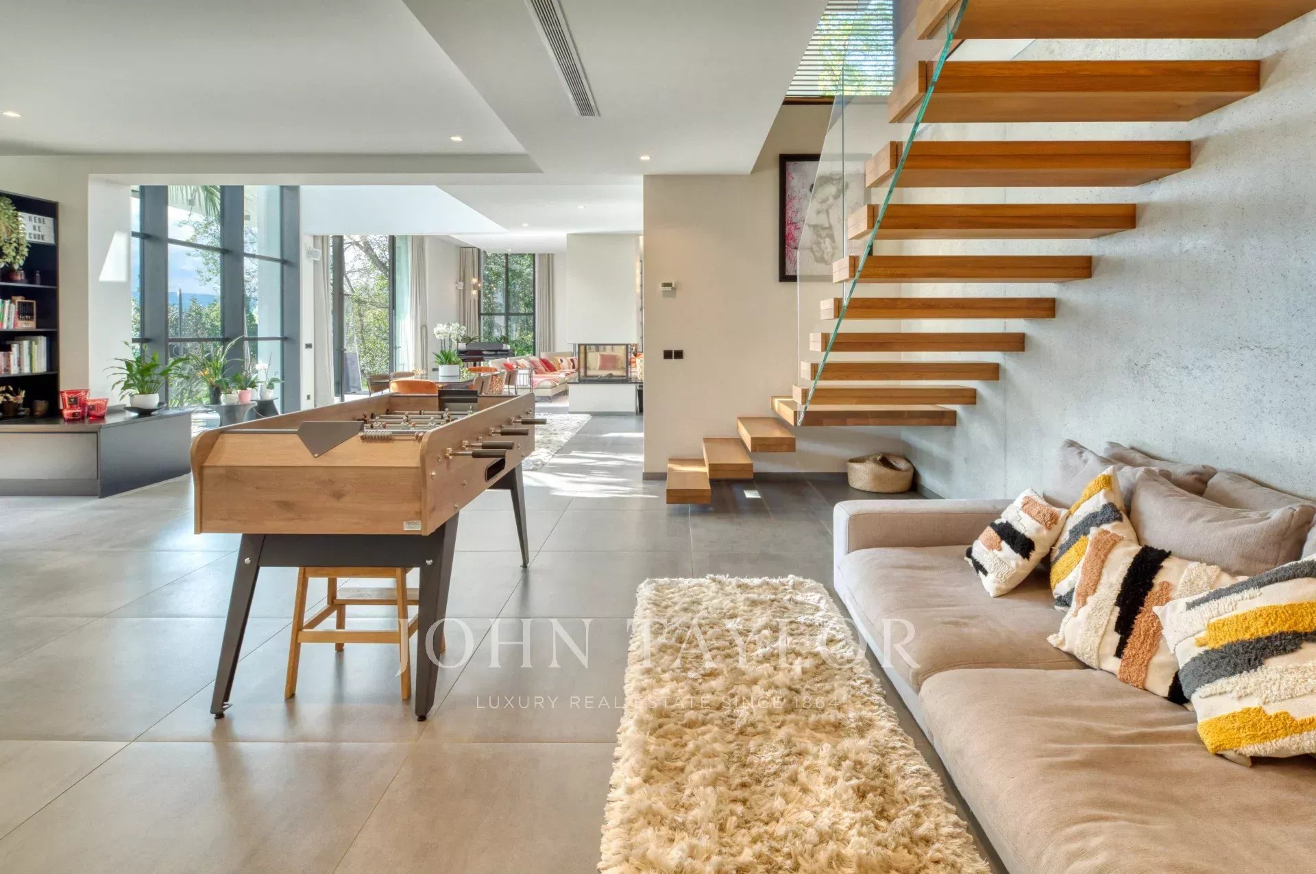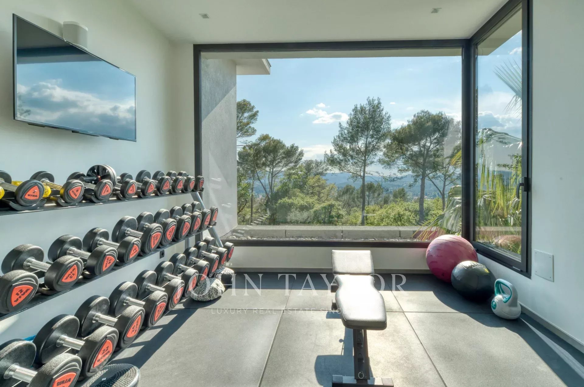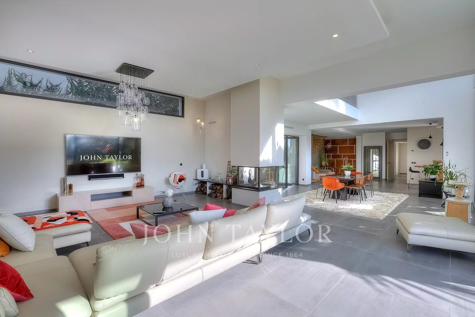 Cette très belle villa contemporaine de 430 m² proche Mougins et Valbonne, dispose d'une luminosité exceptionnelle grâce à ses énormes baies vitrées ainsi qu'une vue panoramique à couper le souffle.