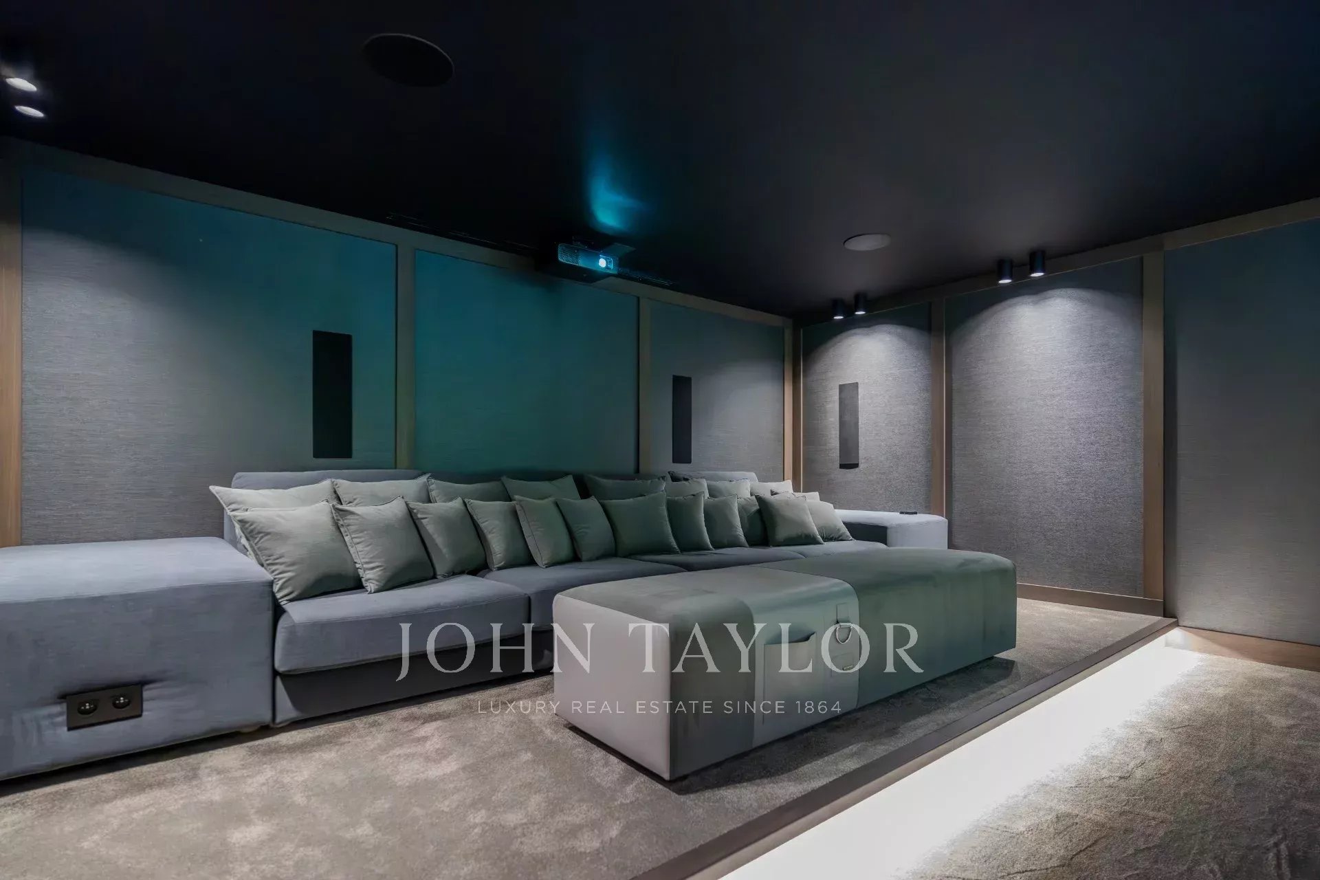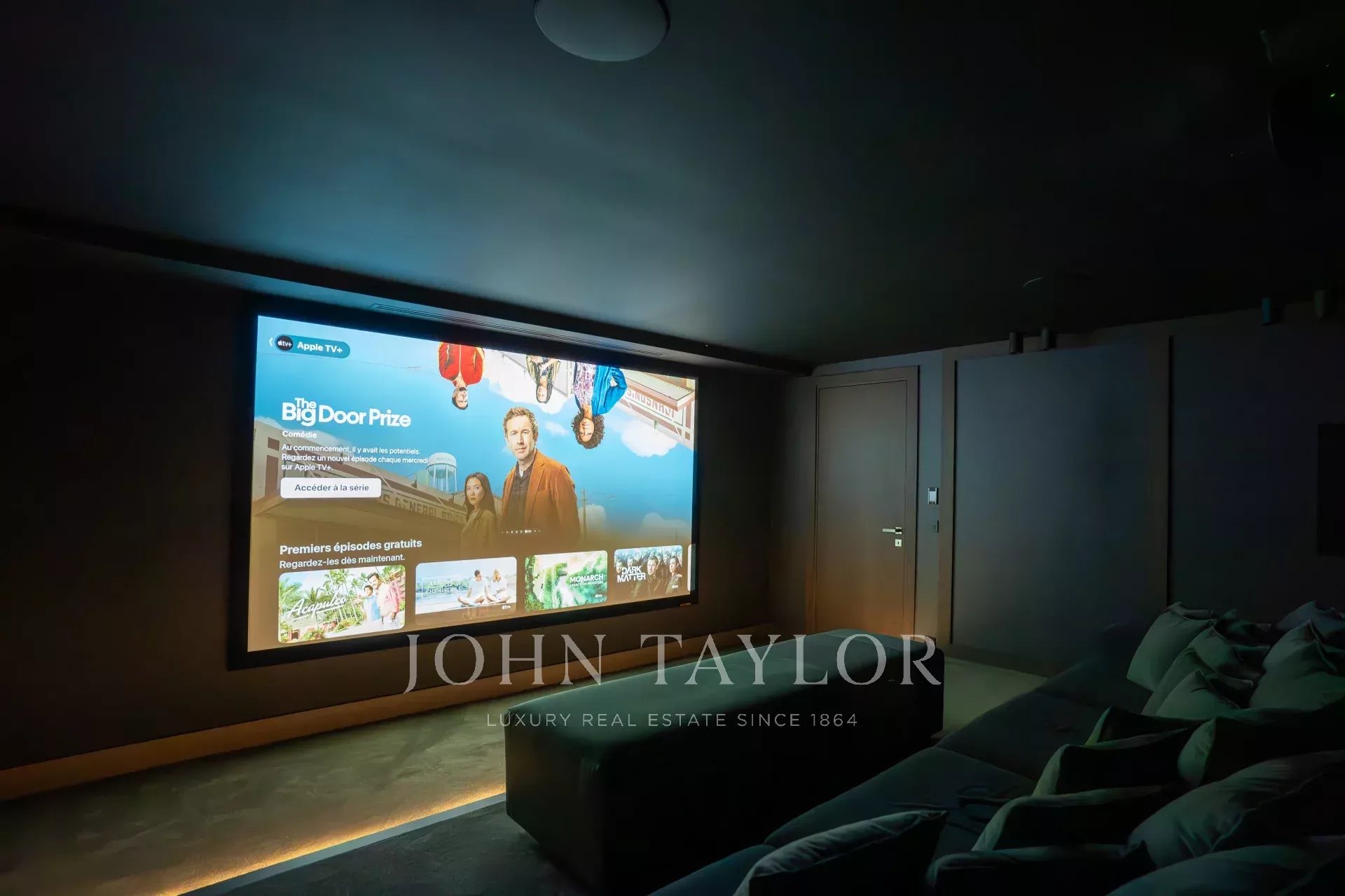Salle de cinéma avec sièges ultra confortables et équipements audiovisuels de pointe pour une expérience cinématographique immersive.