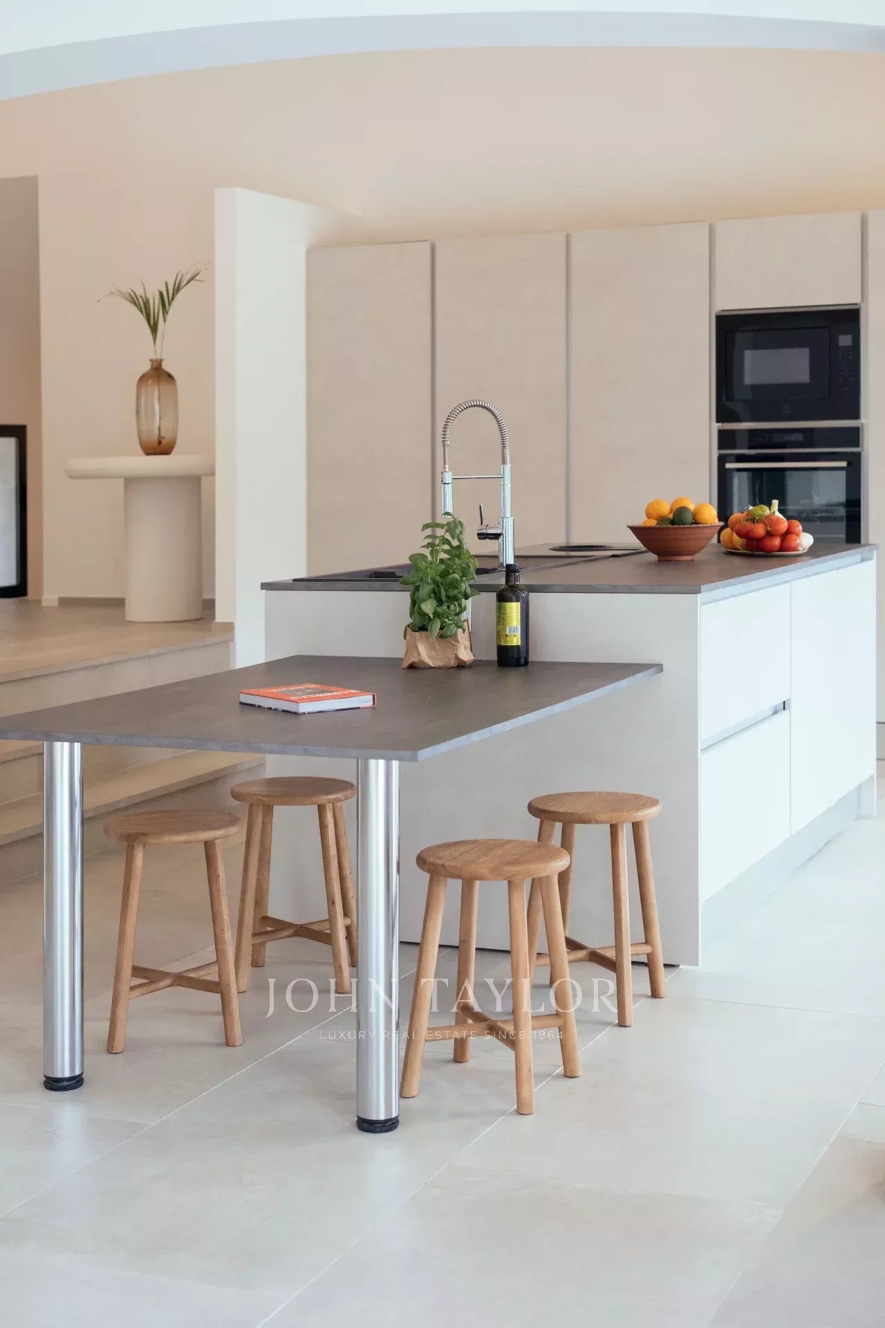Cuisine Américaine équipée donnant sur une grande terrasse couverte