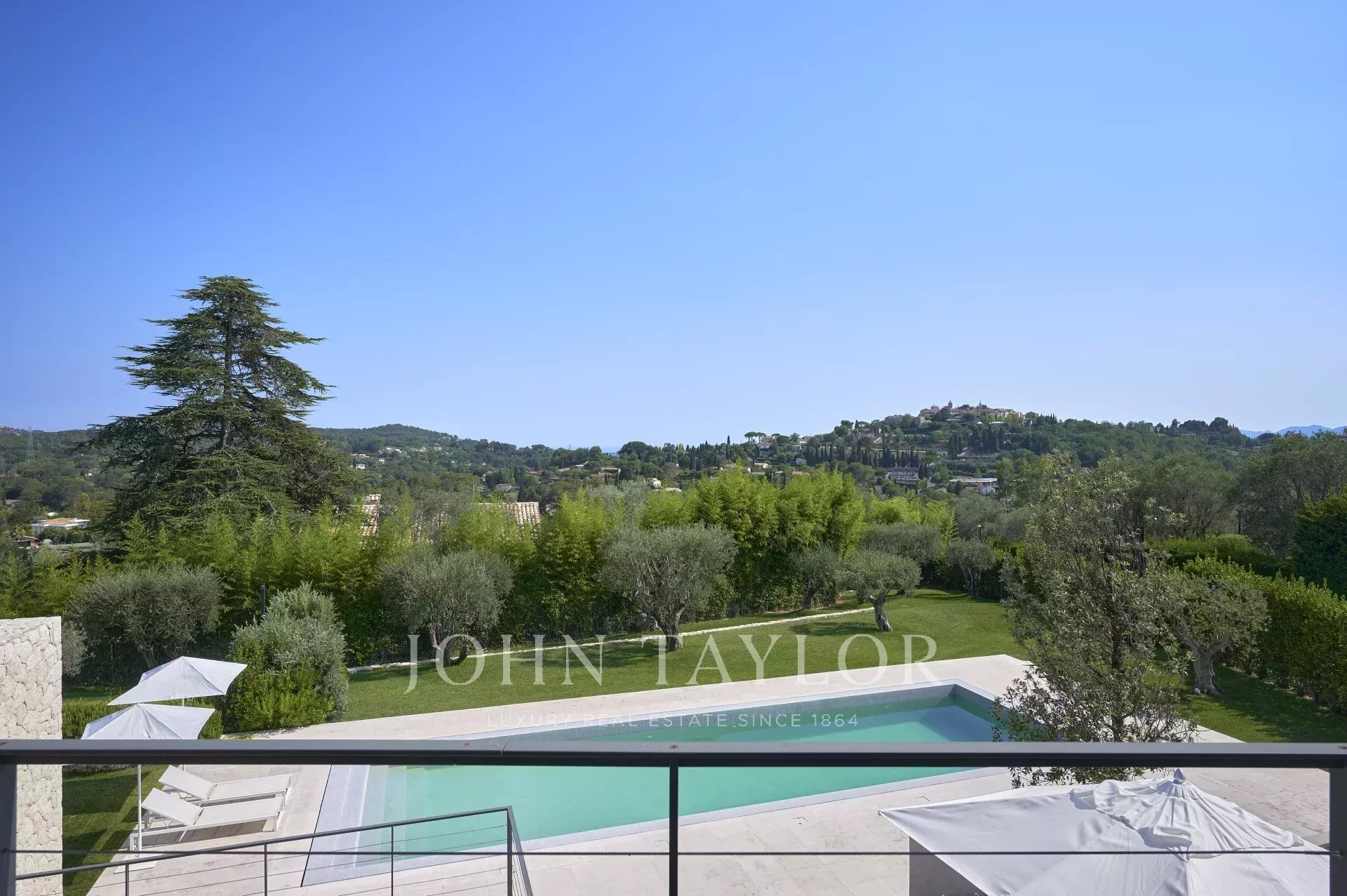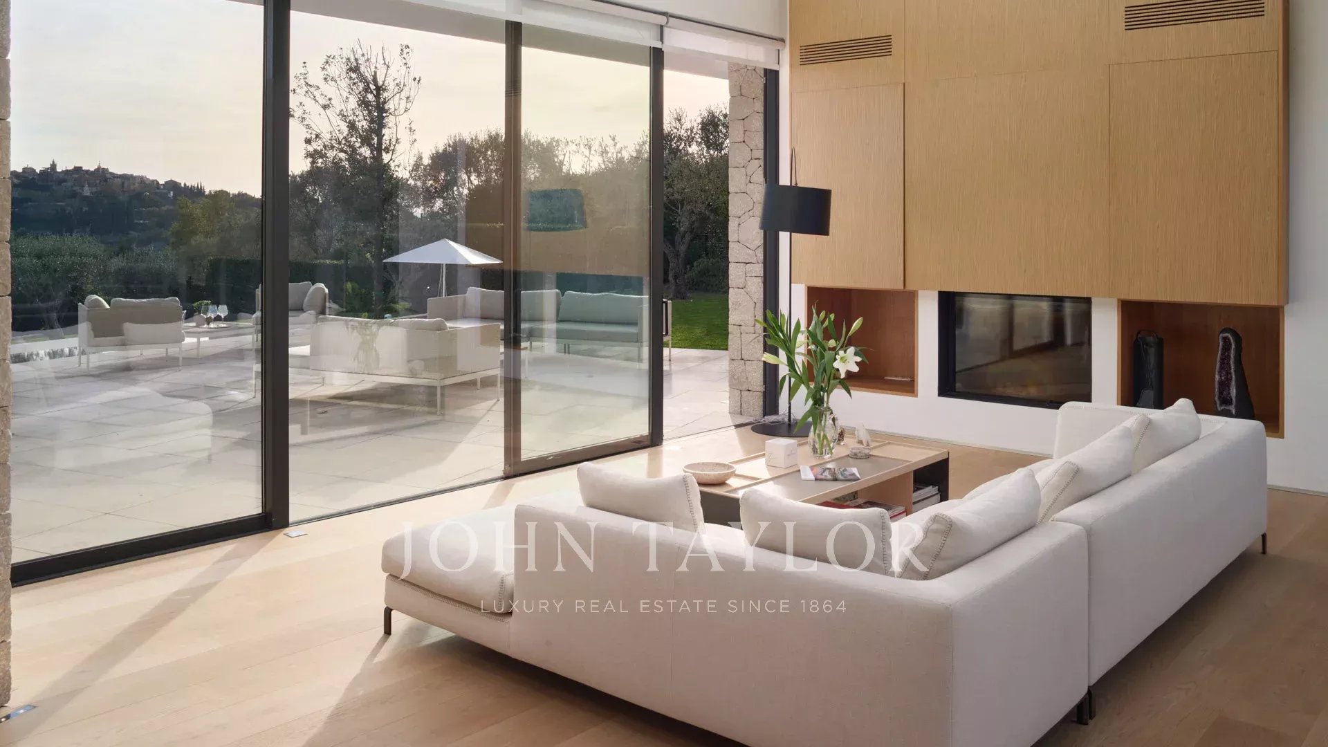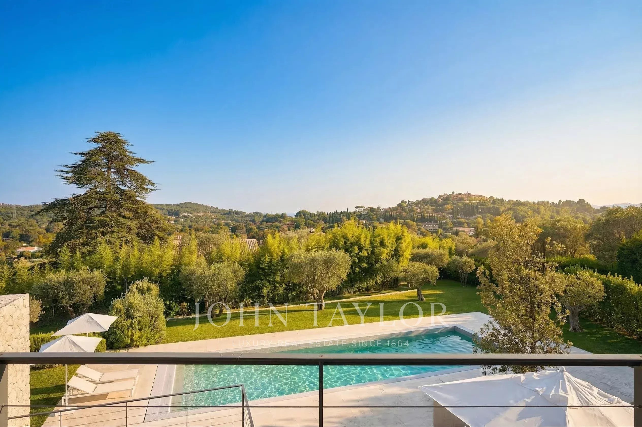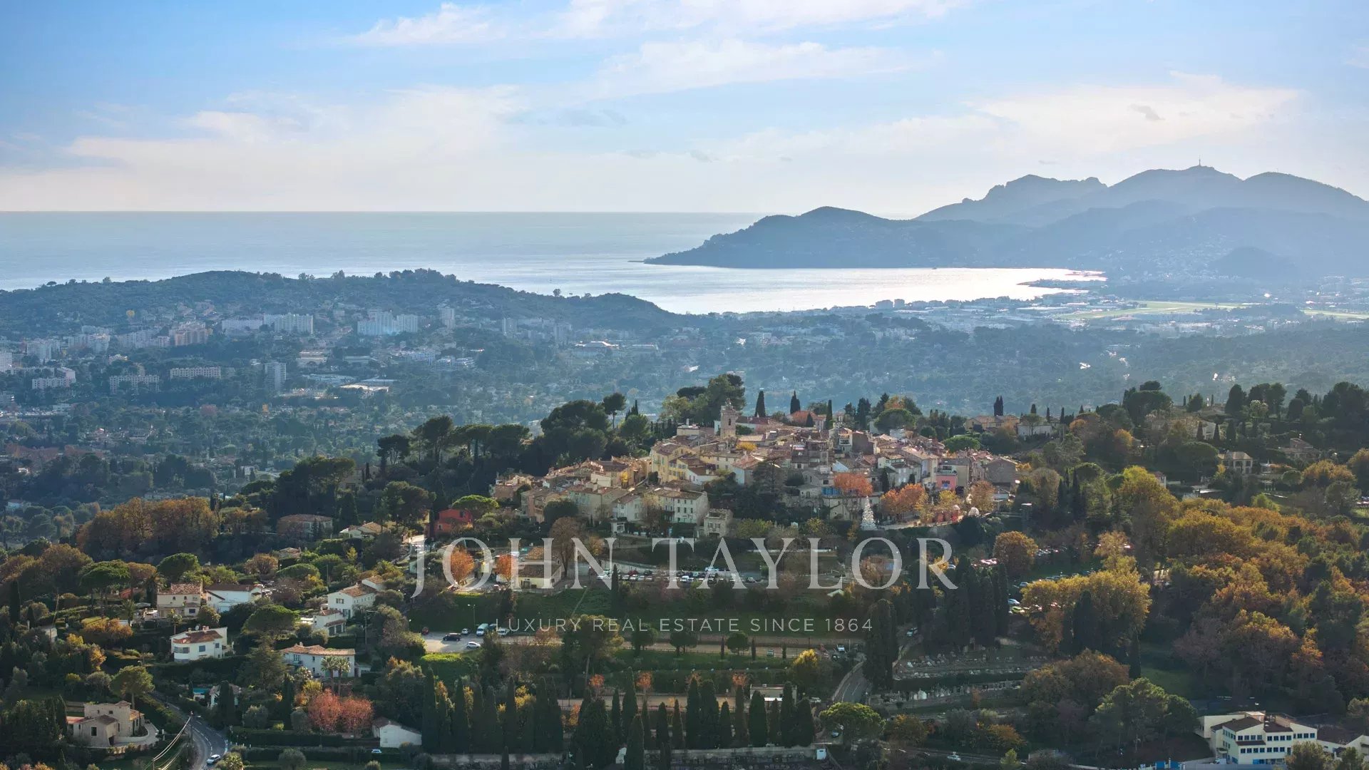 Une maison d'exception offrant une vue époustouflante sur le vieux village de Mougins, les collines environnantes, ainsi qu'un aperçu de la mer.
