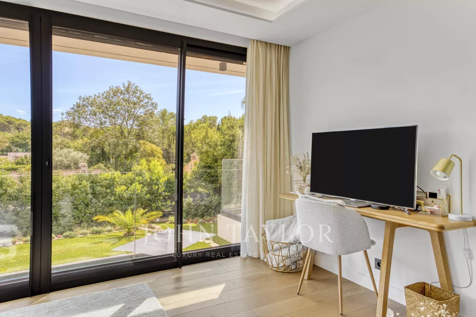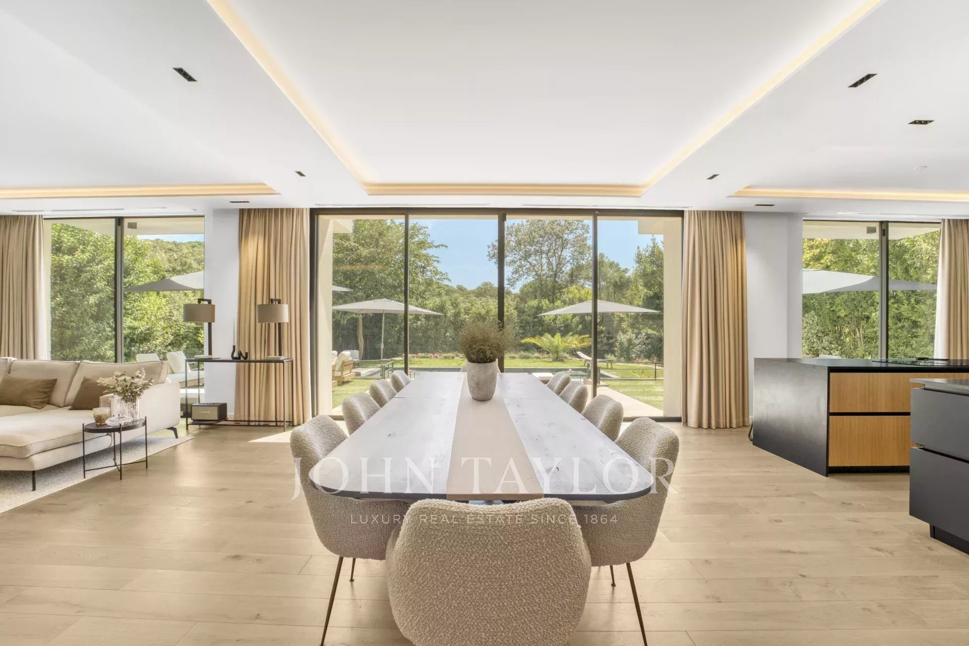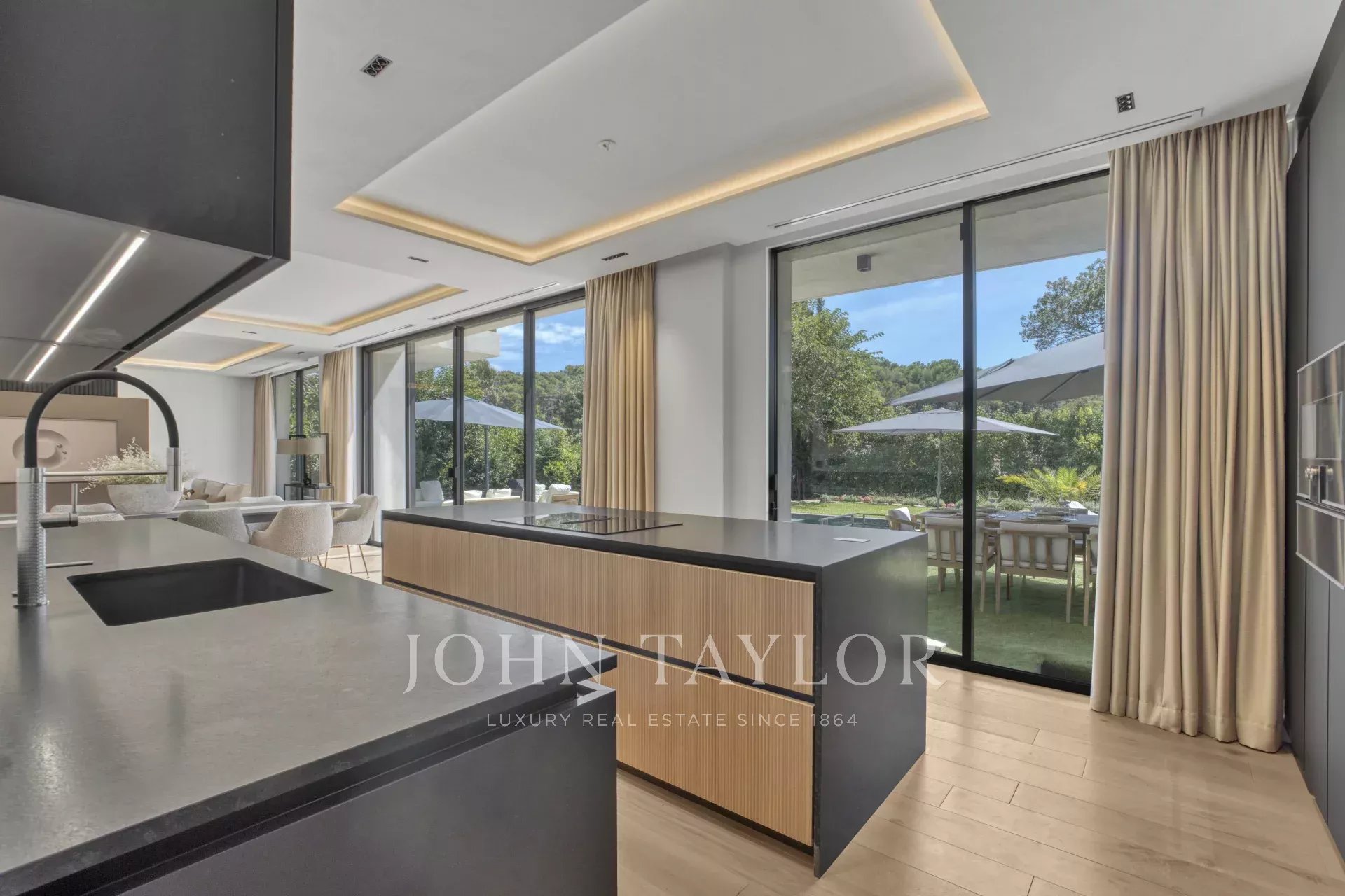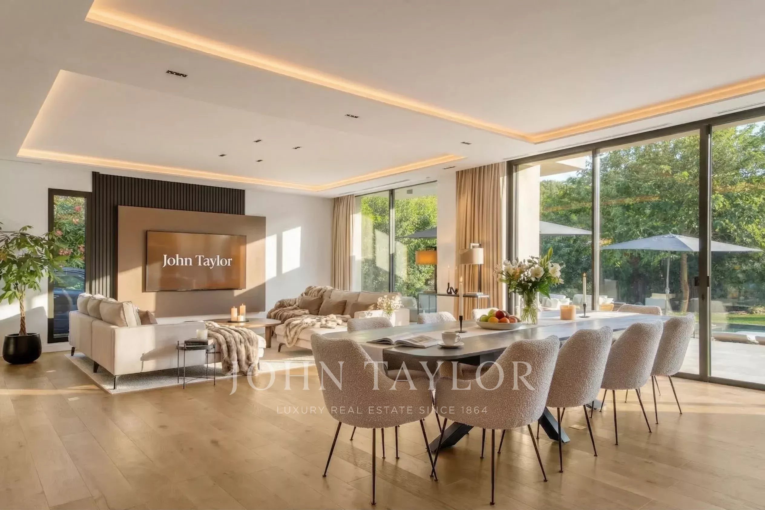 Nichée dans un domaine privé, cette superbe villa contemporaine offre un cadre de vie paisible, sans vis-à-vis et au calme absolu. Son architecture raffinée et ses prestations haut de gamme garantissent un confort optimal.