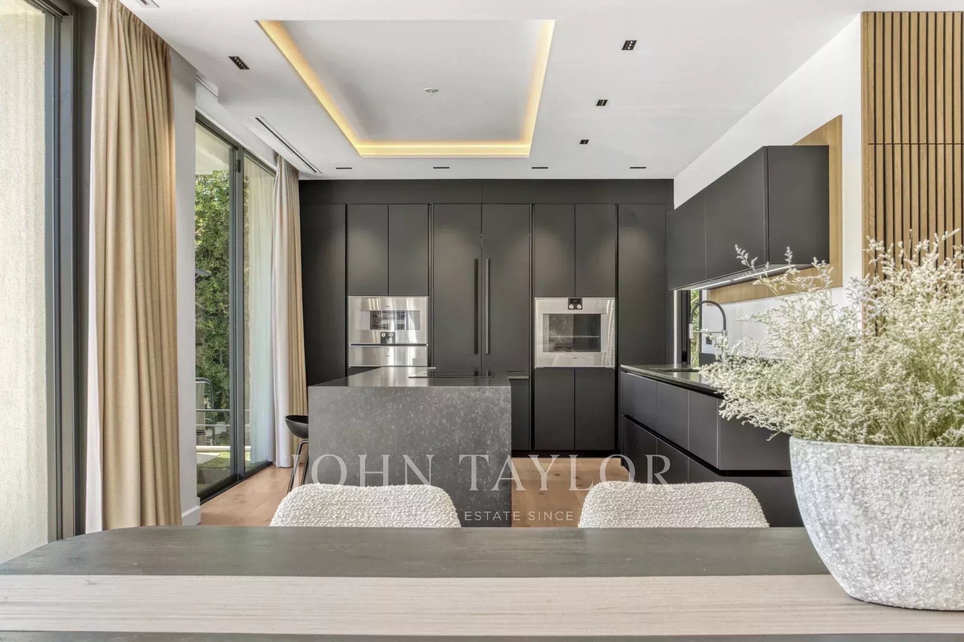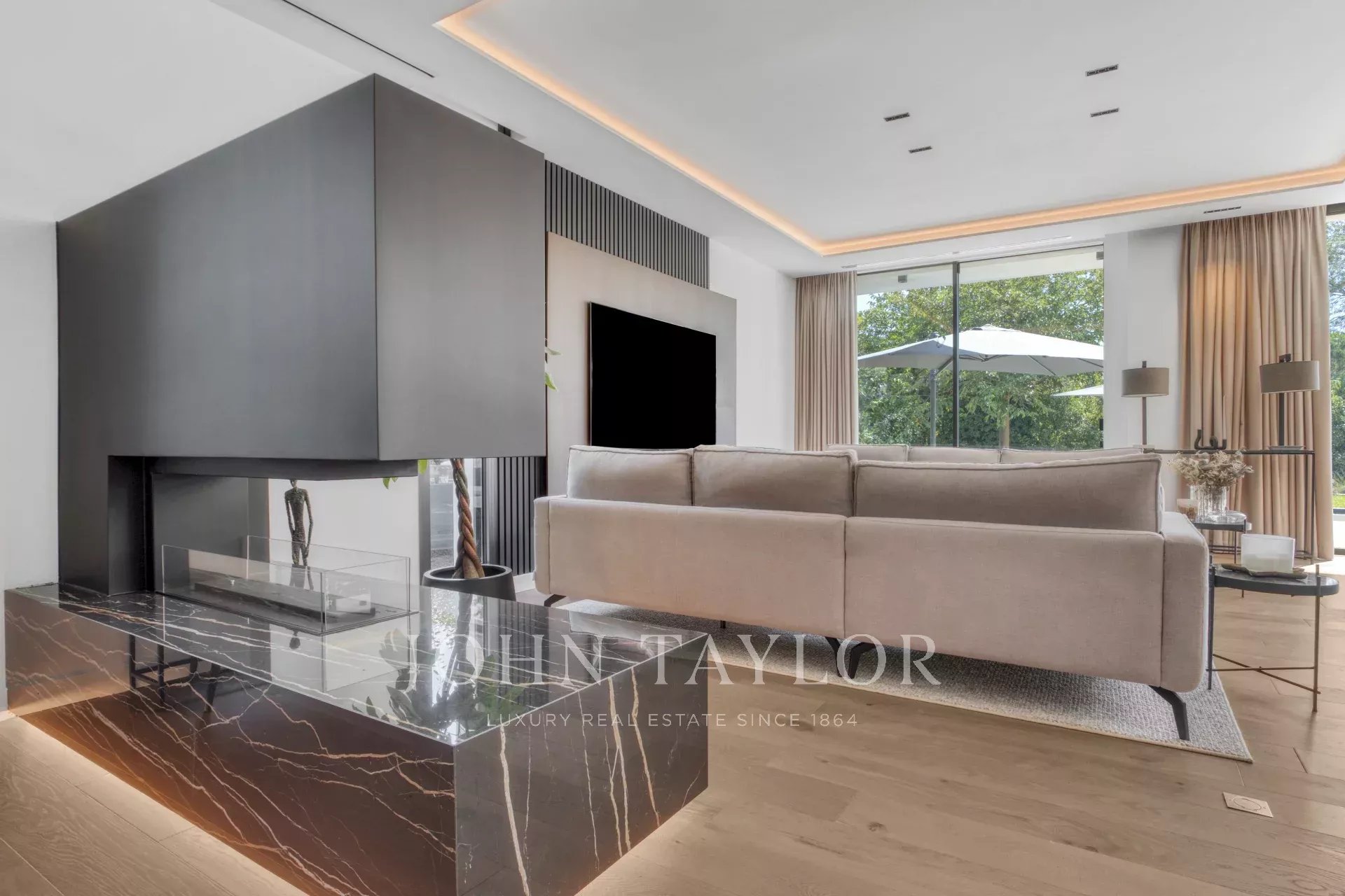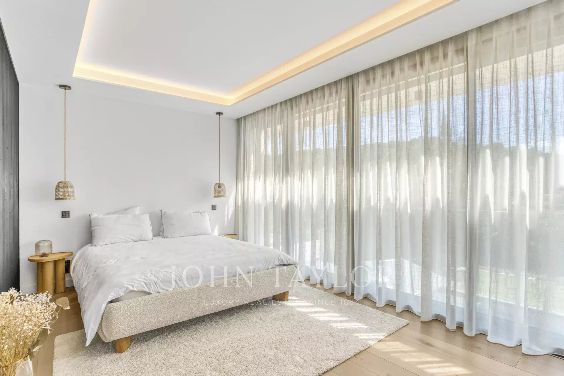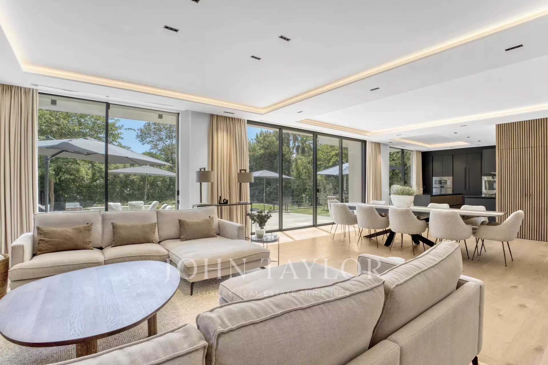 Nichée dans un domaine privé, cette superbe villa contemporaine offre un cadre de vie paisible, sans vis-à-vis et au calme absolu. Son architecture raffinée et ses prestations haut de gamme garantissent un confort optimal.