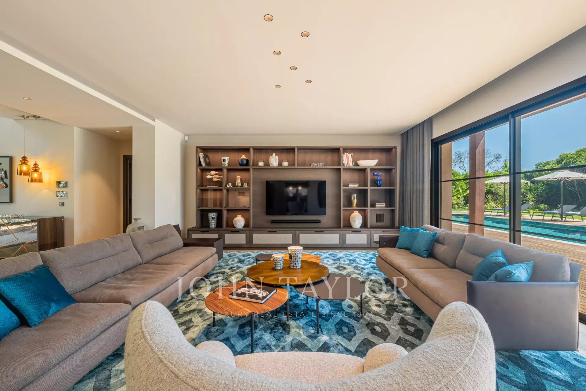 Vaste salon / salle de réception ouvrant sur l’extérieur