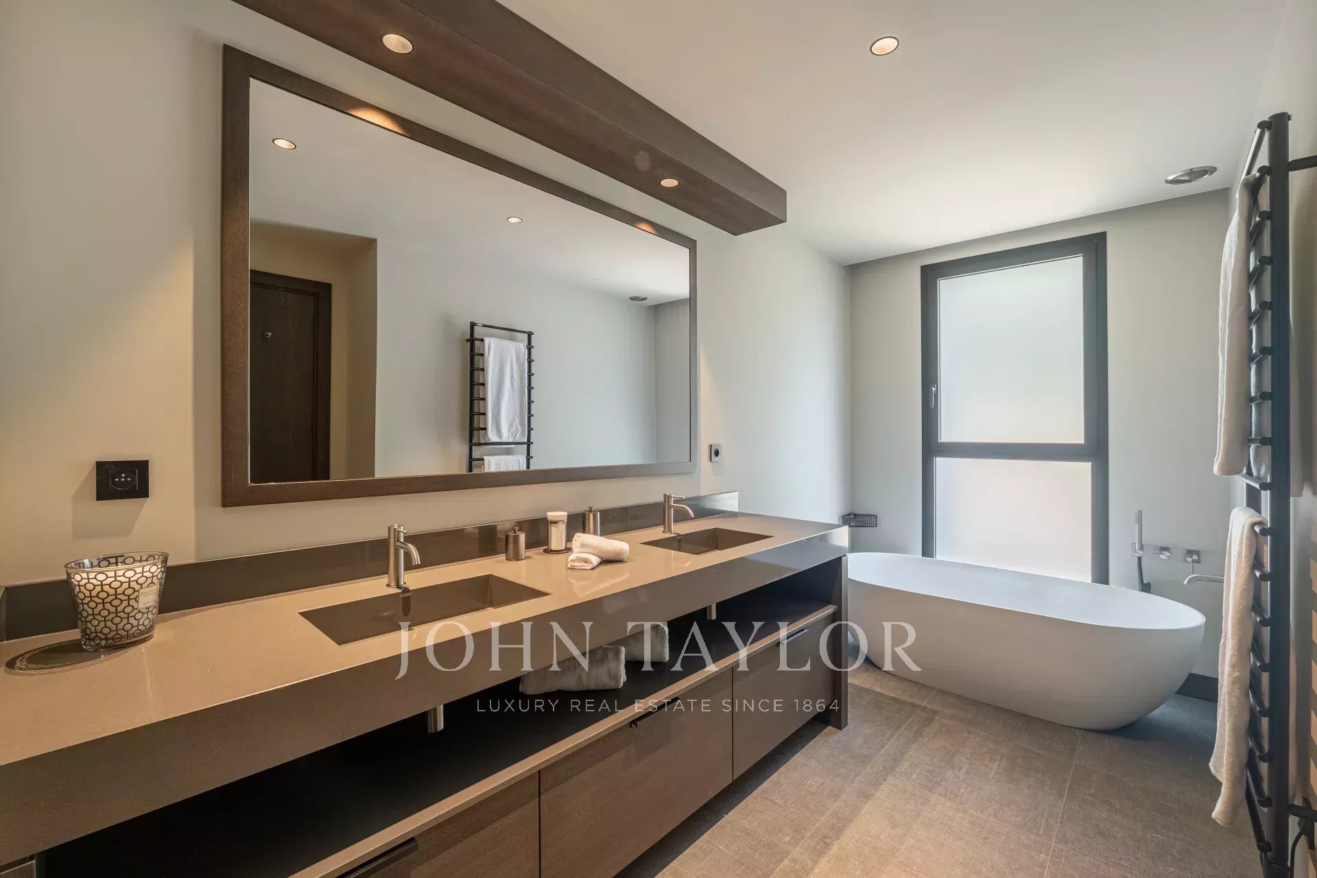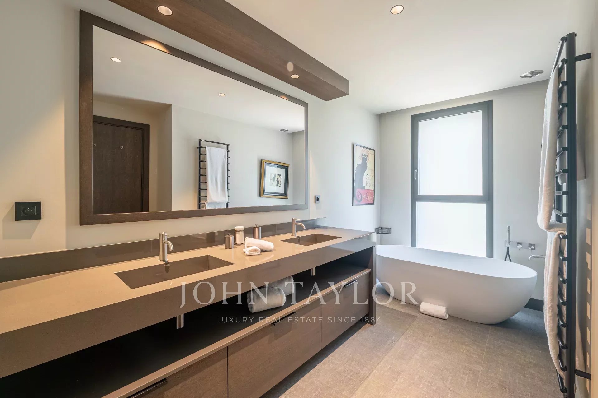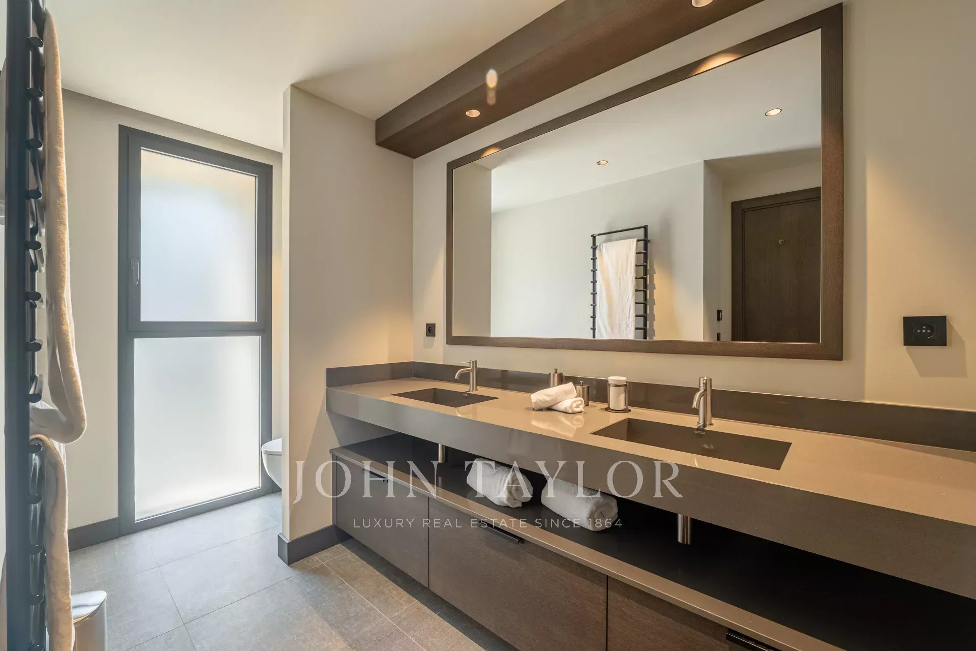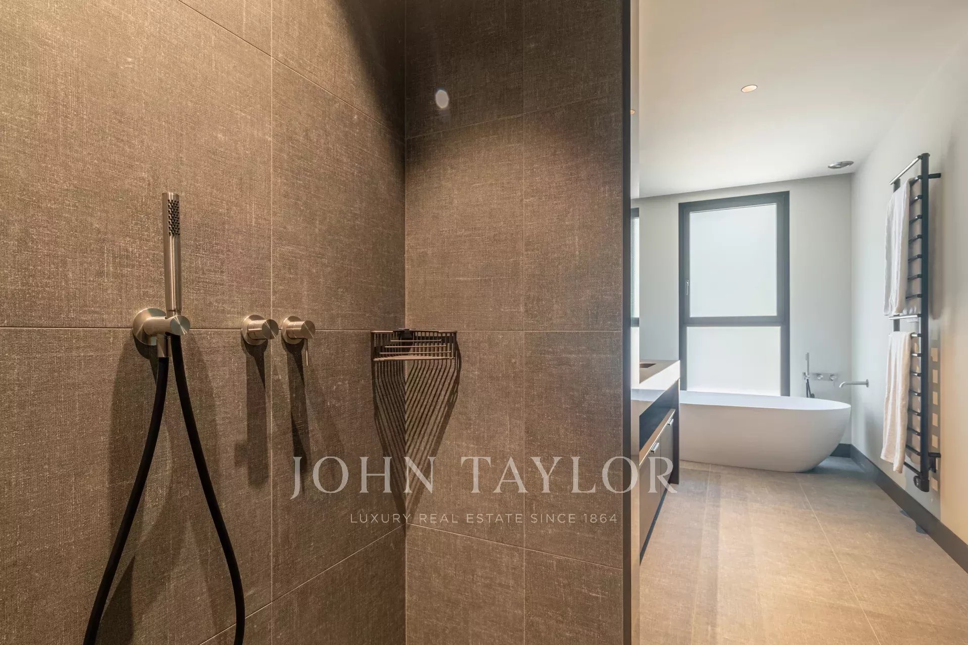 Suite parentale avec salle de bains privative (double vasque, douche, baignoire, WC) et dressing