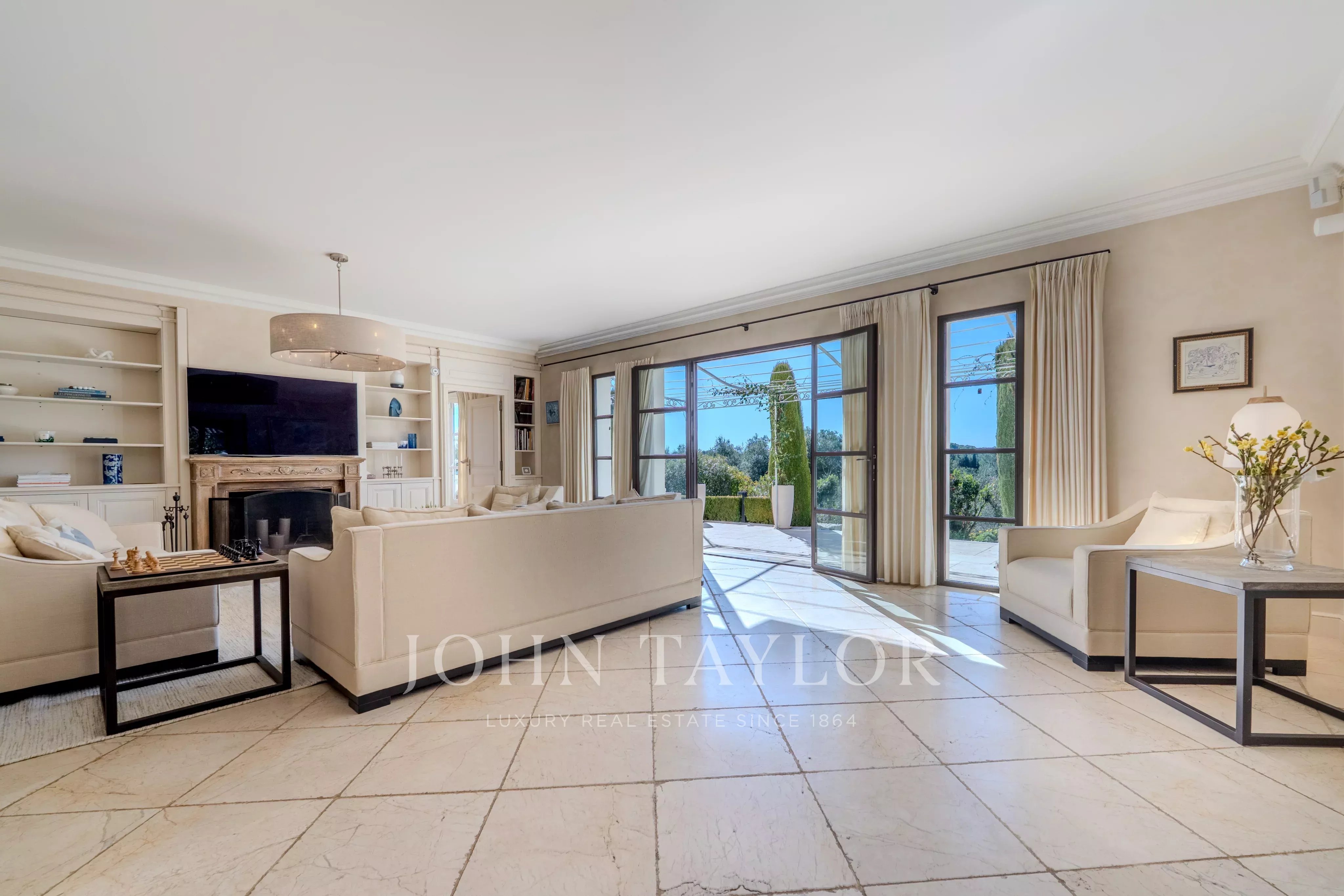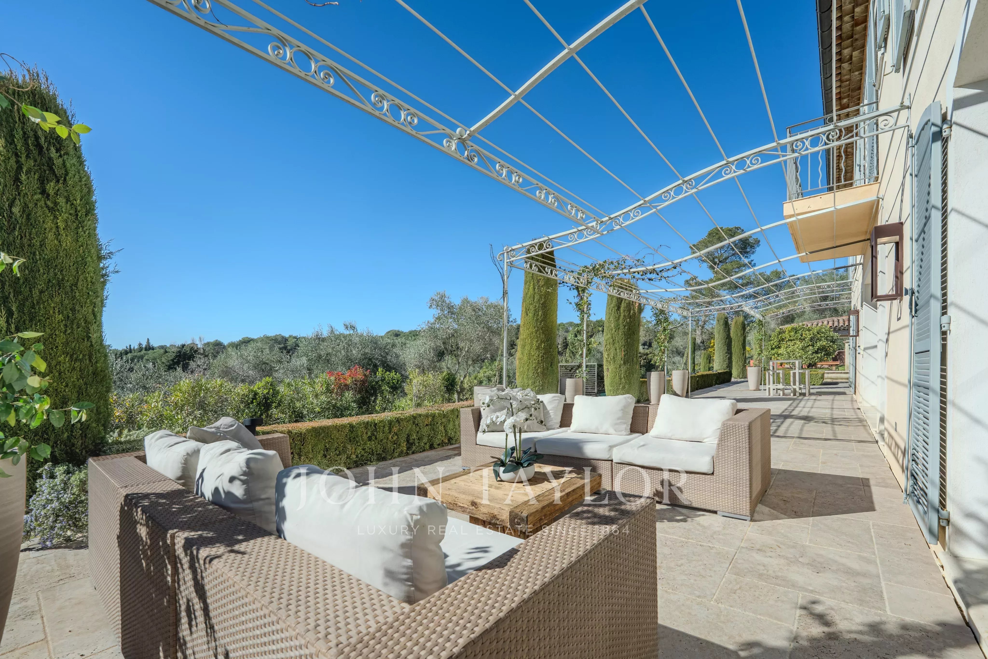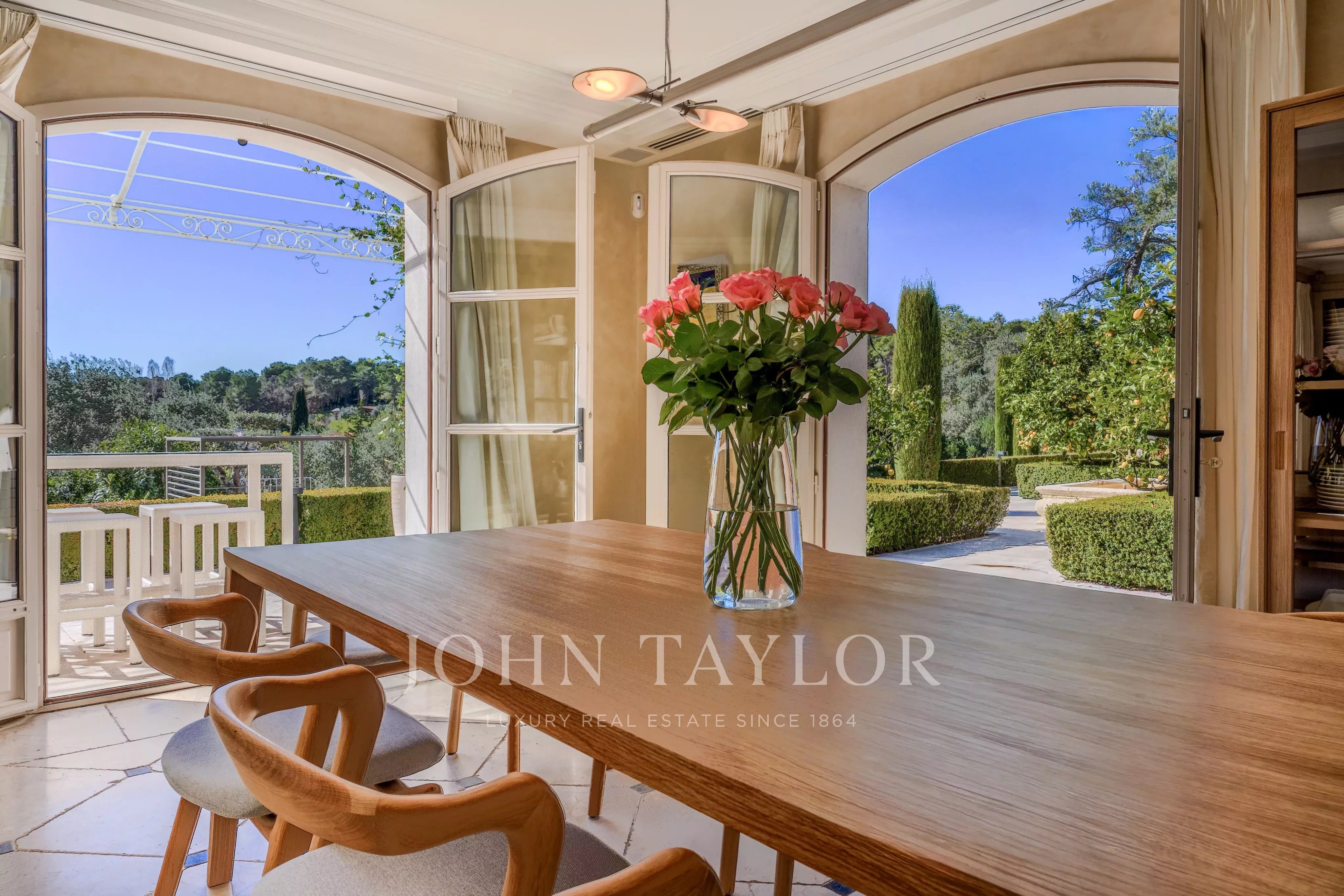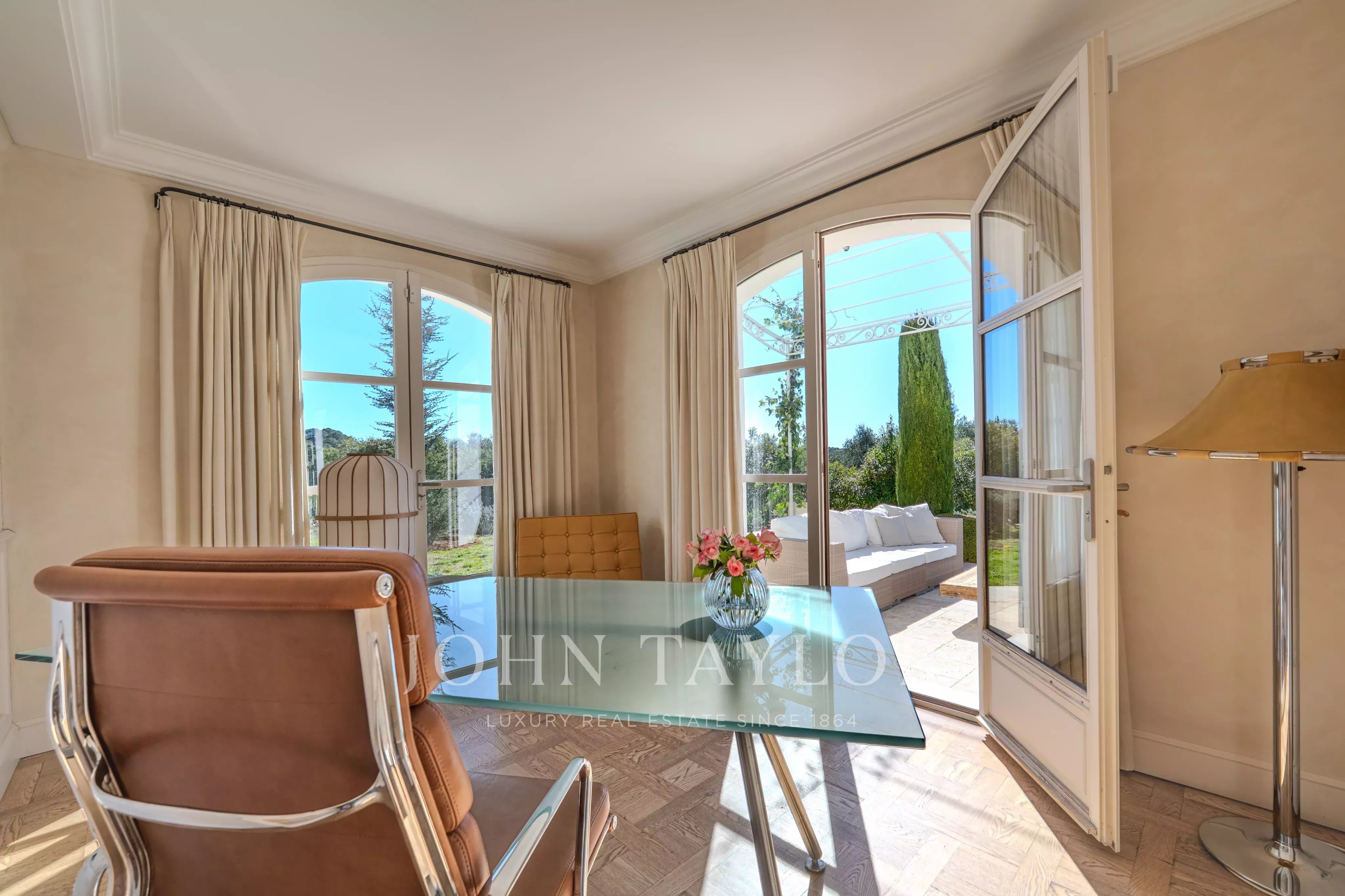 Offrez-vous un séjour d’exception sur la Côte d’Azur dans cette élégante bastide nichée au cœur d’un petit domaine résidentiel, entre Mougins et Valbonne.