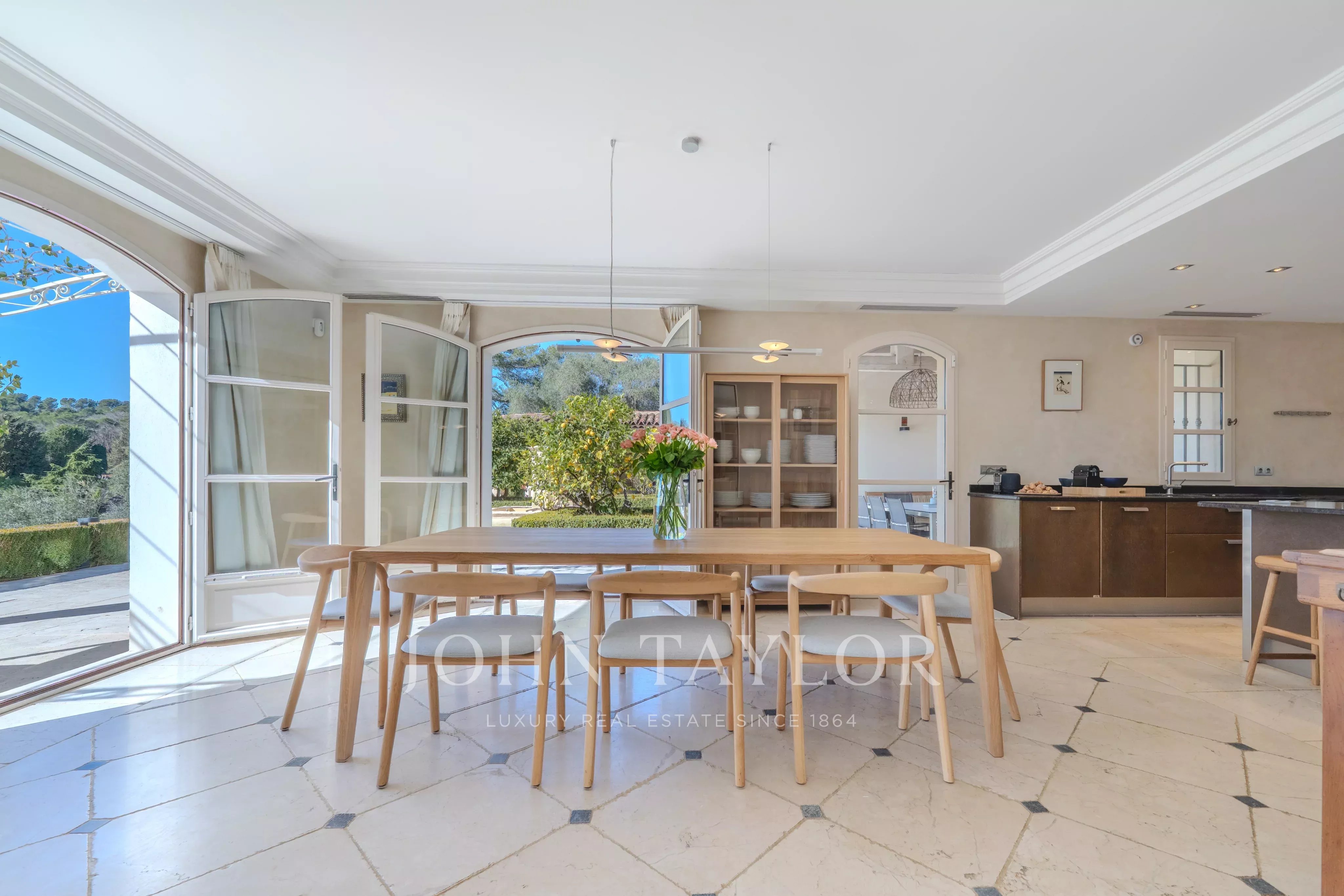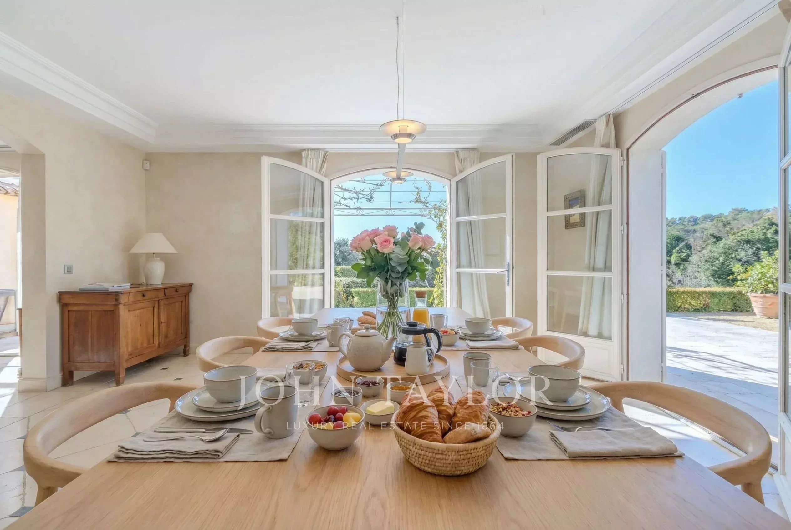 Située entre Mougins et Valbonne, la bastide permet de profiter facilement des plages de Cannes, des villages provençaux, des golfs et restaurants réputés, des marchés locaux.