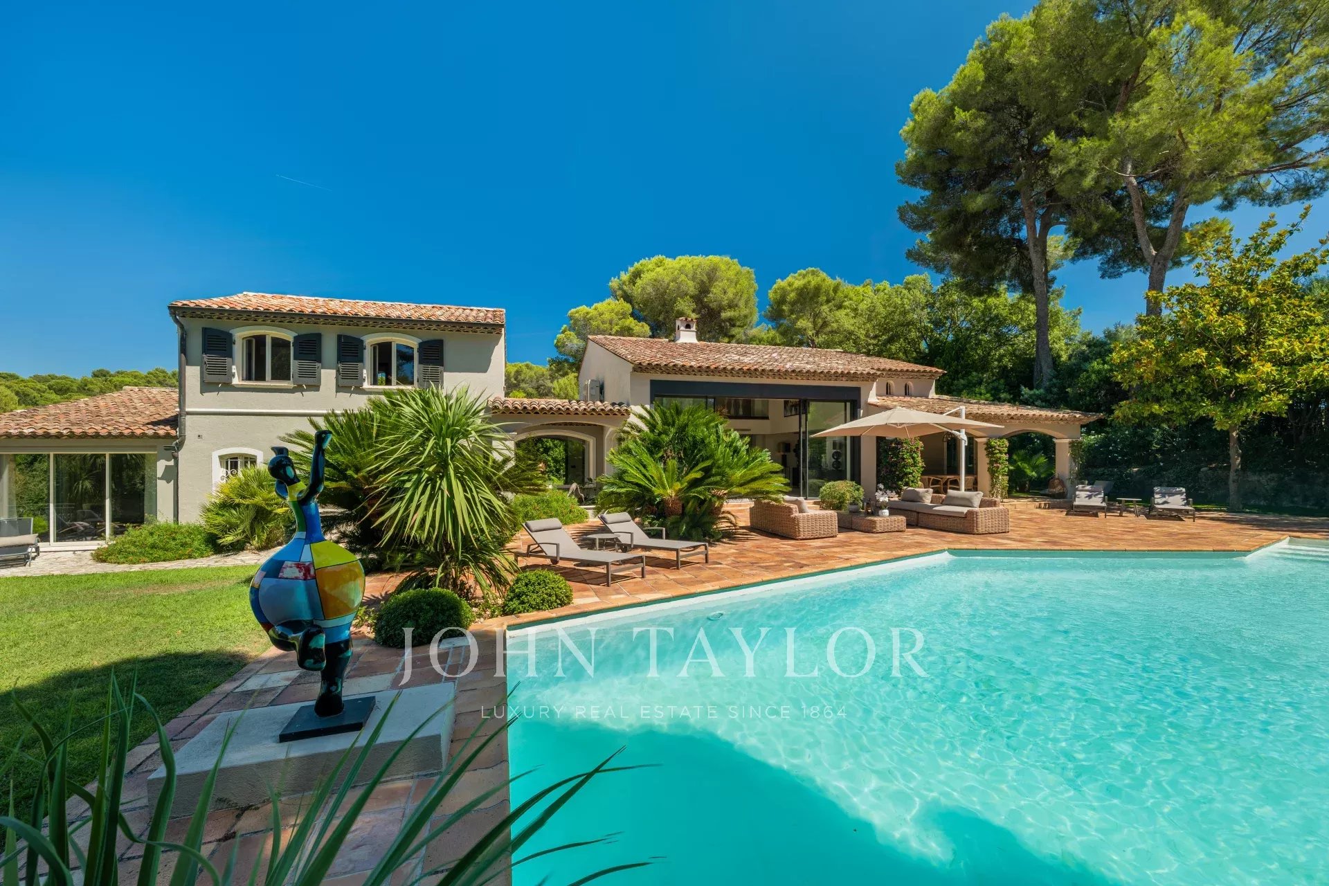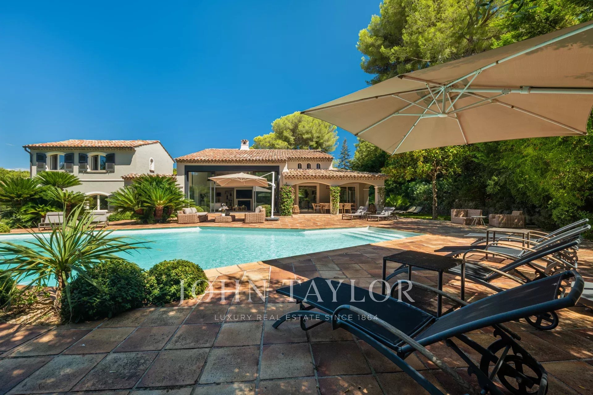 Située au cœur d’un terrain de 3500 m2 avec piscine, superbe provençale contemporaine, entièrement rénovée avec beaucoup de soin.