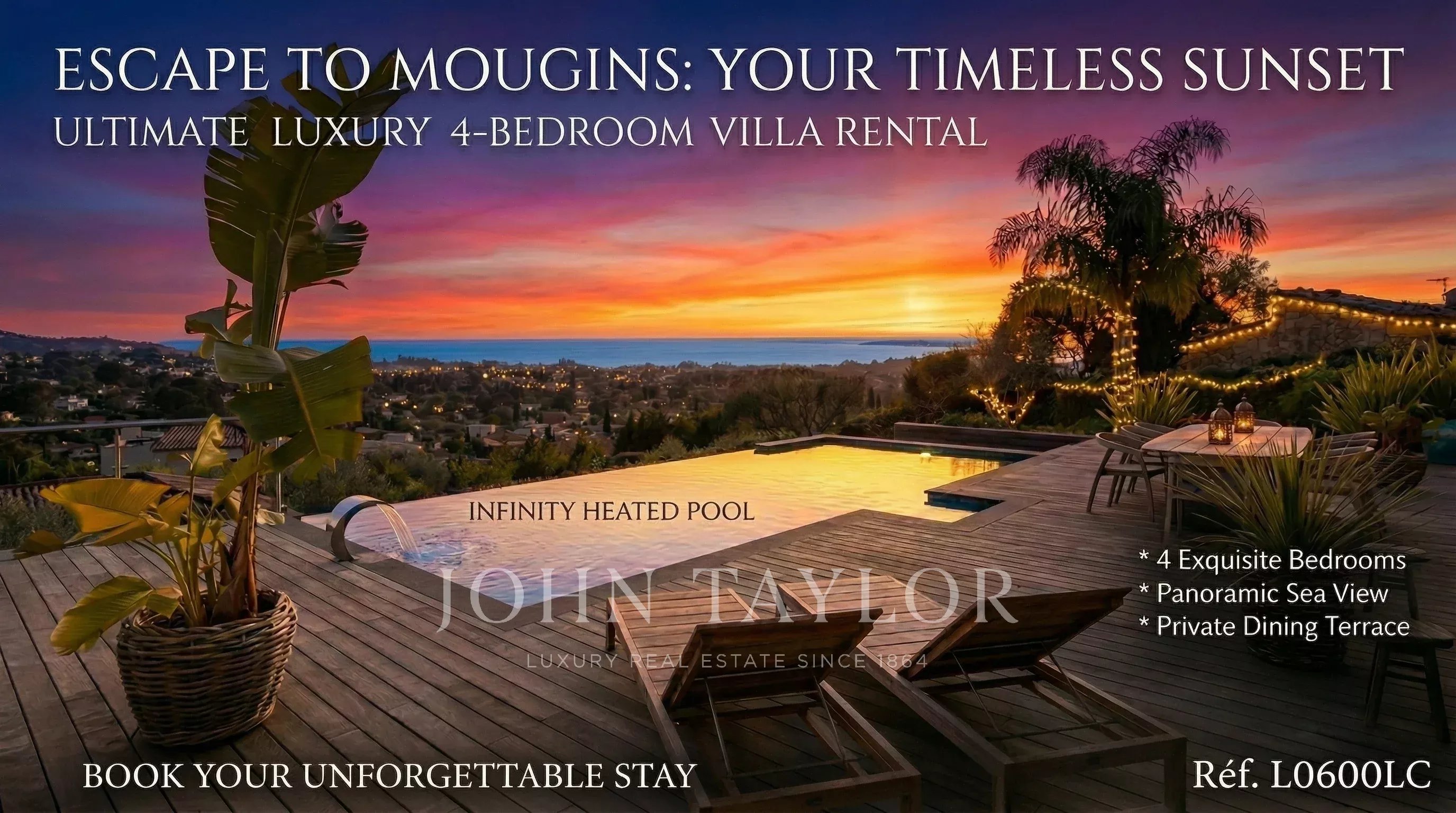 Villa contemporaine avec 4 chambres en suite à louer à Mougins - Vue mer panoramique, piscine chauffée