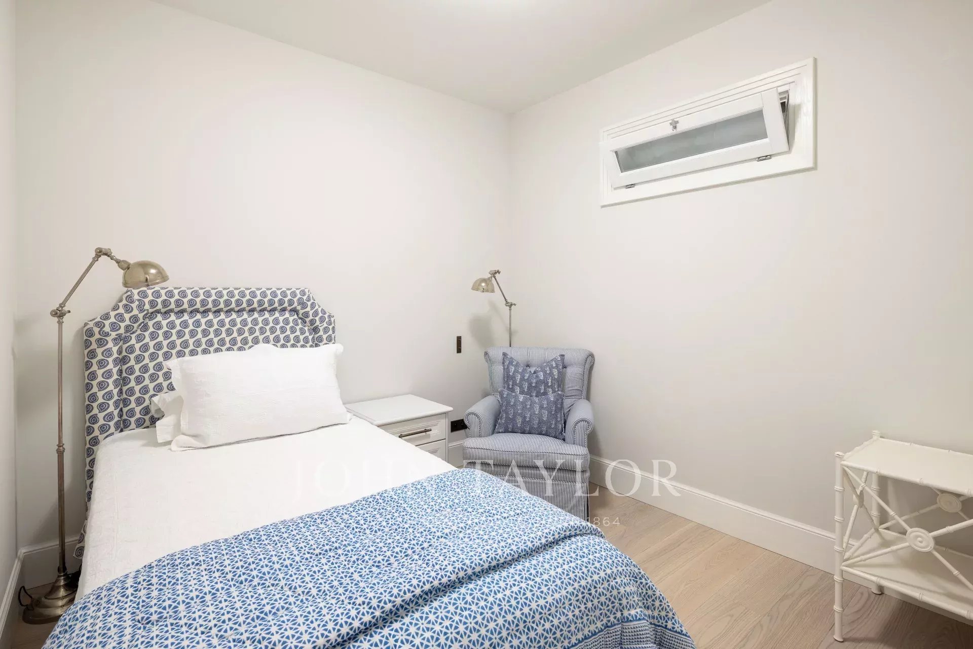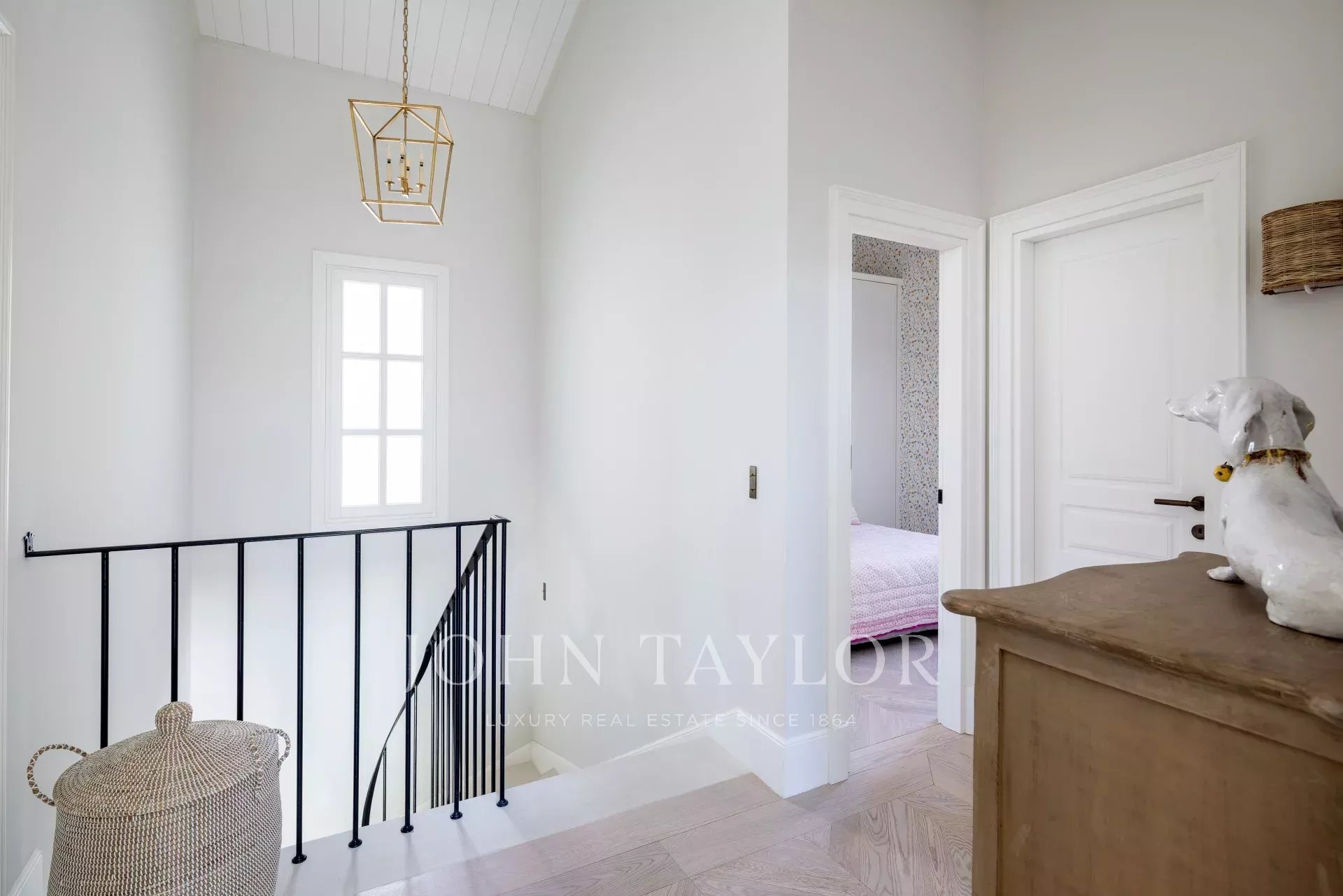 Construite sur 3 étages et entièrement rénovée, la villa possède un grand séjour avec cuisine ouvrant sur la piscine et son jardin plat, 3 chambres ainsi qu'un espace TV, et une chambre supplémentaires pour le personnel.