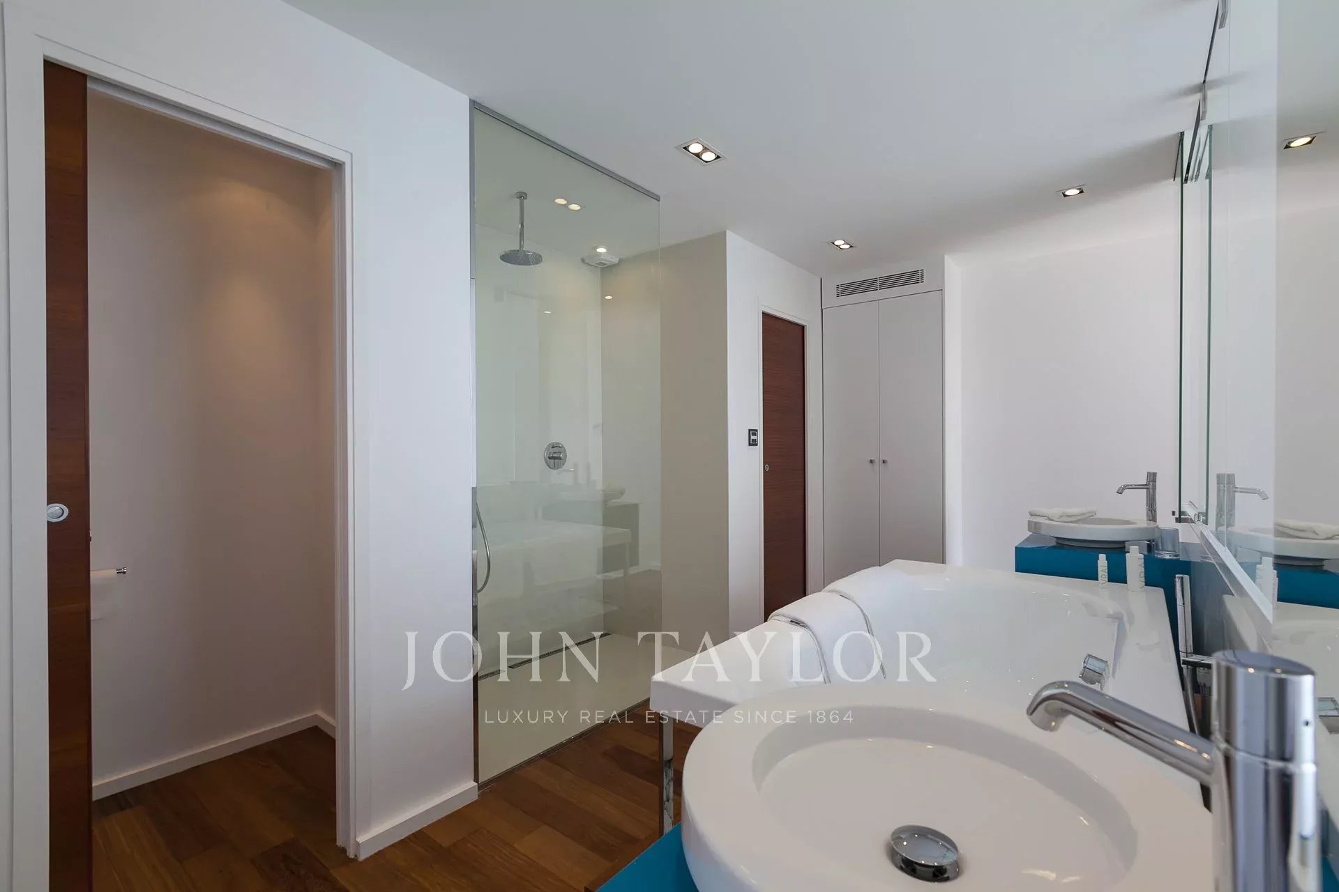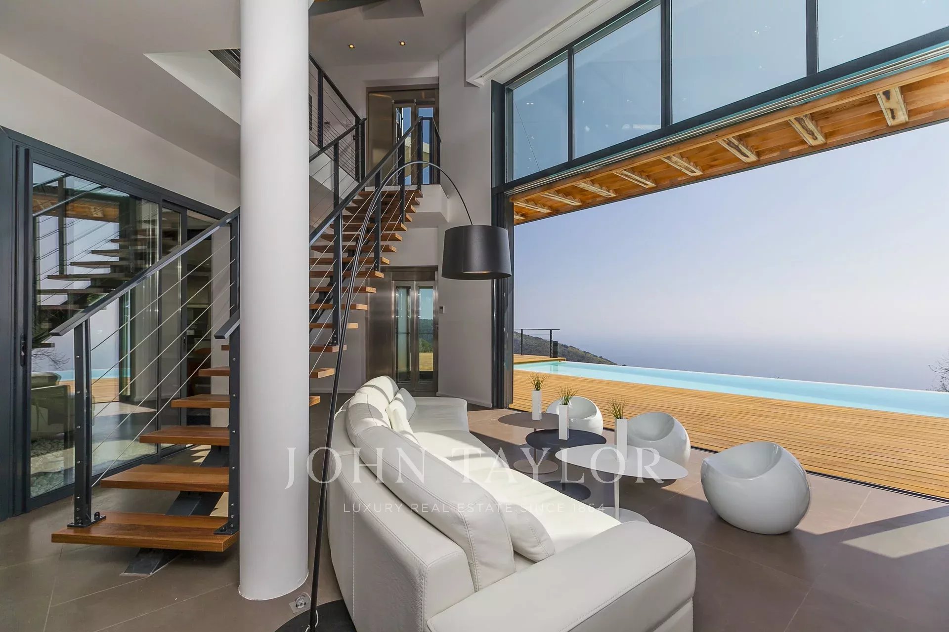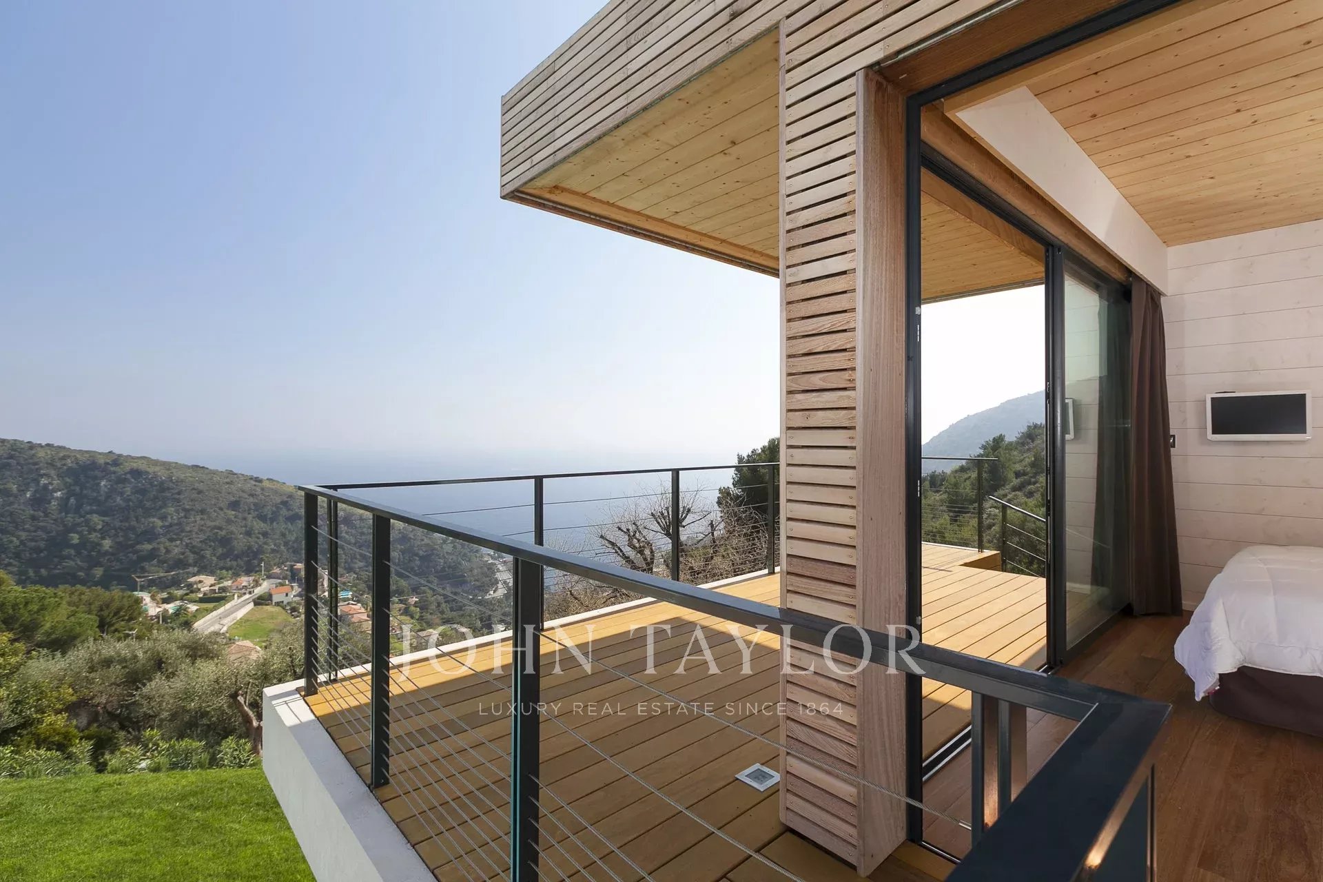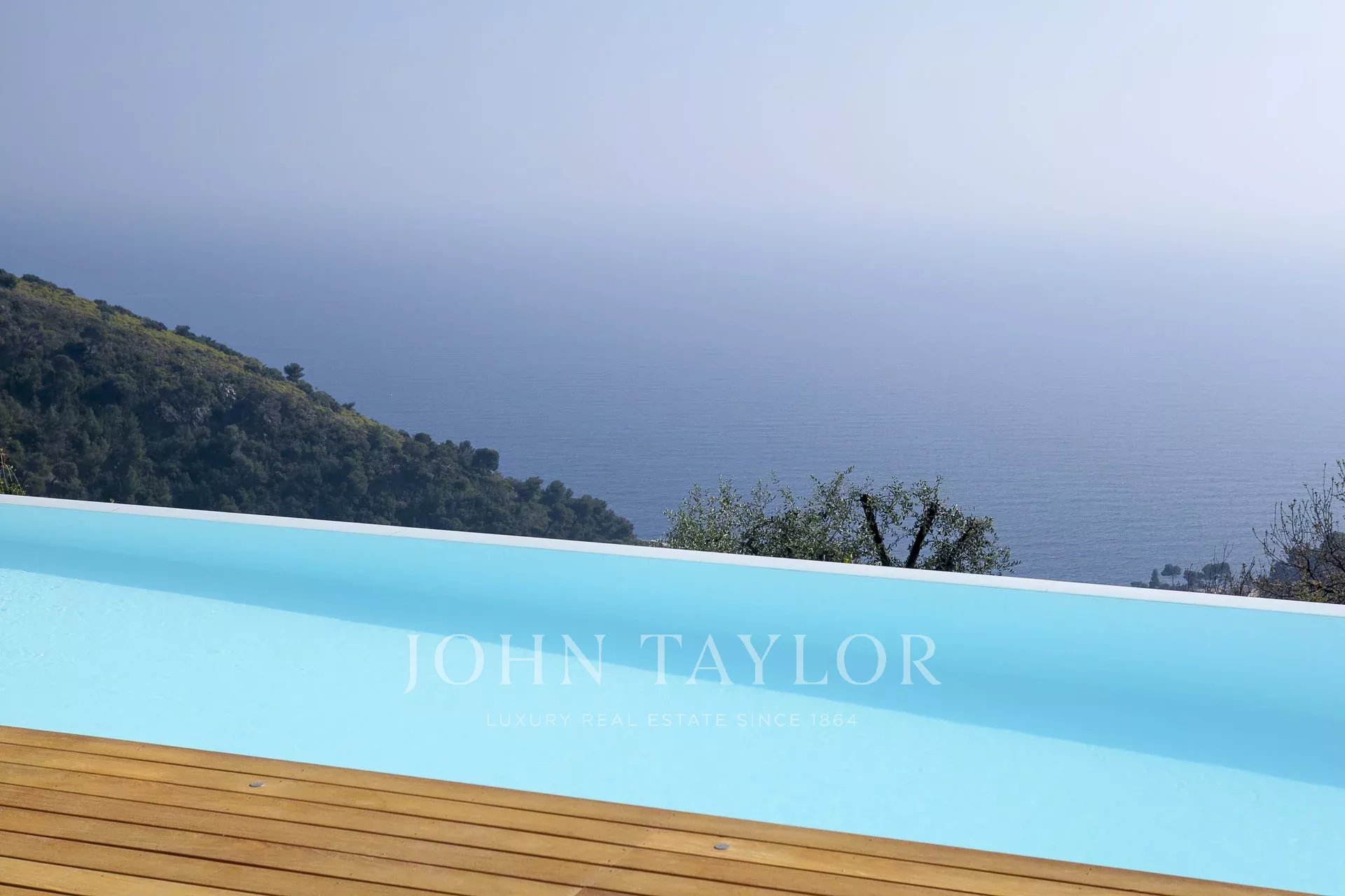 Superbe villa moderne d'environ 350 m² habitables sur un terrain d'environ 2 200 m², située sur les hauteurs de Eze dans un quartier résidentiel, offrant une magnifique vue sur la mer et les collines. La villa se compose de 5 chambres chacune avec sa salle de bains ou douche, un séjour ouvrant sur une vaste terrasse avec piscine chauffée, espace salle à manger, cuisine entièrement équipée avec arrière cuisine semi-professionnelle. Pavillon pour les invités avec une chambre et sa salle de douche.