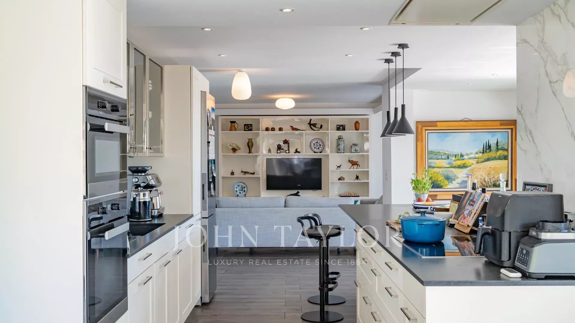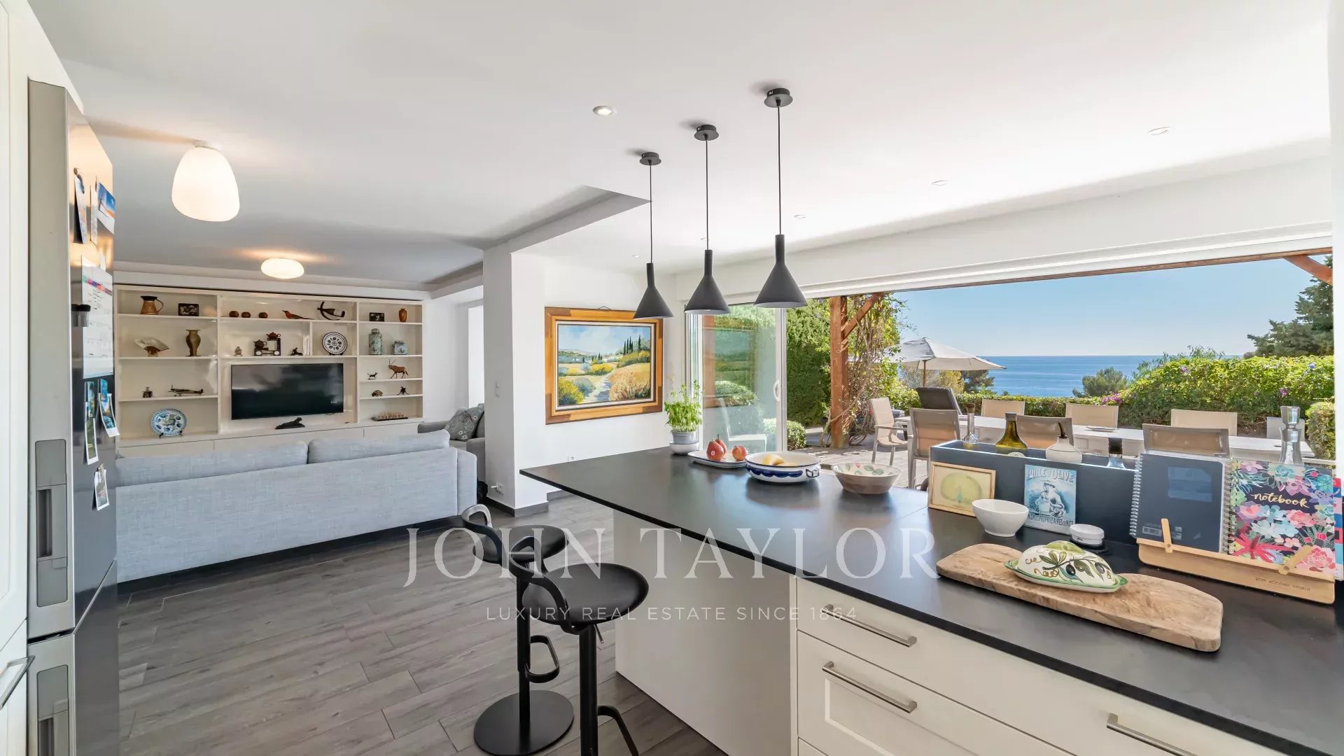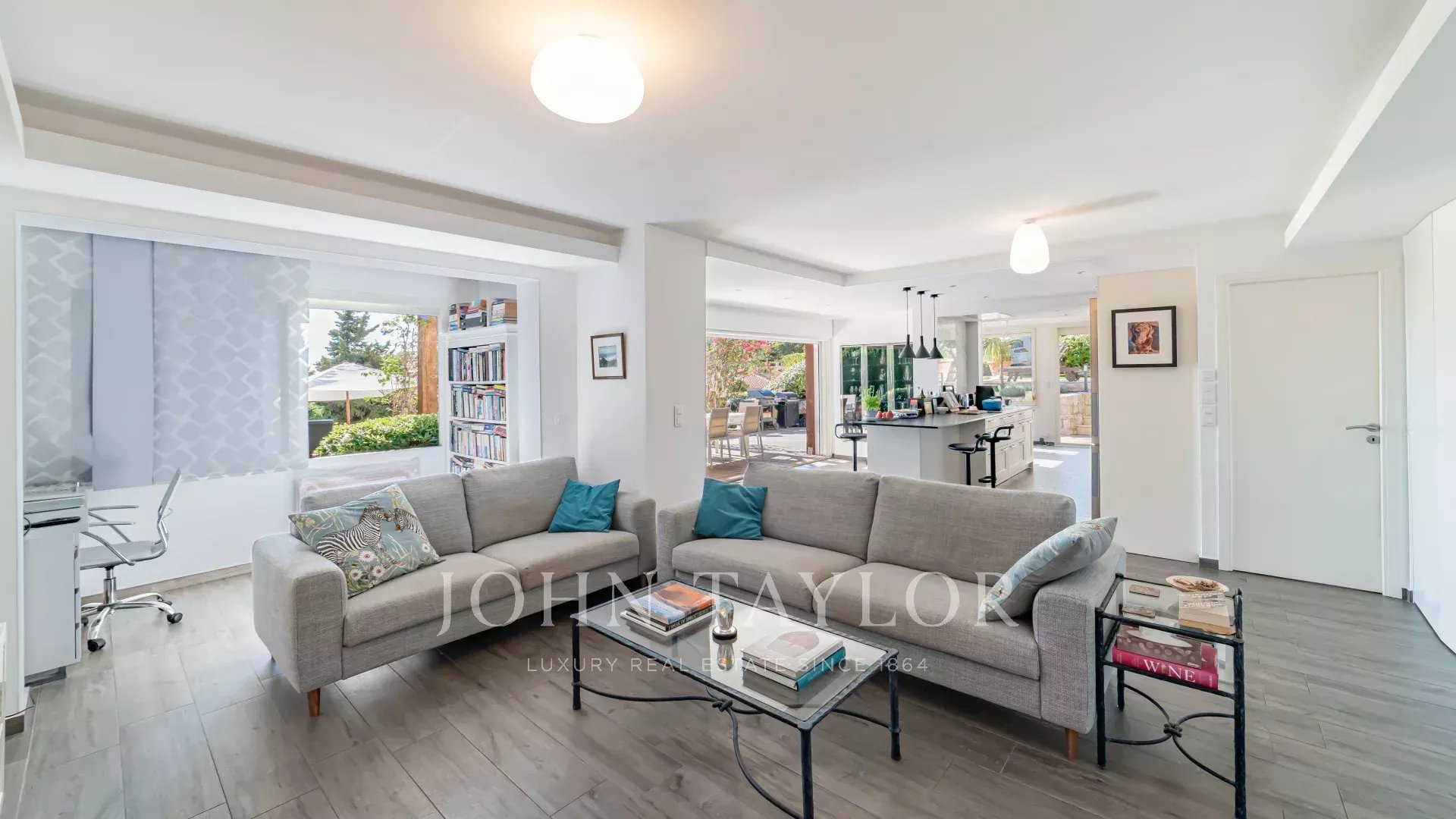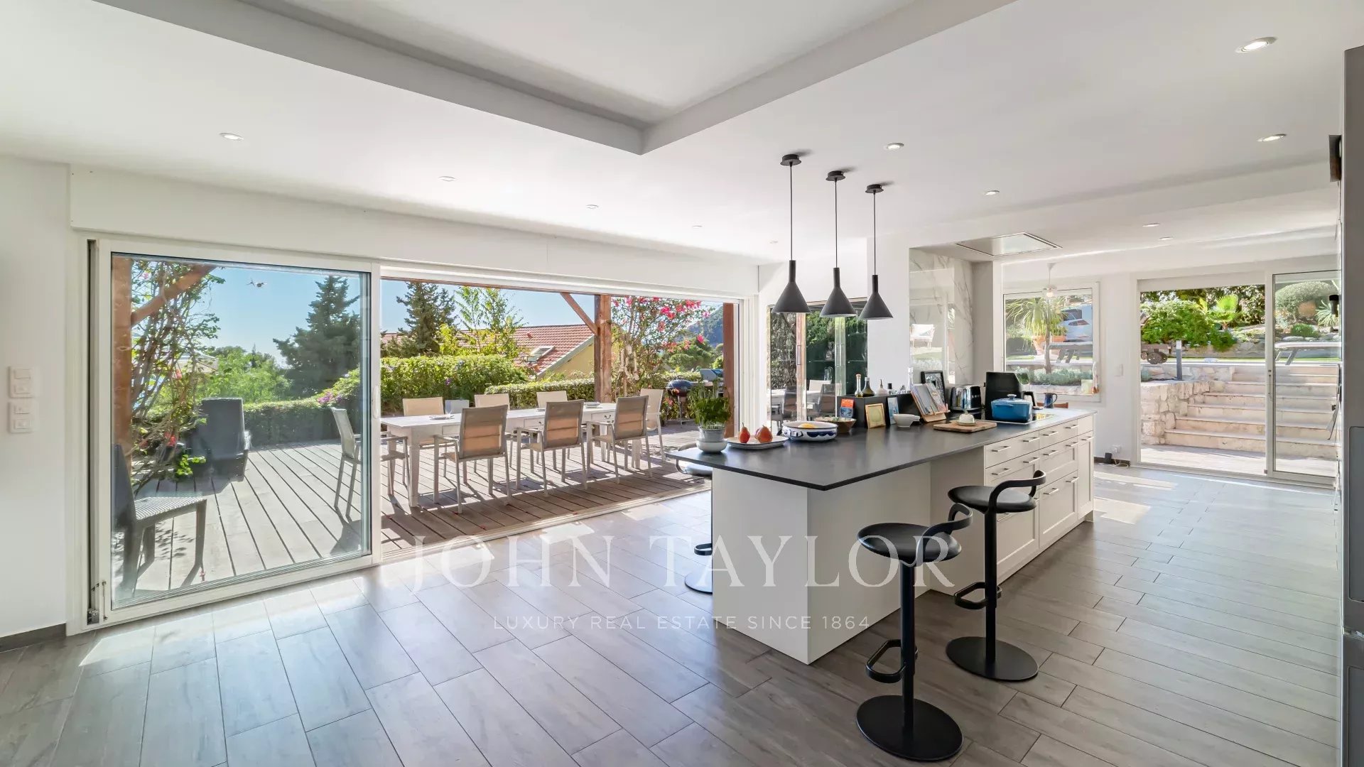 Elle se compose d'un séjour avec cuisine américaine et salle à manger lumineuse ouvrant sur une terrasse, 2 chambres chacune avec sa salle douche, ainsi qu’une belle pièce à vivre prolongée par le jardin et la piscine privée.