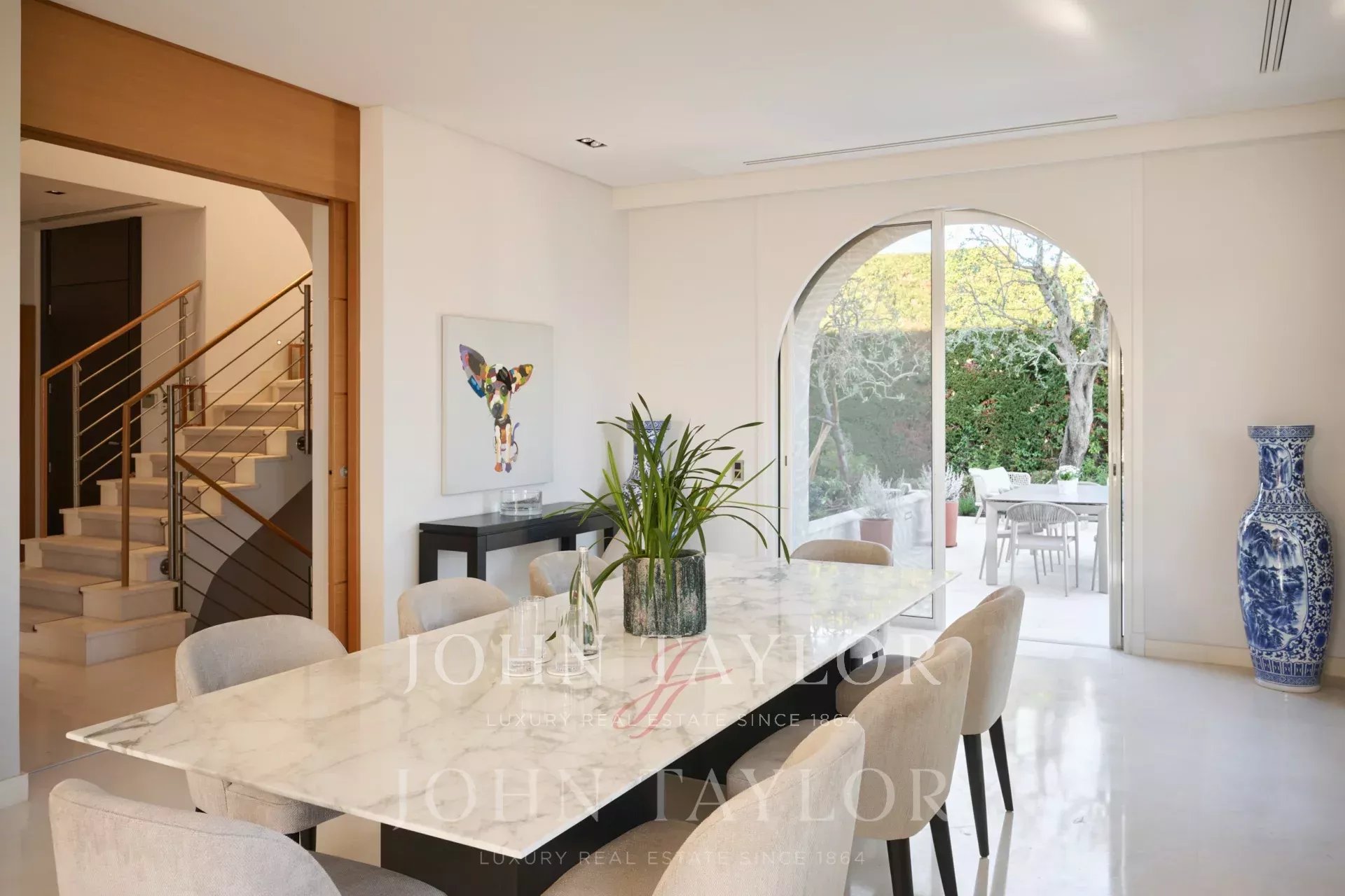 Salle à manger pouvant accueillir jusqu'à 12 personnes ouvrant sur une grande terrasse
