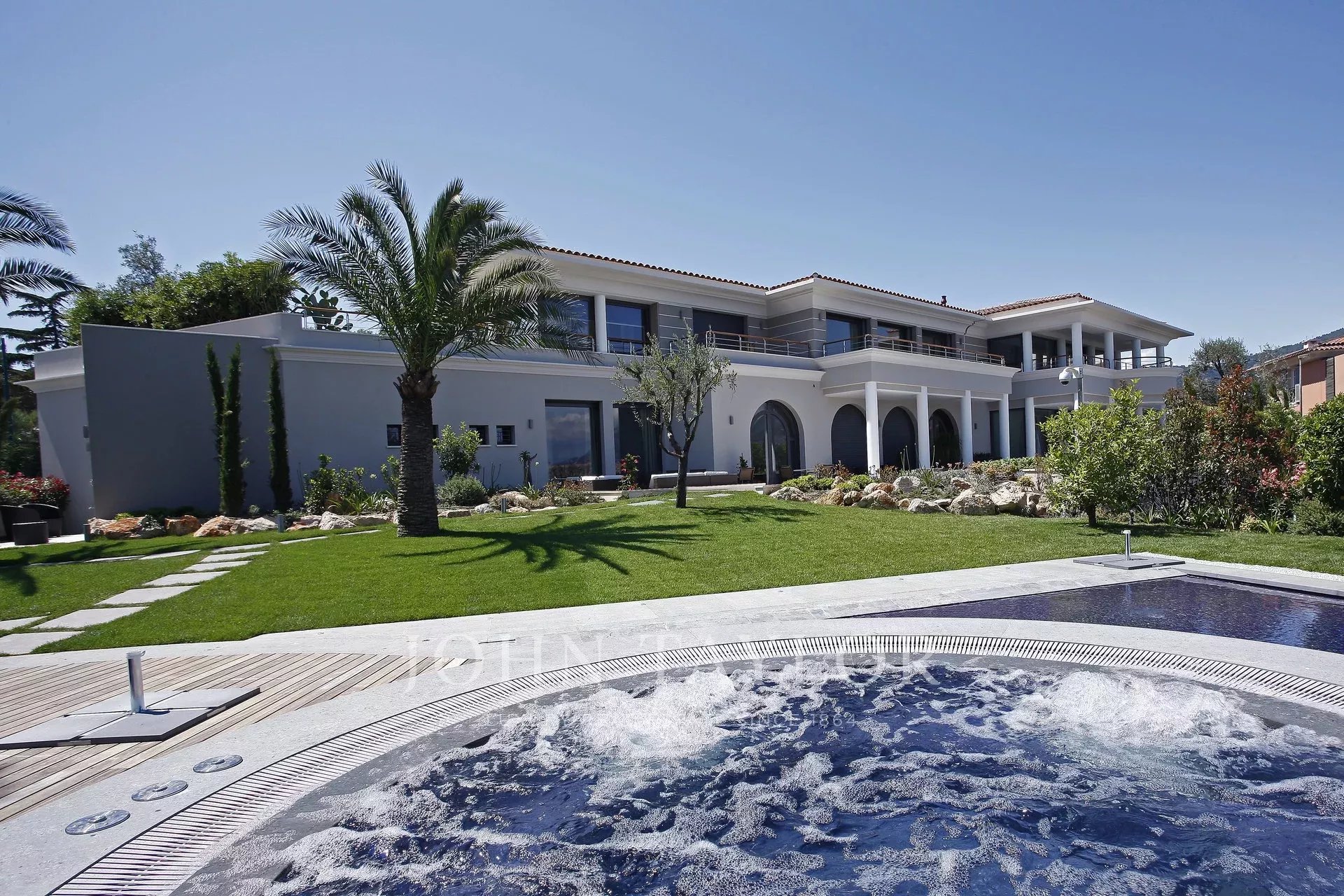 Grande piscine extérieur avec Jacuzzi et pool house. Spa avec sauna, hammam et salle de fitness. Garage pour 7 voitures.