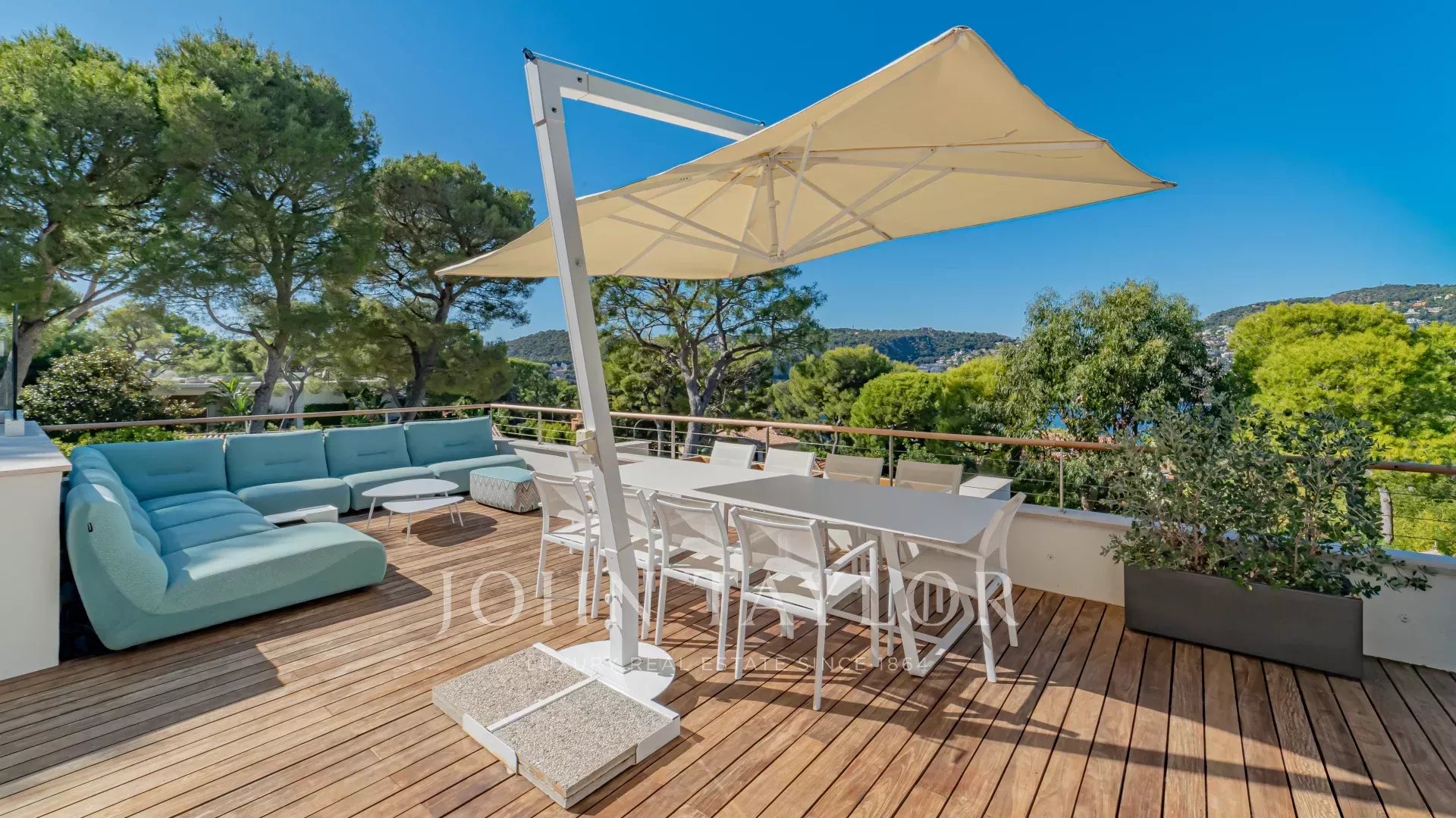 Le toit-terrasse constitue un véritable espace de vie supplémentaire, avec cuisine d’été, table à manger et salon extérieur, jacuzzi, idéal pour profiter pleinement des soirées estivales.