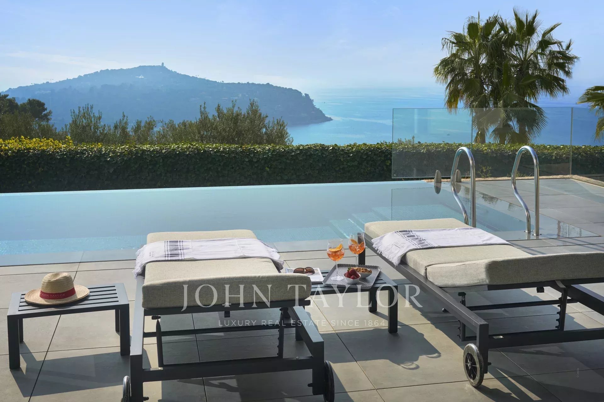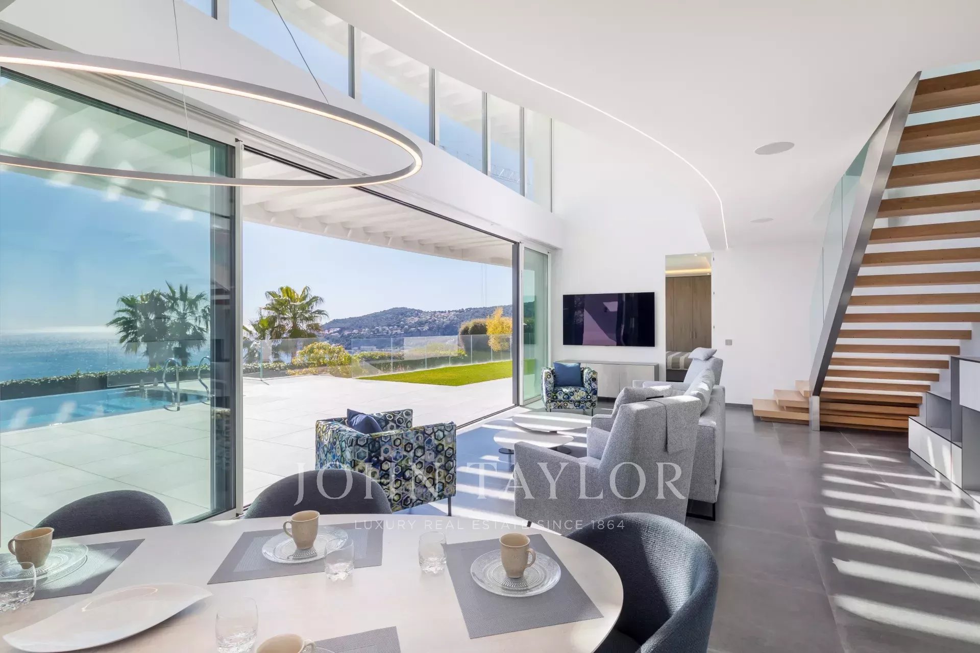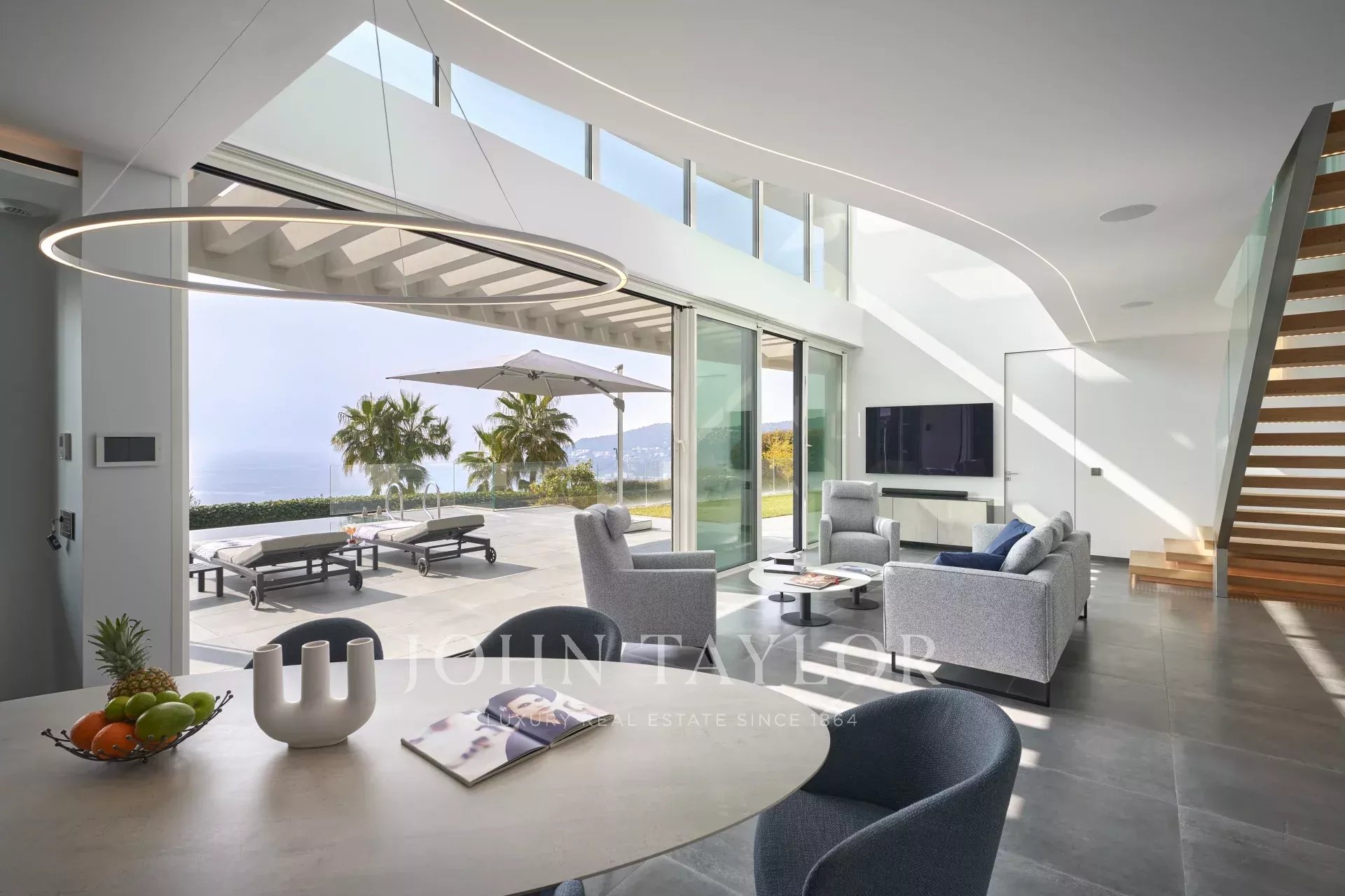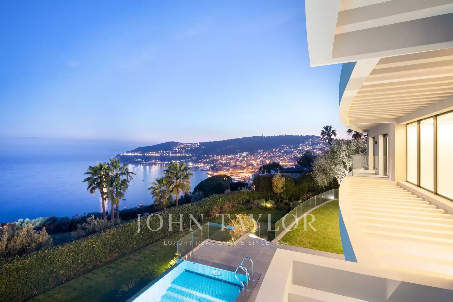 Cette magnifique propriété contemporaine offrant une vue panoramique sur la mer, la baie de Villefranche et le Cap Ferrat bénéficie de prestations haut standing.