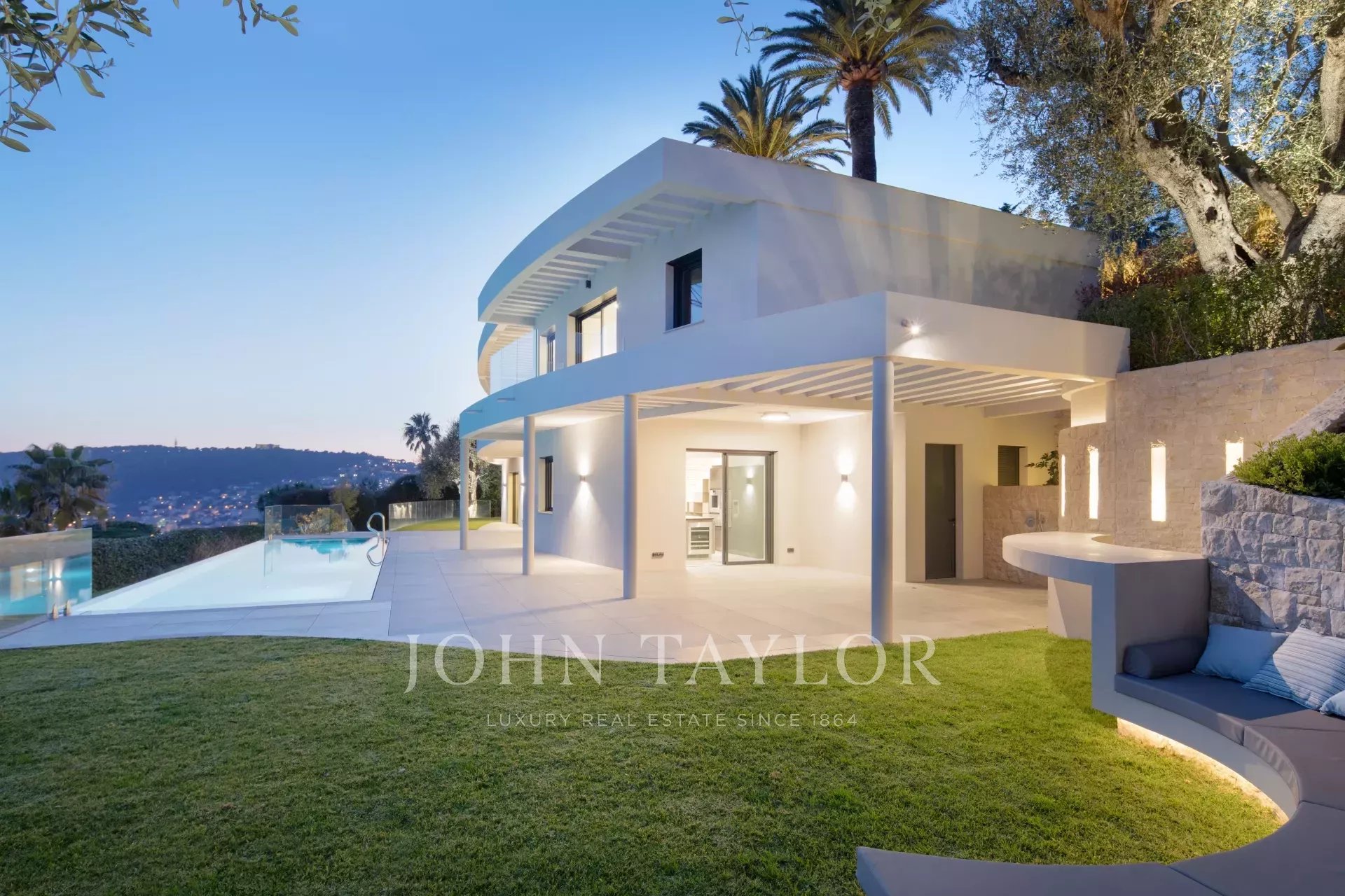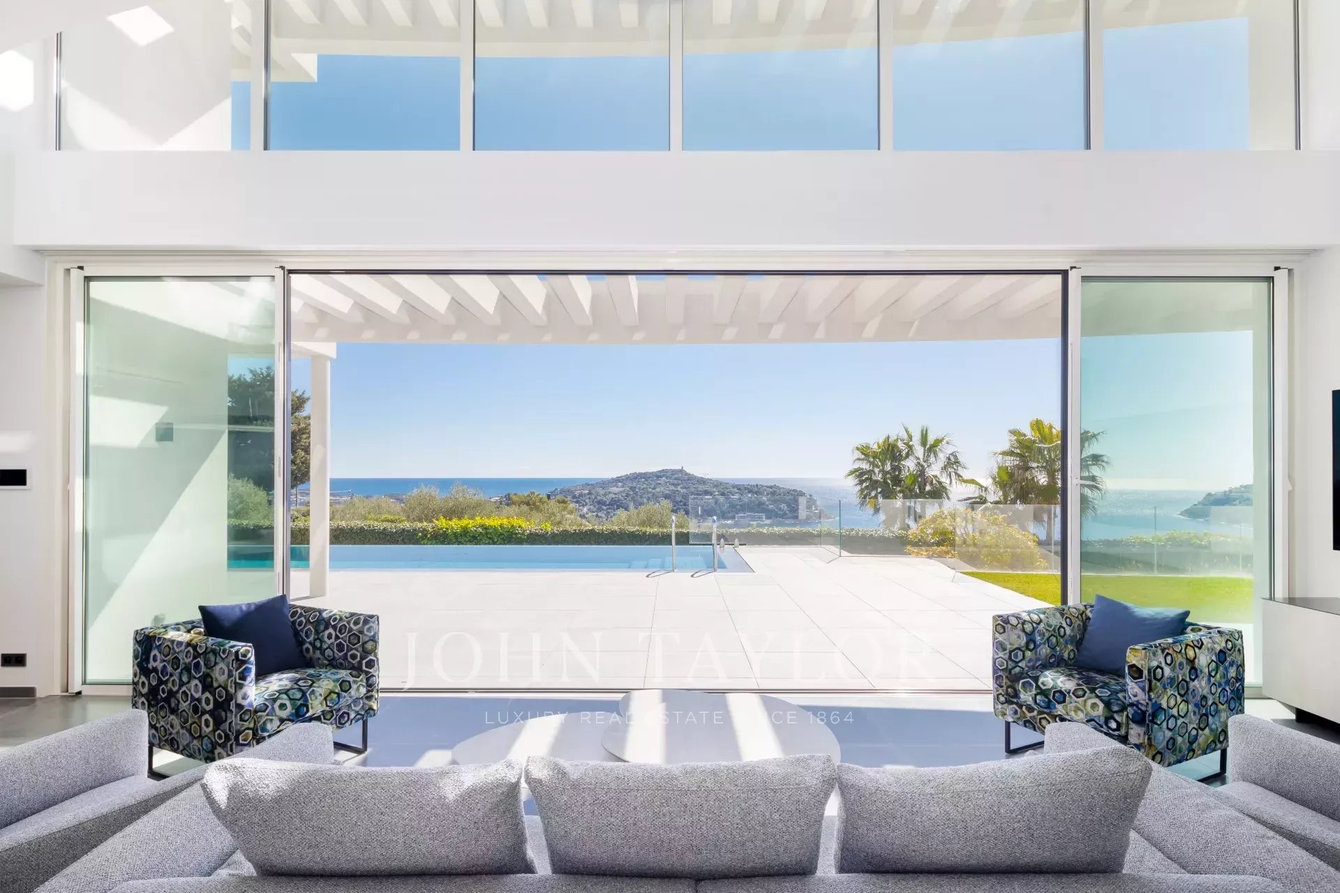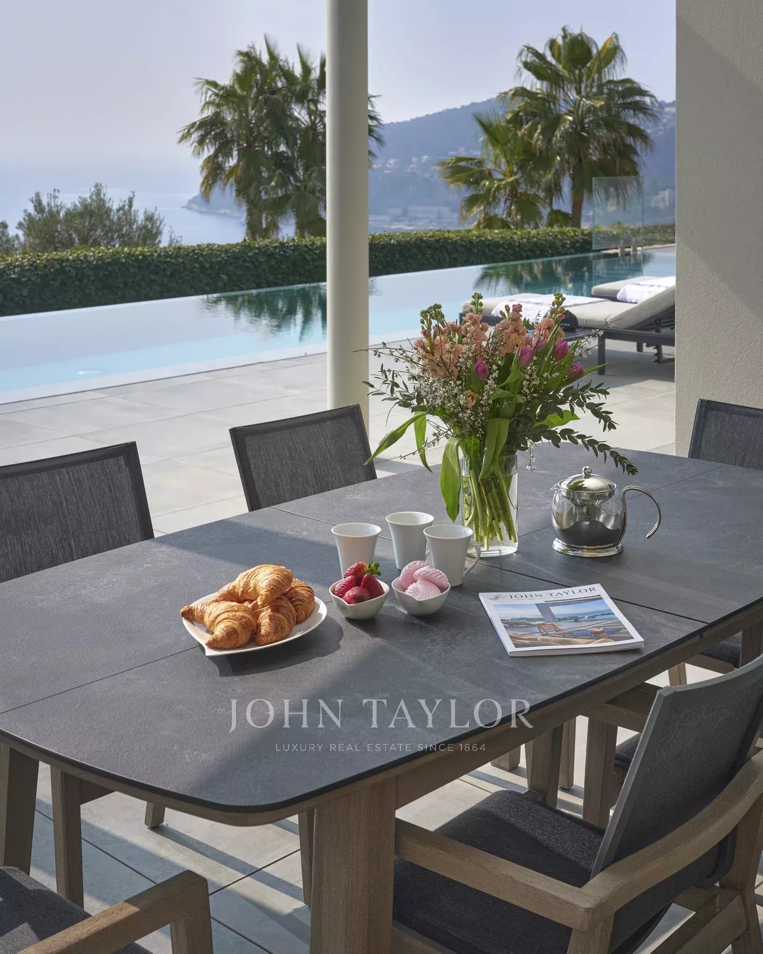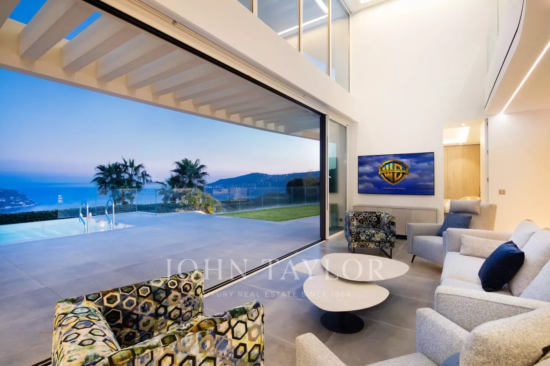 Cette magnifique propriété contemporaine offrant une vue panoramique sur la mer, la baie de Villefranche et le Cap Ferrat bénéficie de prestations haut standing.