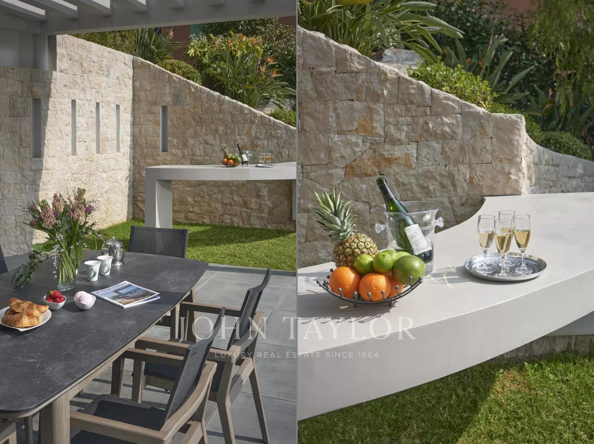 Nichée dans un écrin de verdure aux essences méditerranéennes, la propriété dispose d’un jardin, d’une vaste terrasse avec piscine, un espace bar ainsi qu’un terrain de pétanque.