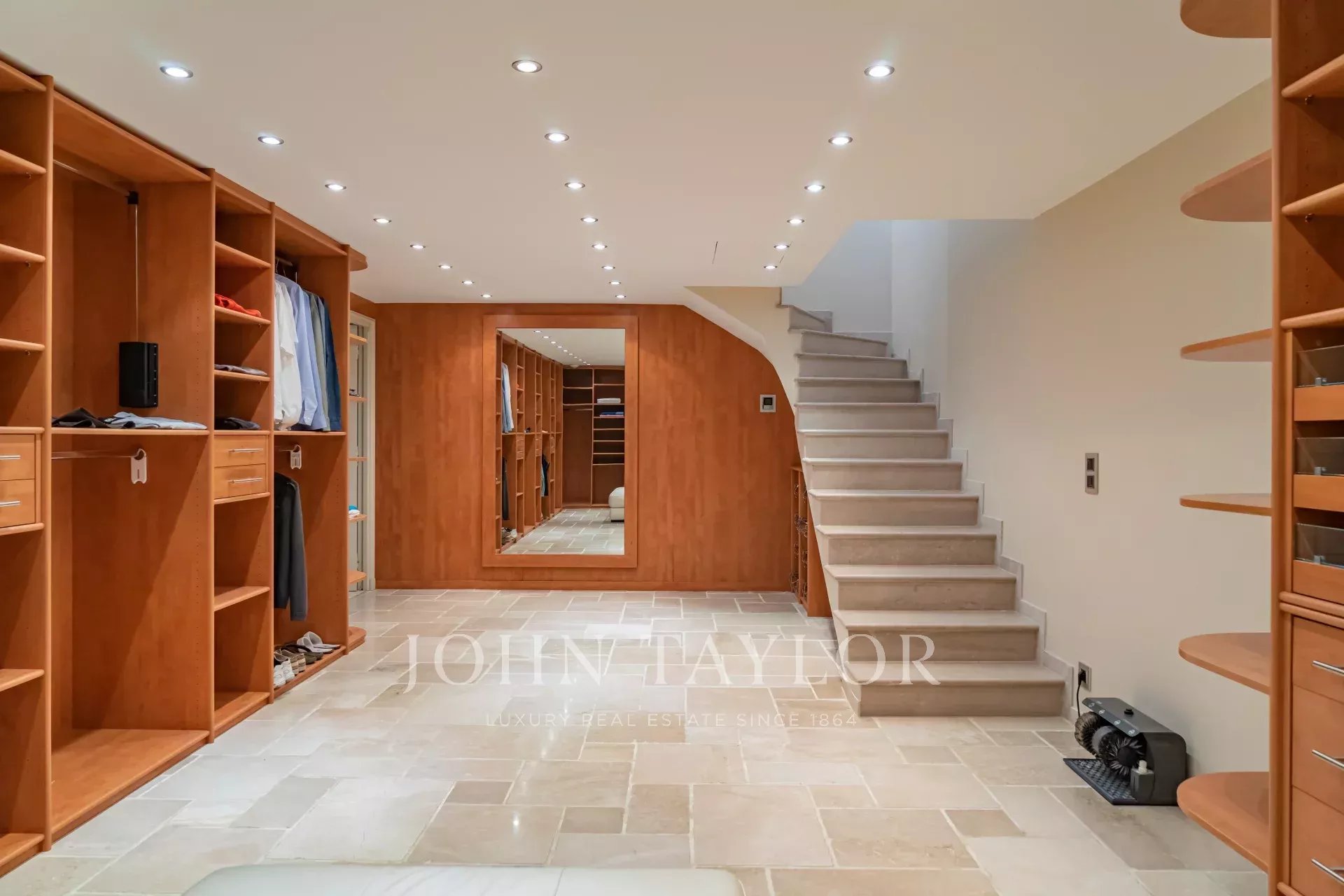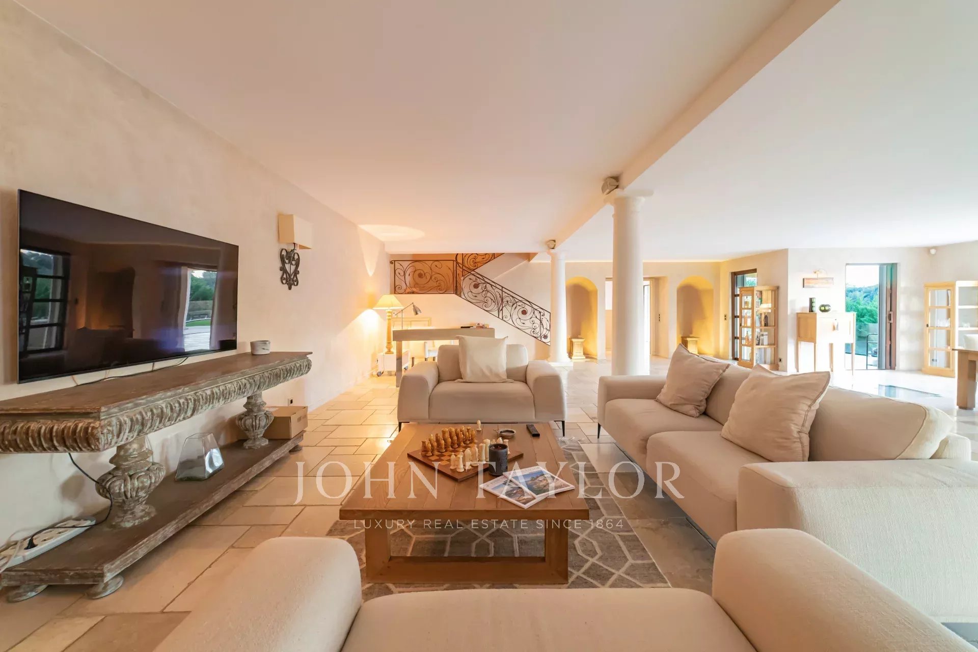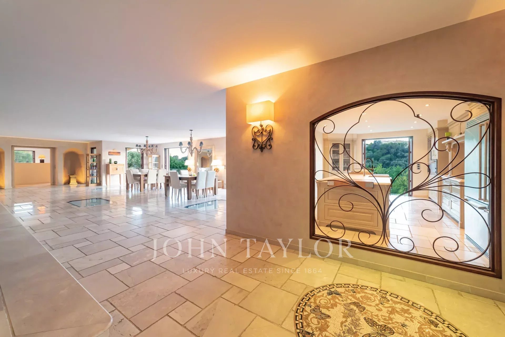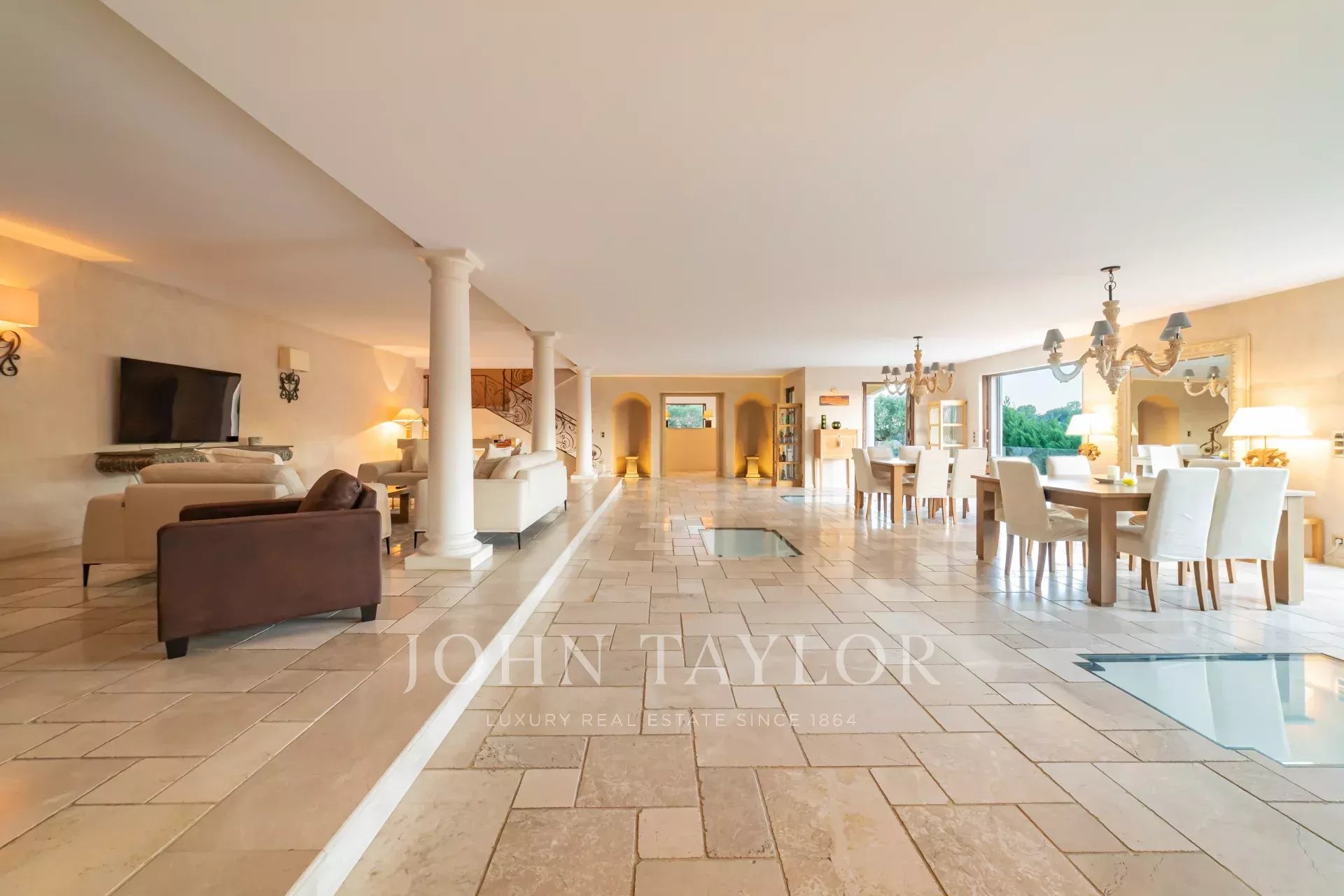 Magnifique villa de près de 550m2 composée au rez-de-chaussée d’un hall de réception de 200m2 avec cheminée, canapés et télévision, une salle à manger, une grande cuisine indépendante équipée notamment de machines à café, four à vapeur, machine à glaçons, friteuse, gaufrier... A cet étage, une chambre master avec salle de bain et 2 douches en suite, accès direct sur la terrasse avec vue piscine. L’immense dressing de la Master est accessible par un escalier.