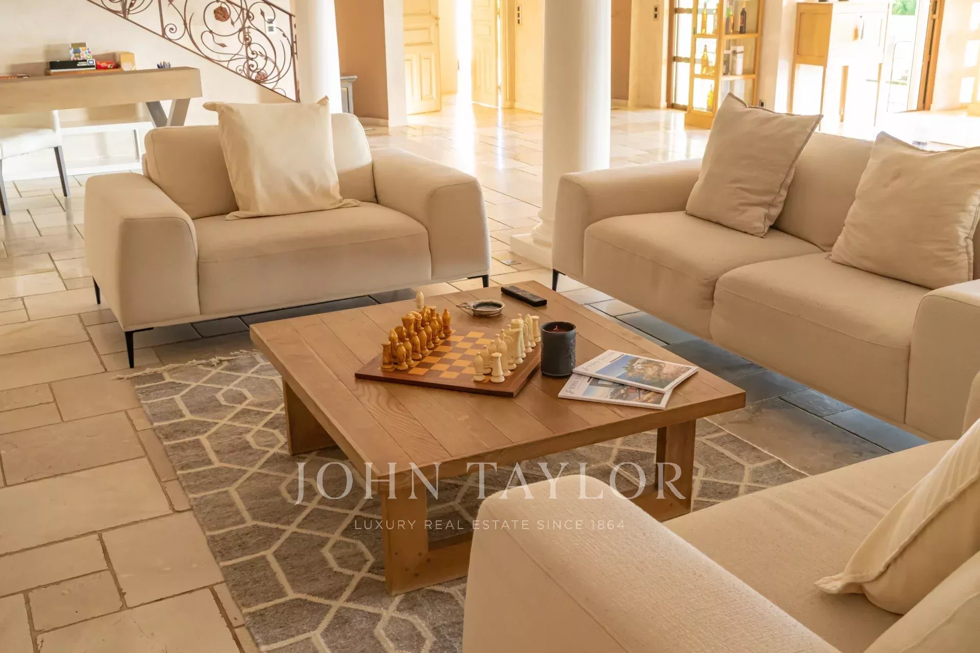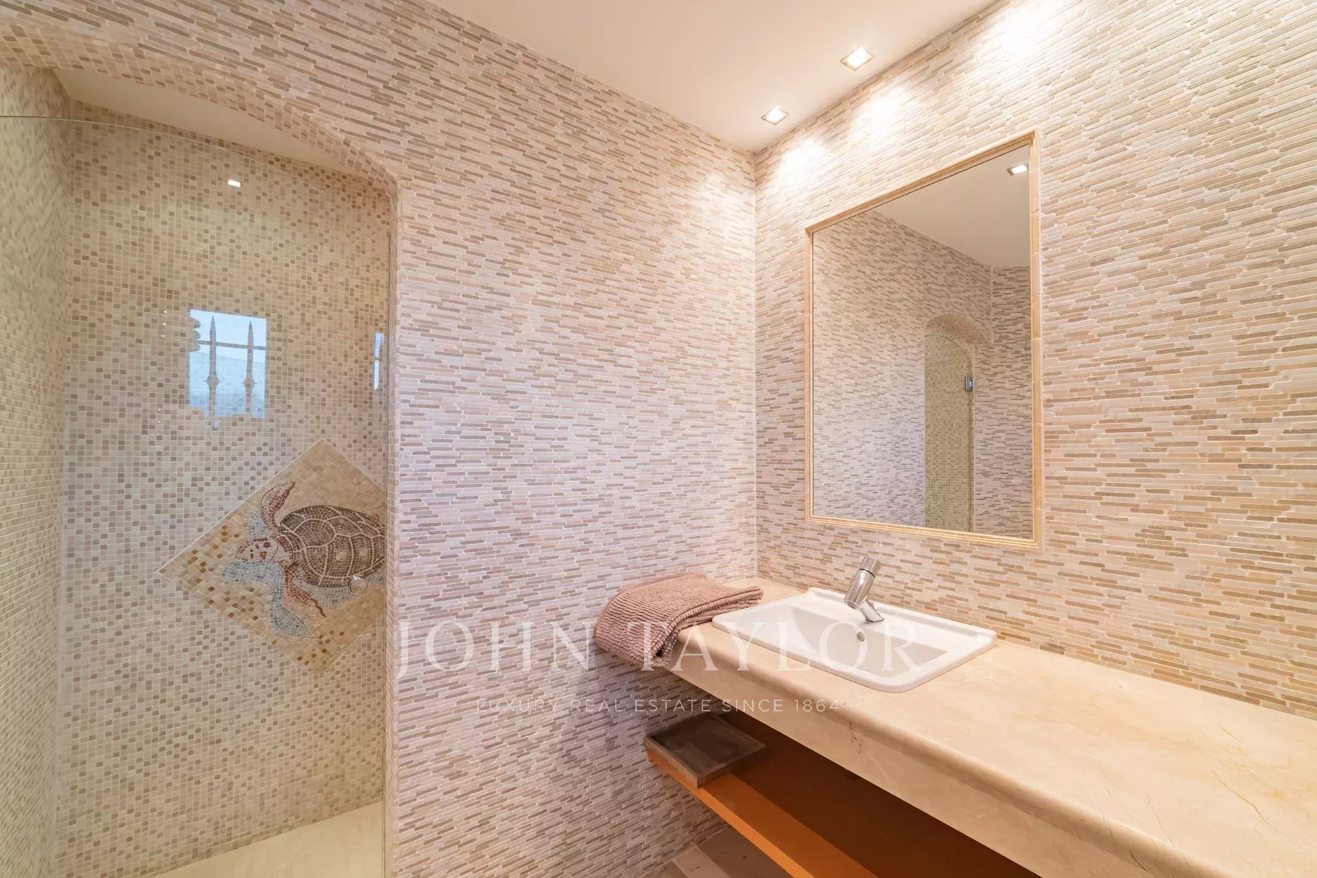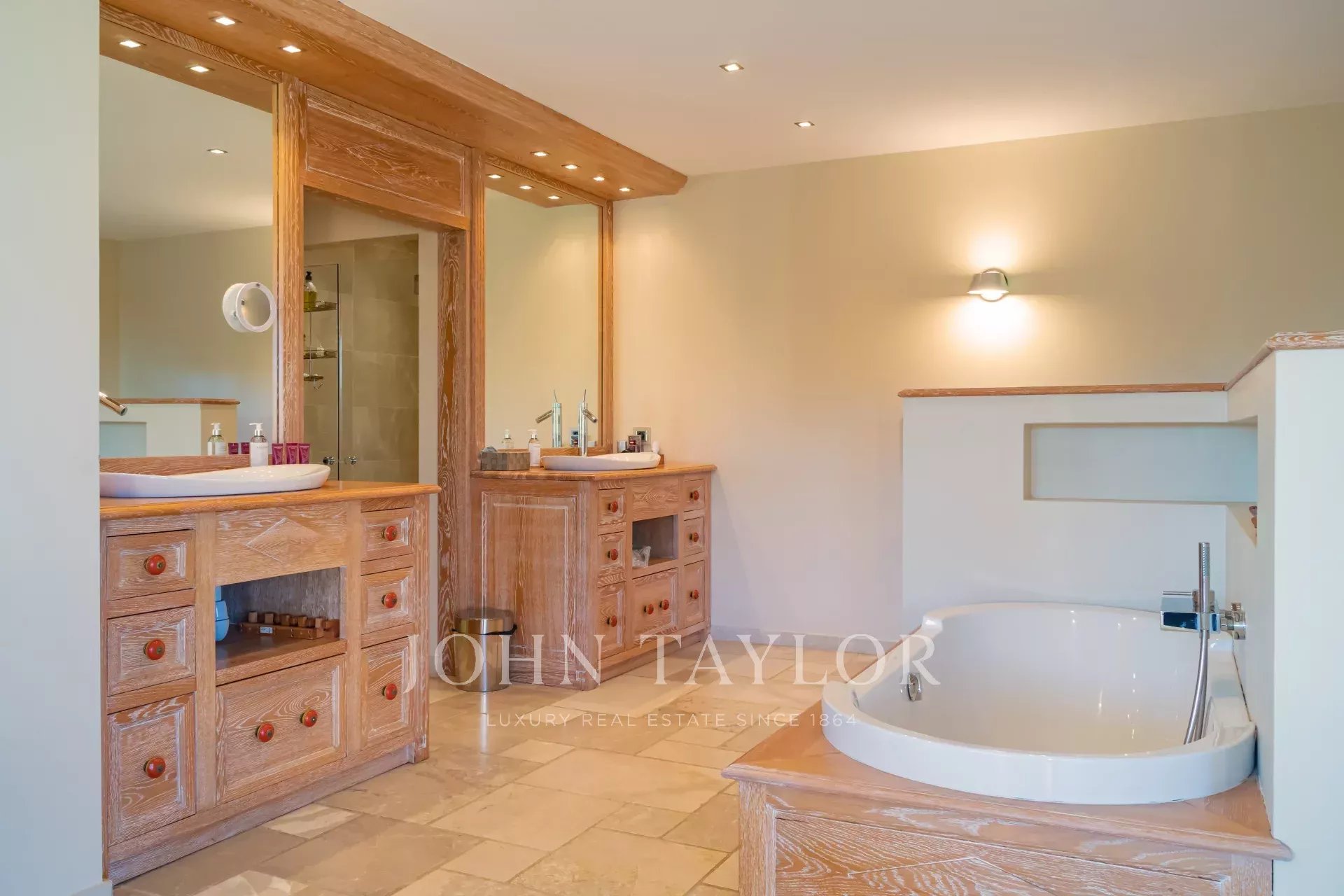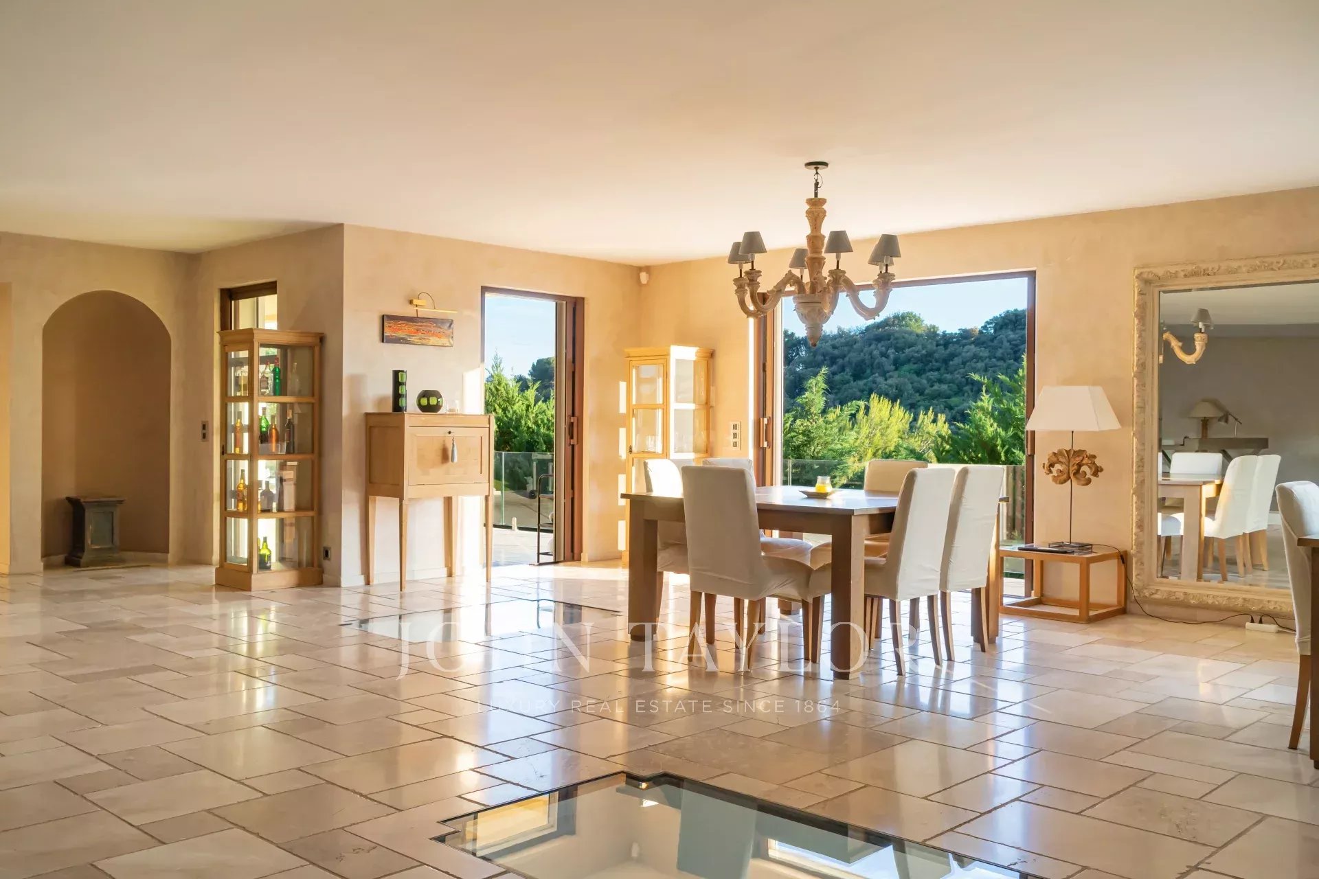 Magnifique villa de près de 550m2 composée au rez-de-chaussée d’un hall de réception de 200m2 avec cheminée, canapés et télévision, une salle à manger, une grande cuisine indépendante équipée notamment de machines à café, four à vapeur, machine à glaçons, friteuse, gaufrier... A cet étage, une chambre master avec salle de bain et 2 douches en suite, accès direct sur la terrasse avec vue piscine. L’immense dressing de la Master est accessible par un escalier.