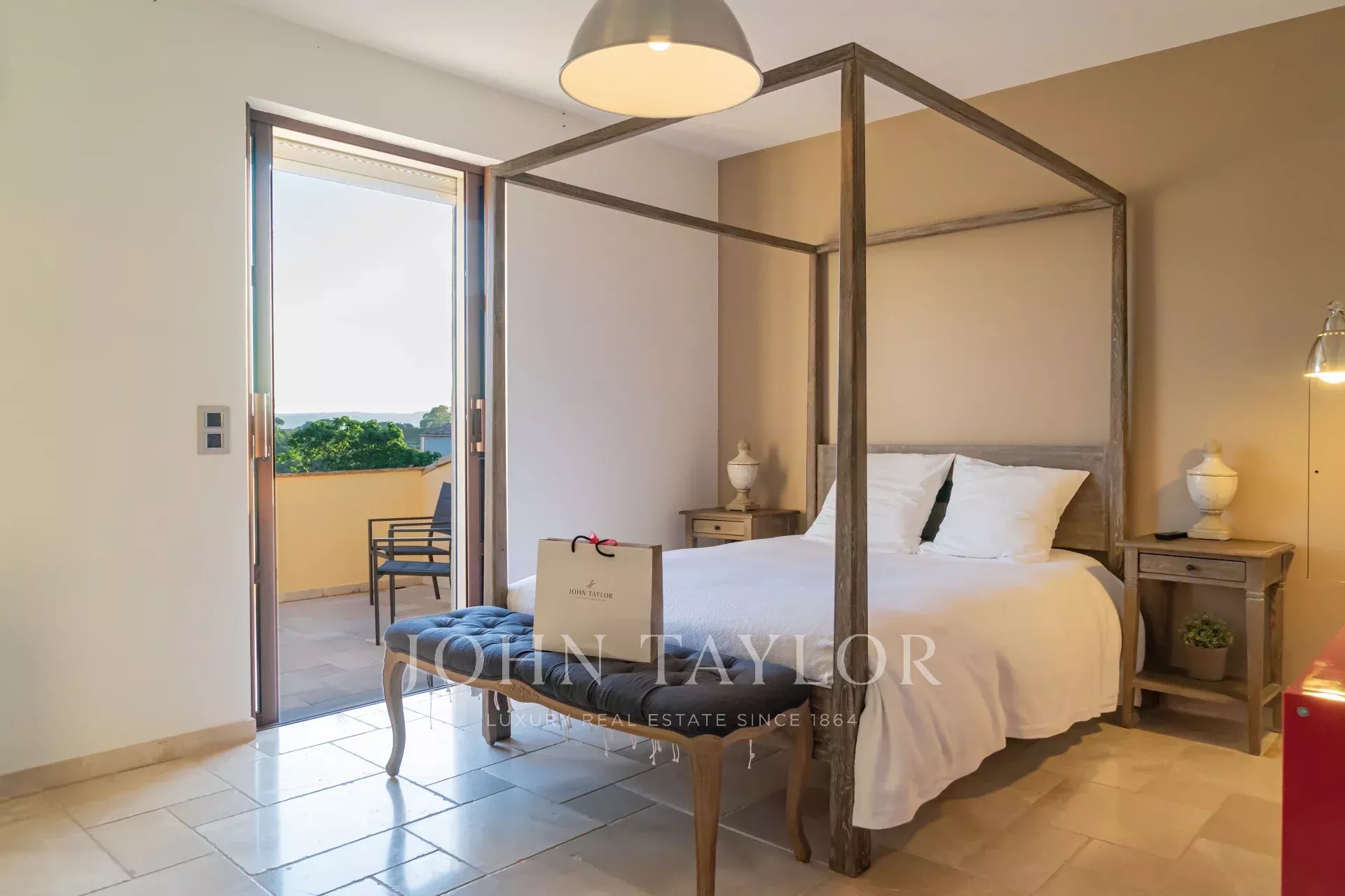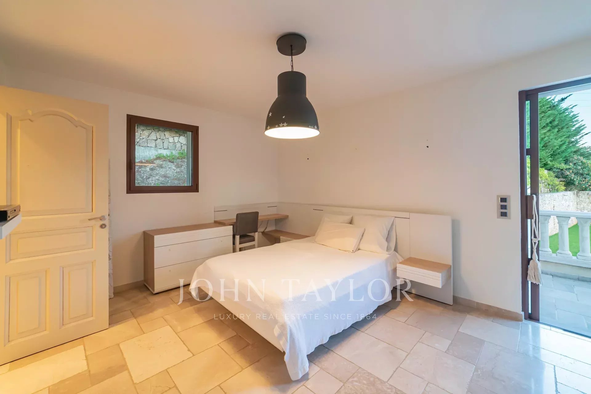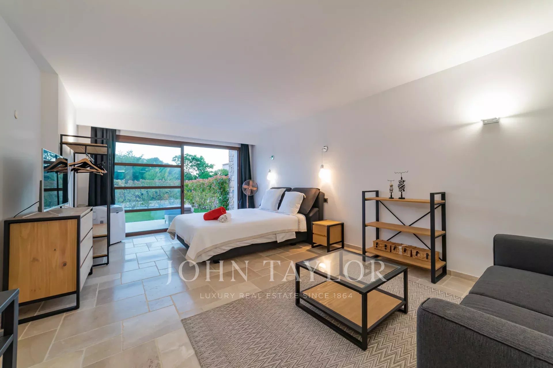 On retrouve une autre chambre master avec salle de bains en suite et un accès direct vers le jardin.