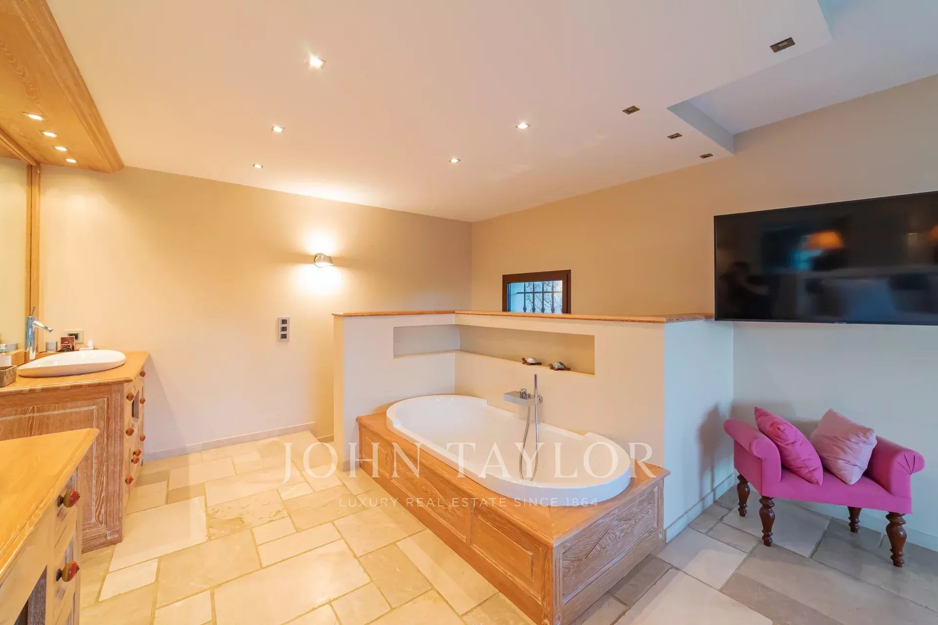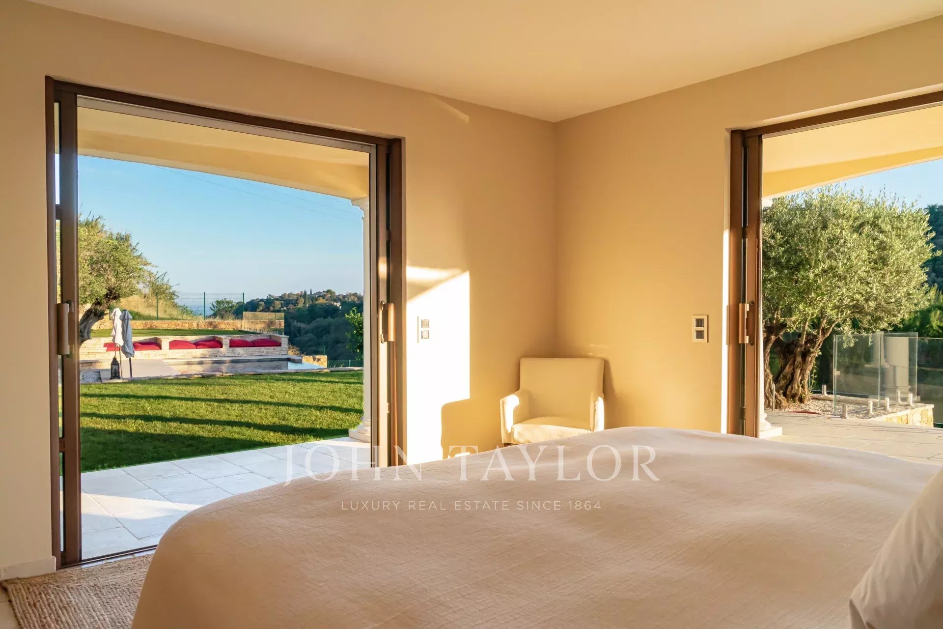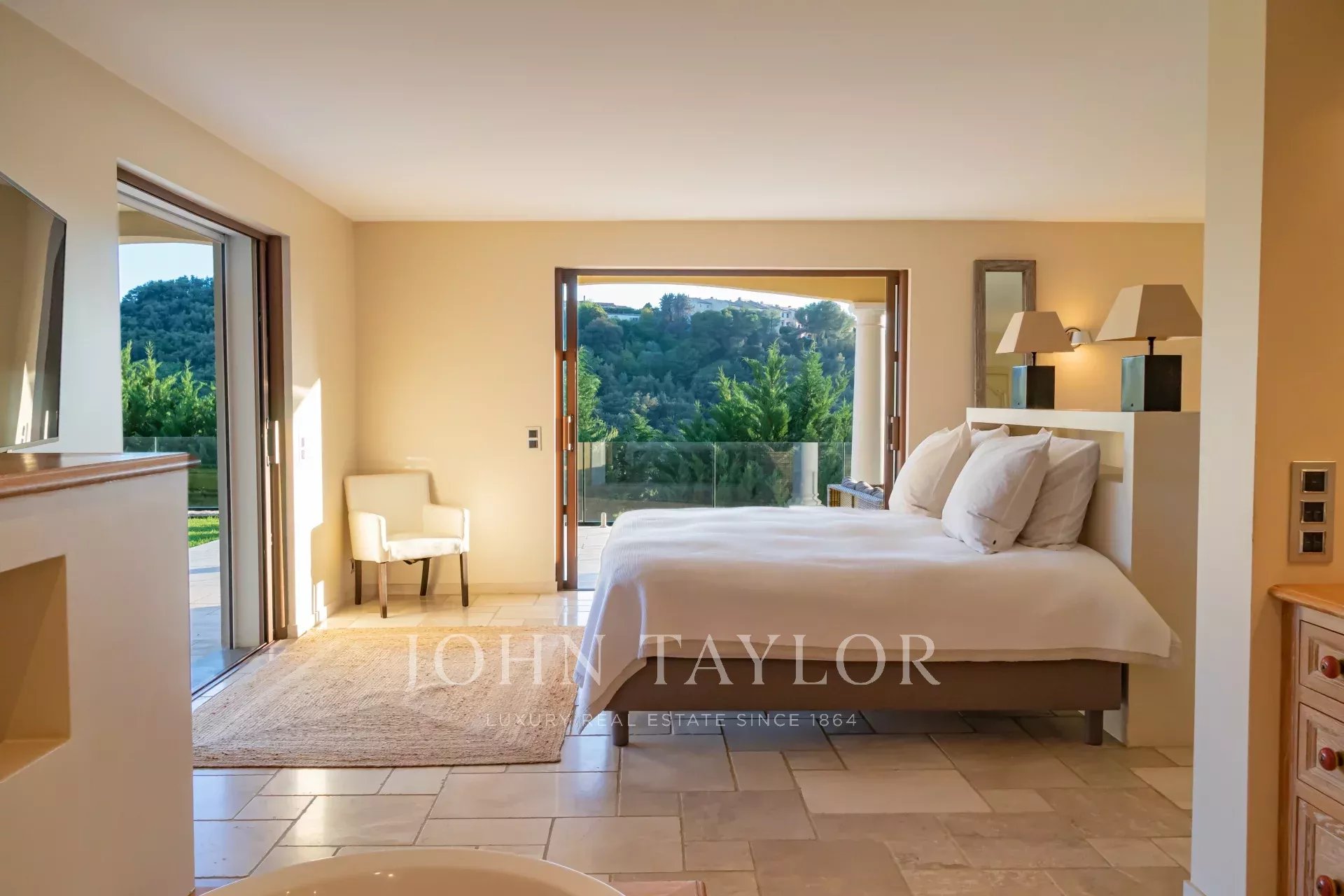 On retrouve une autre chambre master avec salle de bains en suite et un accès direct vers le jardin.