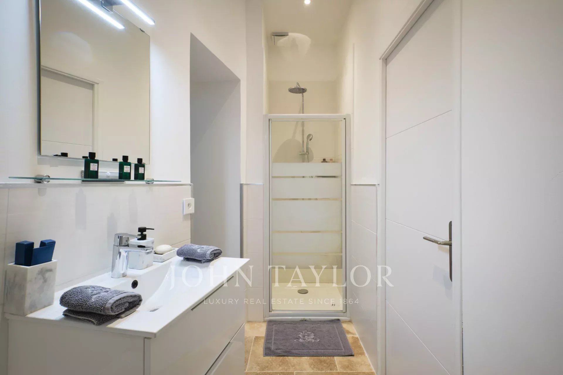 - Chambre 1 : lit double 160 cm, salle de bain avec douche, télévision, accès direct à la terrasse