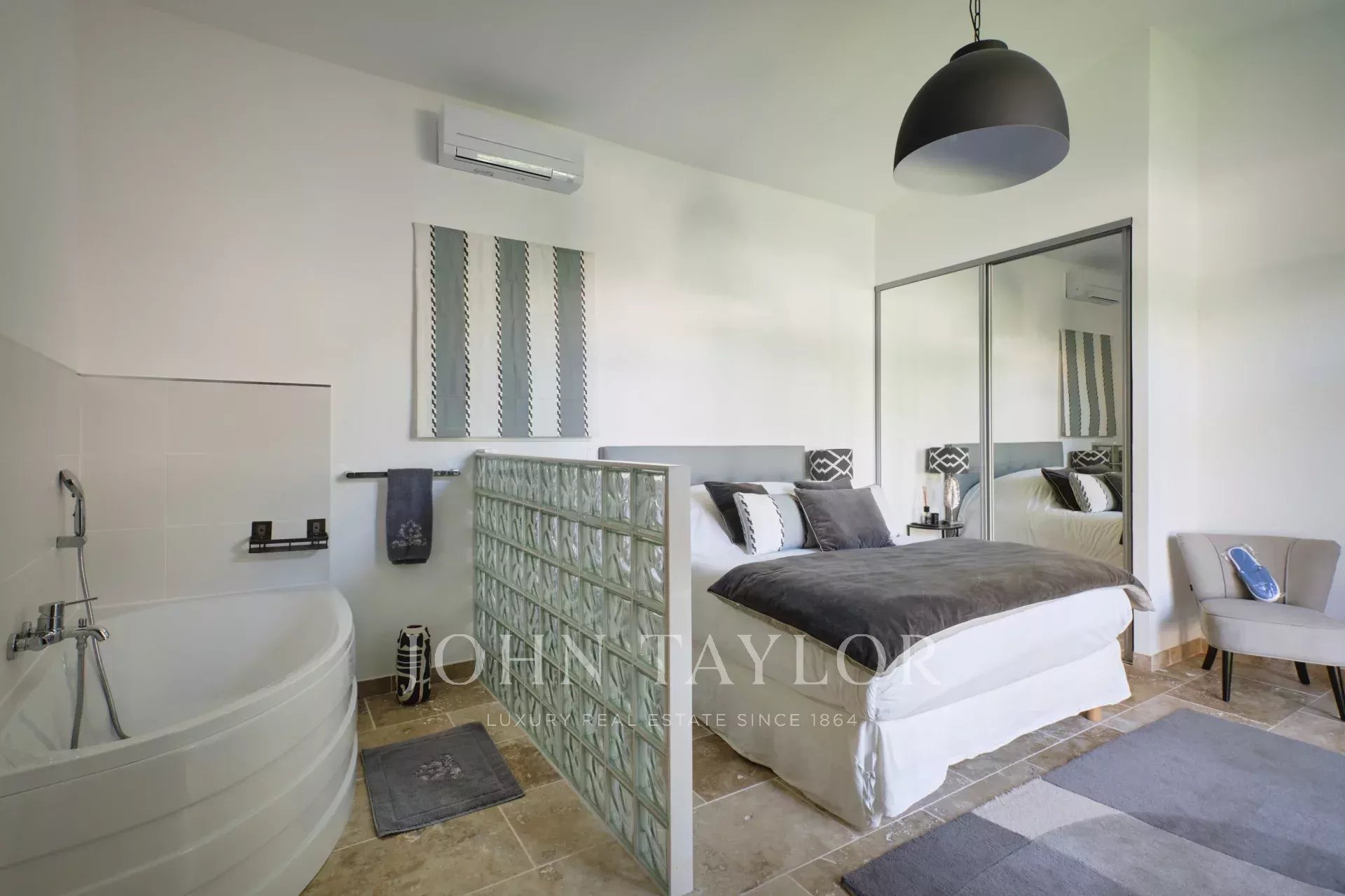 Pouvant accueillir jusqu’à 18 personnes, cette belle villa climatisée dispose de 7 chambres, d’un studio indépendant et de 7 salles de bain, répartis dans de grands espaces pensés pour le confort et la convivialité. Les propriétaires ont imaginé une atmosphère chic et décontractée, avec des prestations soignées et des matériaux de qualité. Plusieurs terrasses aux ambiances variées invitent à la détente, aux apéritifs entre amis, à la lecture ou simplement à profiter de la magnifique piscine.