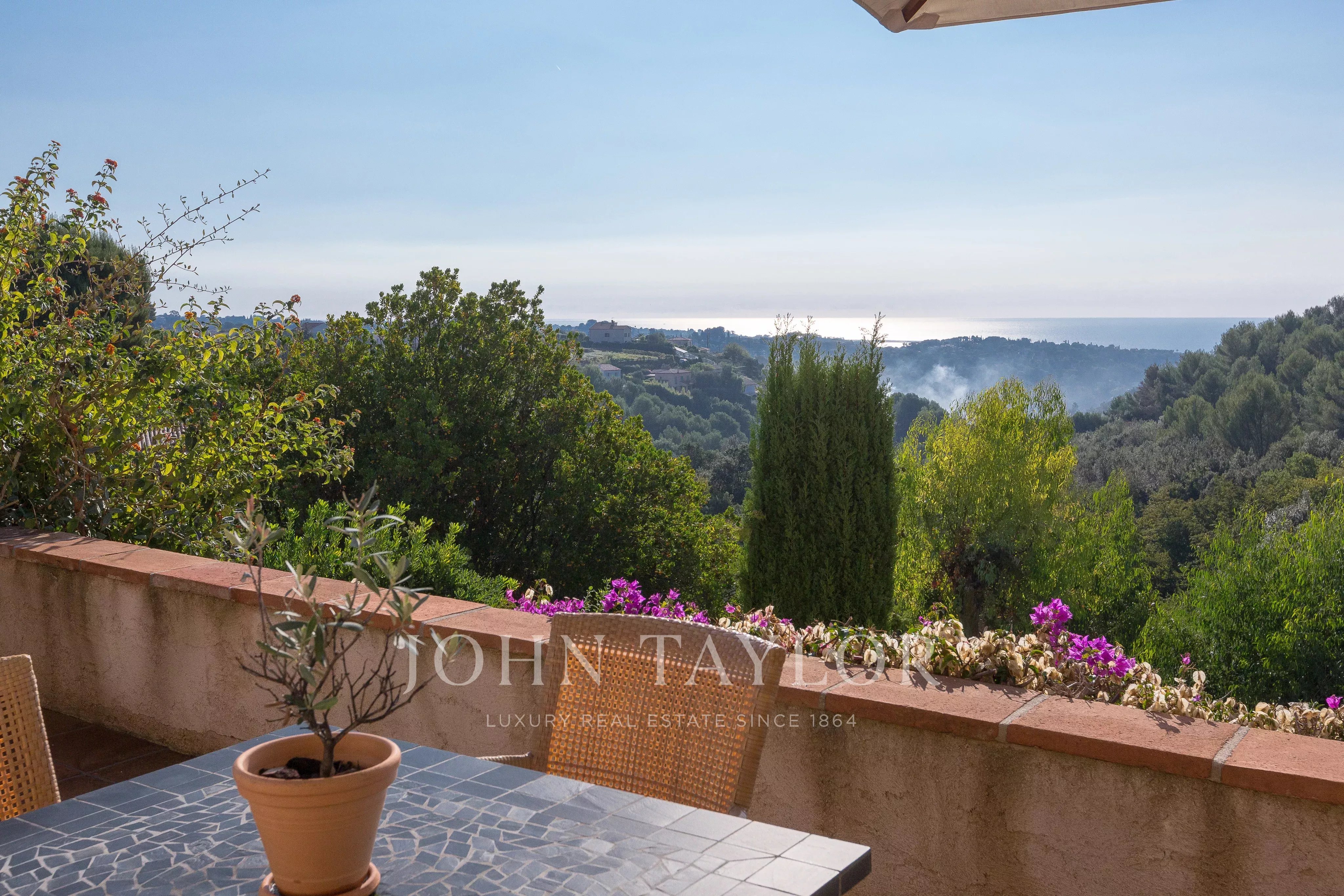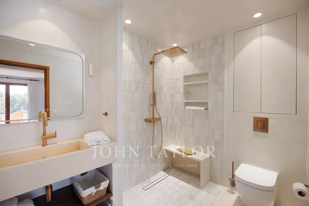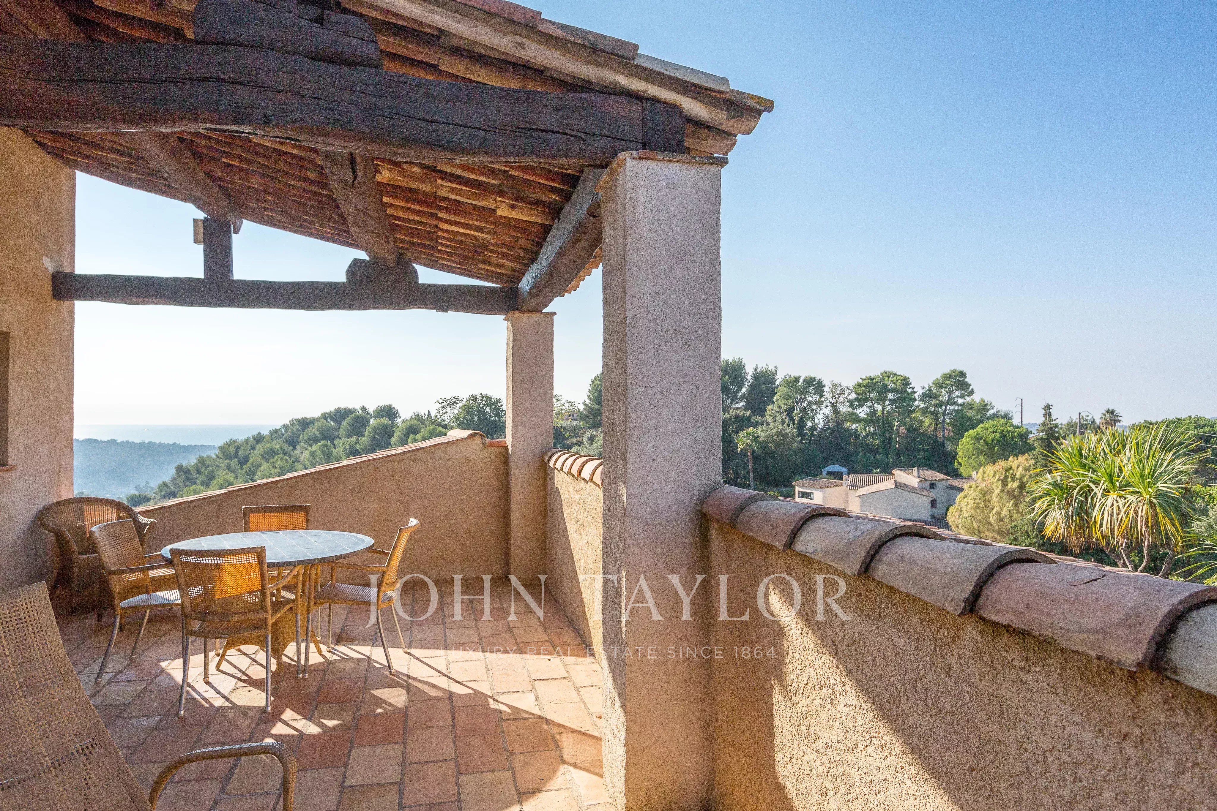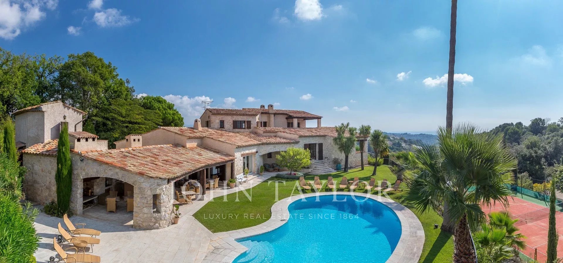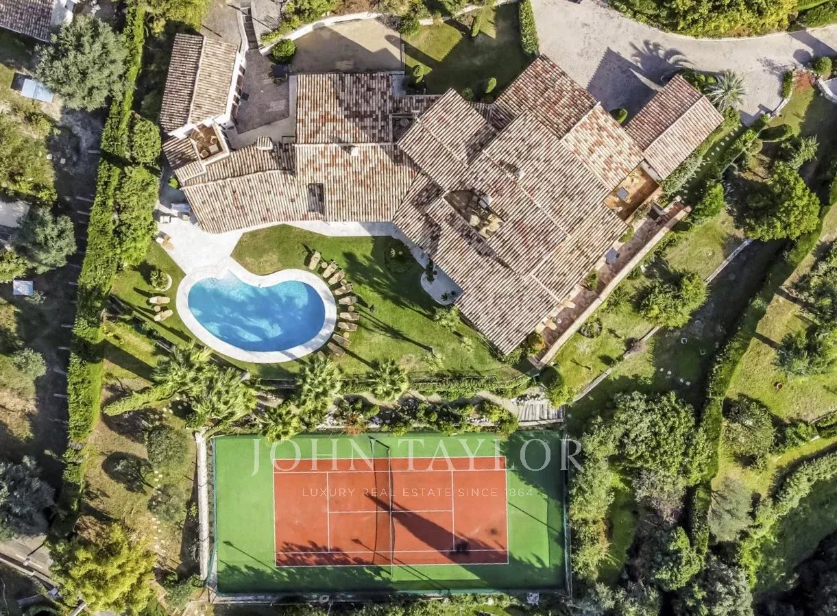 Située dans l’un des quartiers résidentiels les plus prisés de Saint-Paul-de-Vence, cette superbe propriété en pierre de 560 m², perchée en position dominante et au calme, s’étend sur un terrain de 6 400 m² et offre une vue imprenable sur la mer et les collines environnantes.
