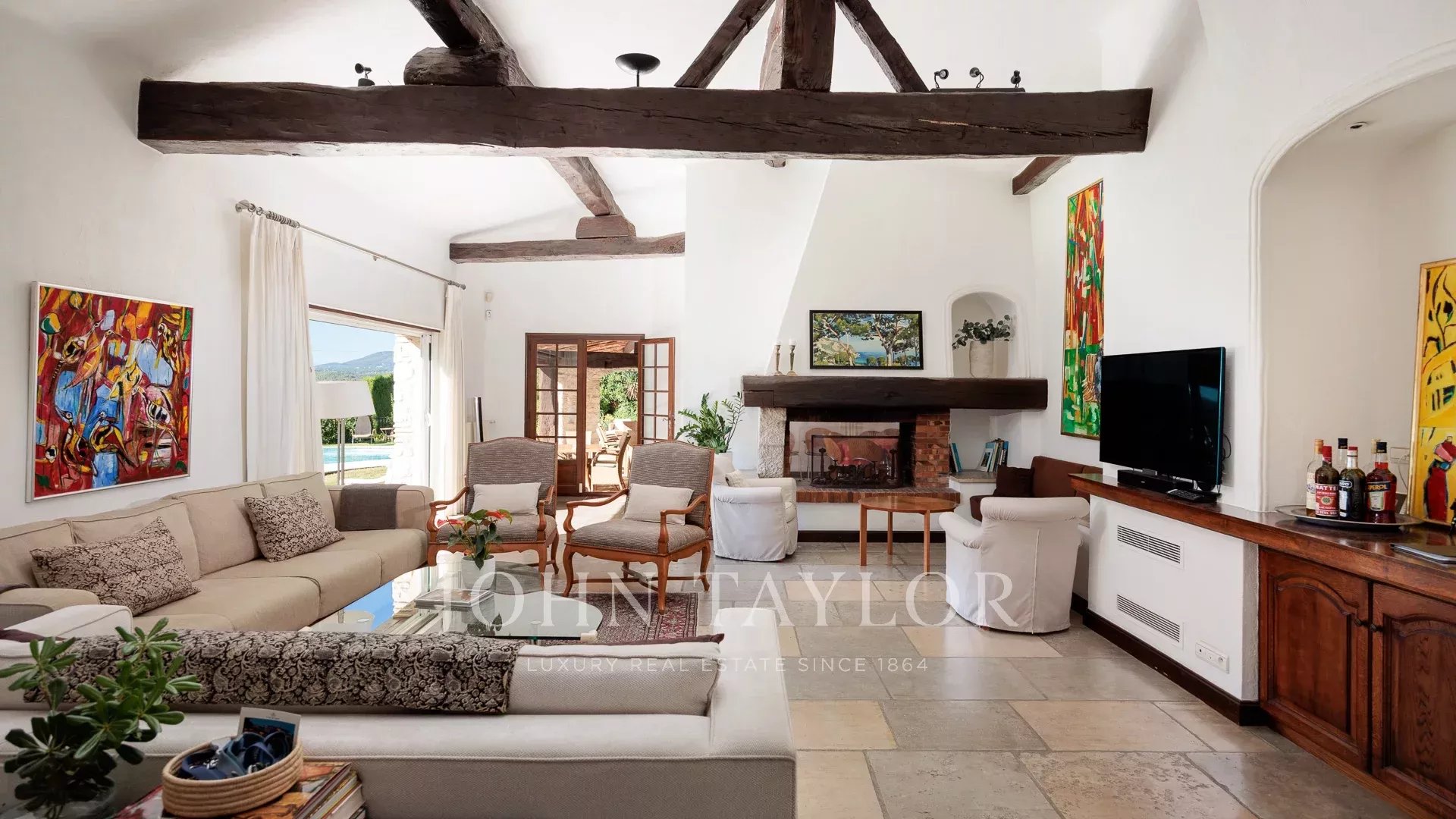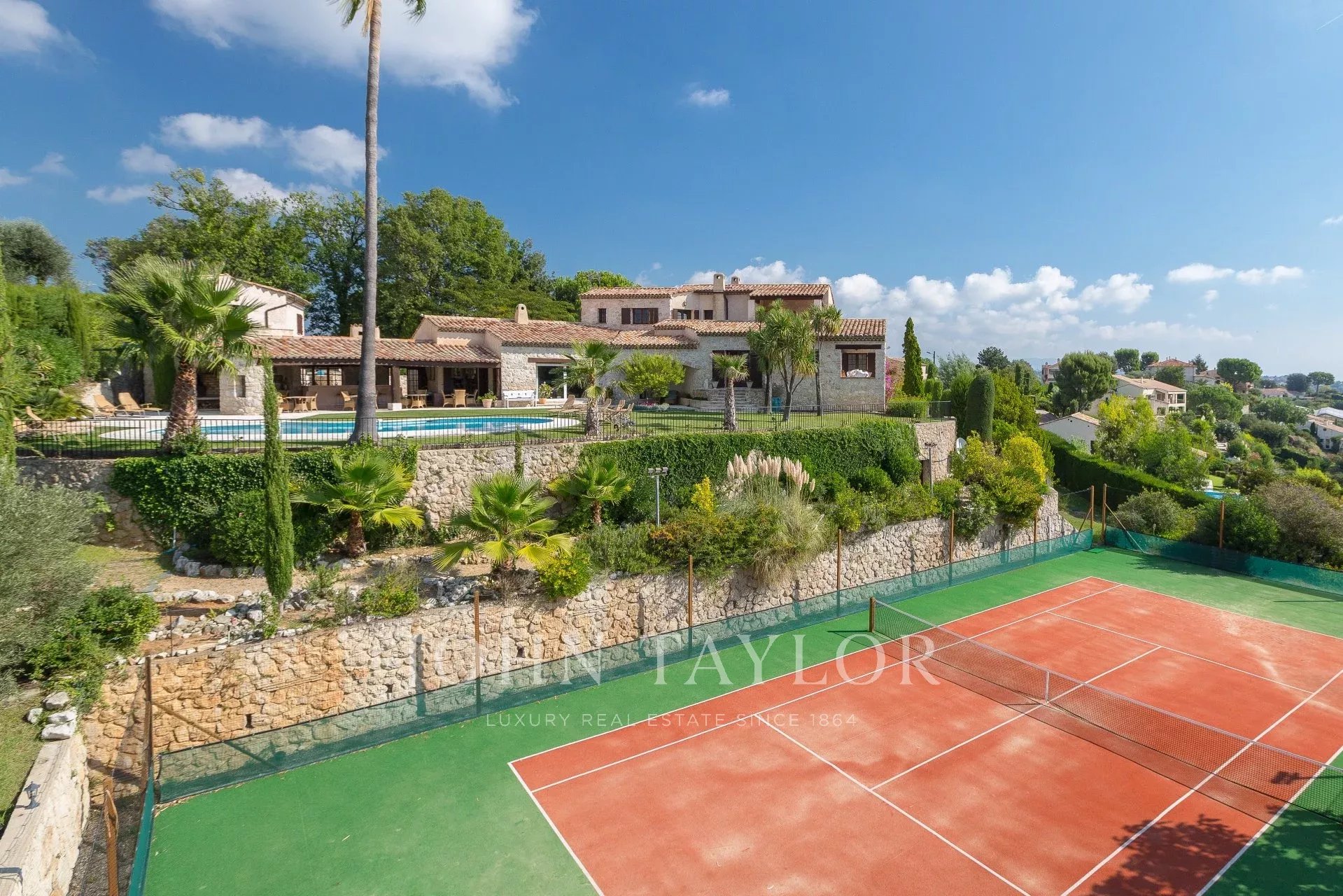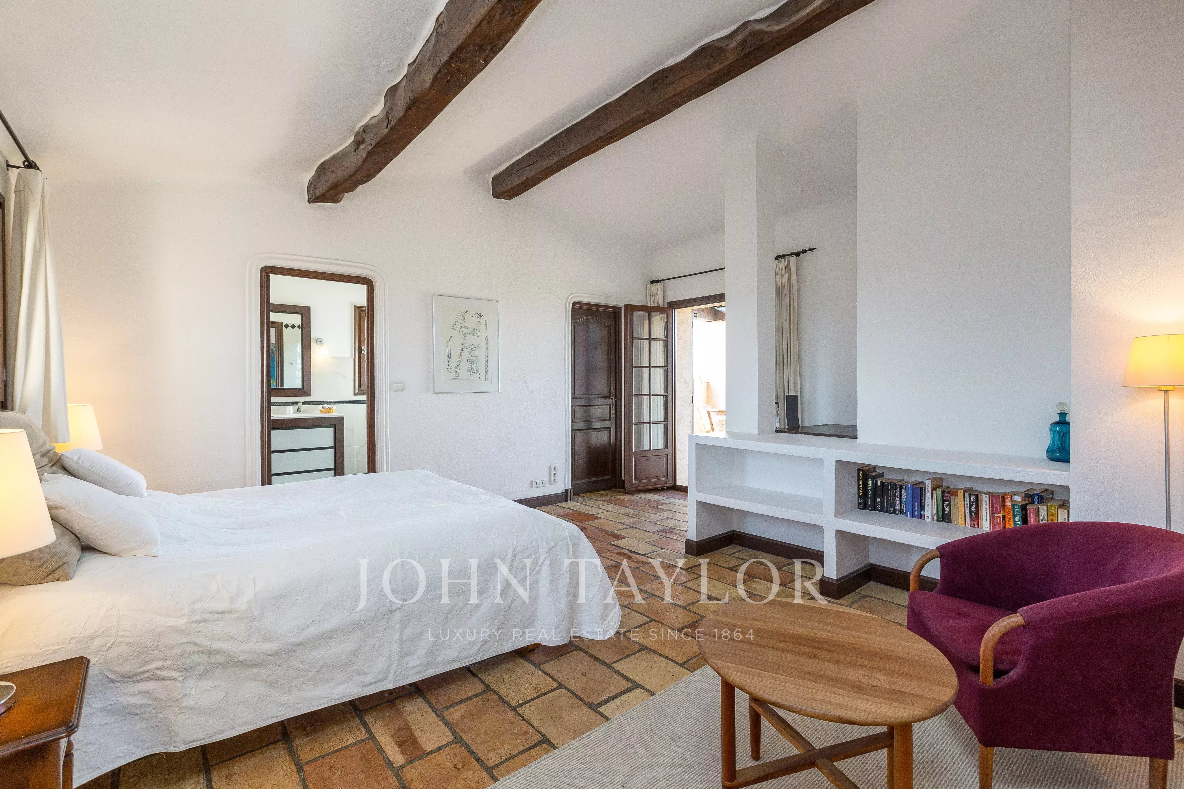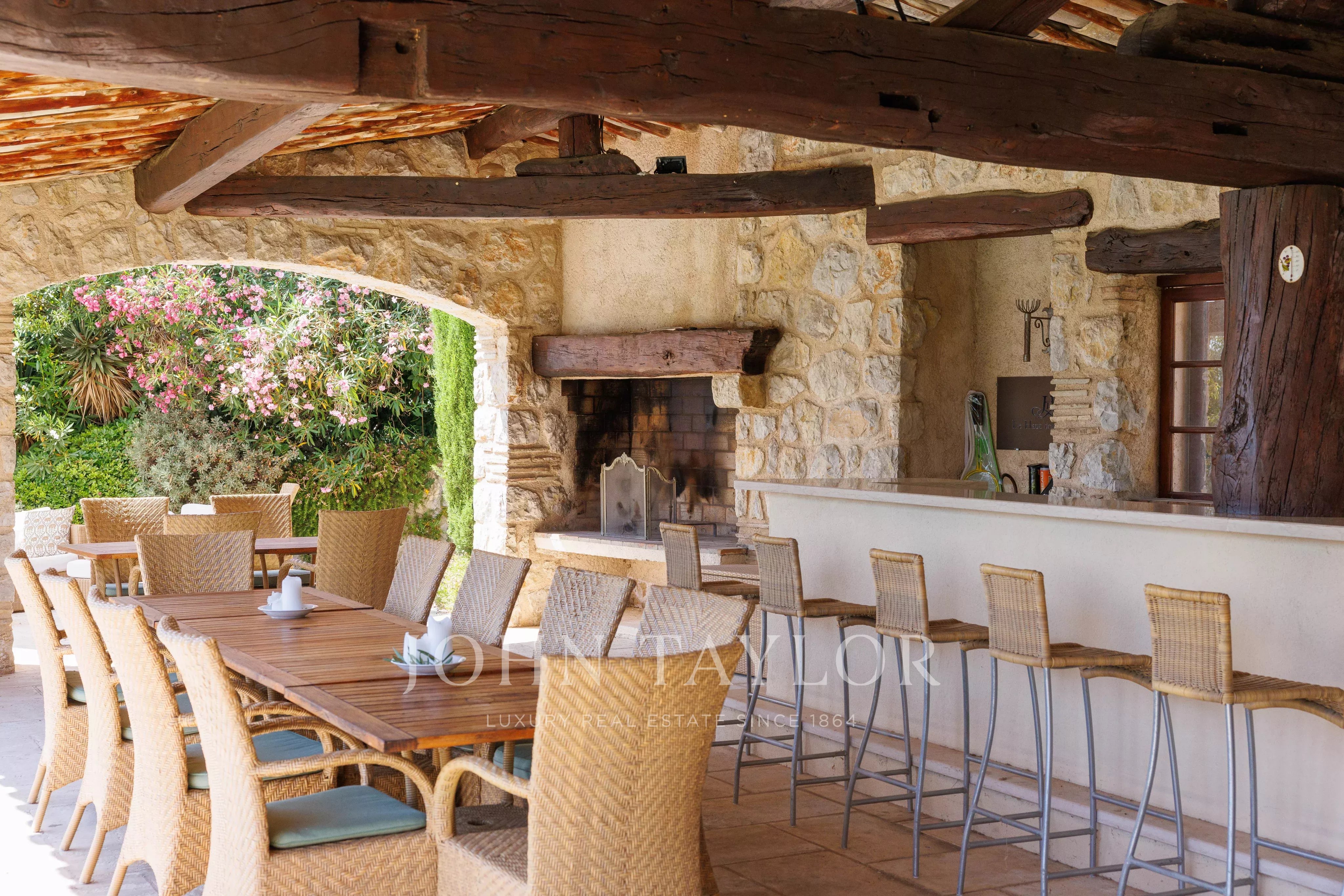 Située dans l’un des quartiers résidentiels les plus prisés de Saint-Paul-de-Vence, cette superbe propriété en pierre de 560 m², perchée en position dominante et au calme, s’étend sur un terrain de 6 400 m² et offre une vue imprenable sur la mer et les collines environnantes.