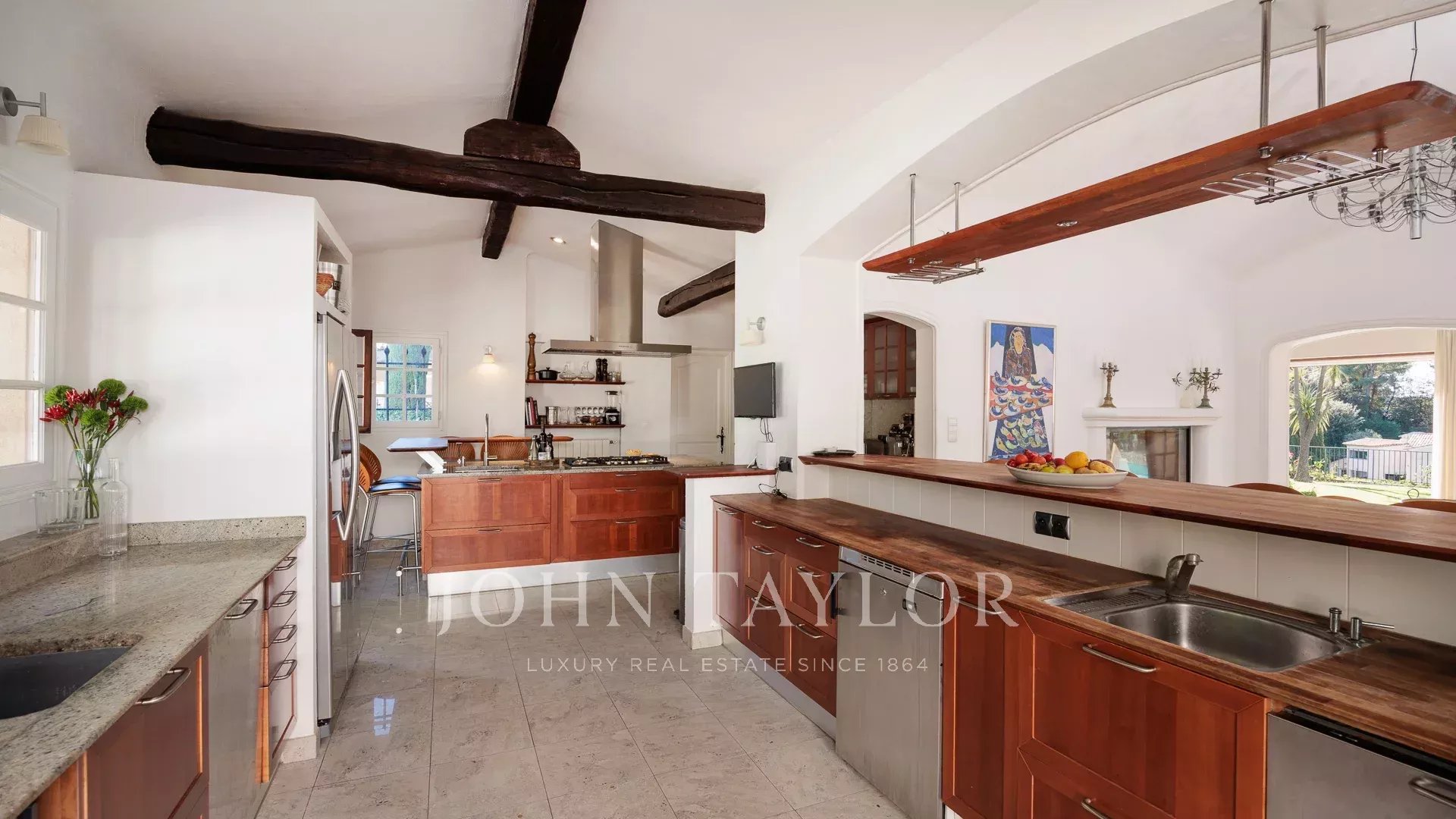 Avec ses 9 chambres en-suite, cette villa peut accueillir jusqu’à 20 personnes dans un confort absolu. Elle offre de vastes espaces de vie lumineux, comprenant deux salons avec cheminée, une cuisine entièrement équipée et une salle à manger conviviale.