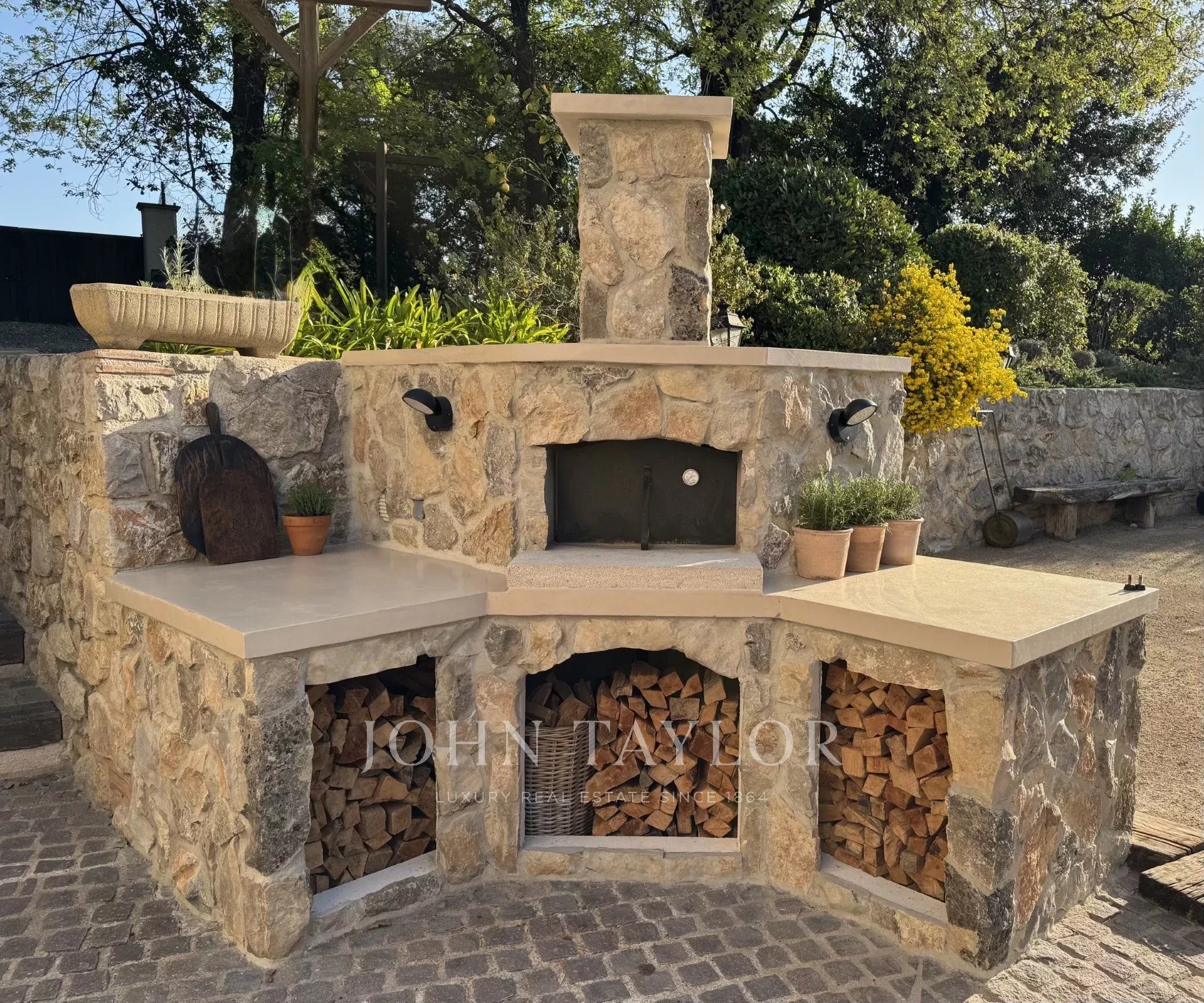 - Une grande terrasse, parfaite pour les repas d’été, équipée d’une cheminée extérieure, d’un barbecue et d’un four à pizza, idéale pour des moments conviviaux en famille ou entre amis