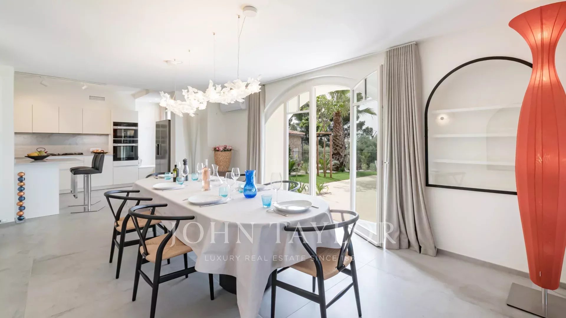 Salle à manger spacieuse ouvrant sur une terrasse,
