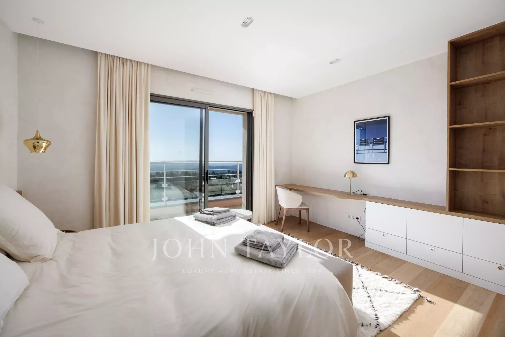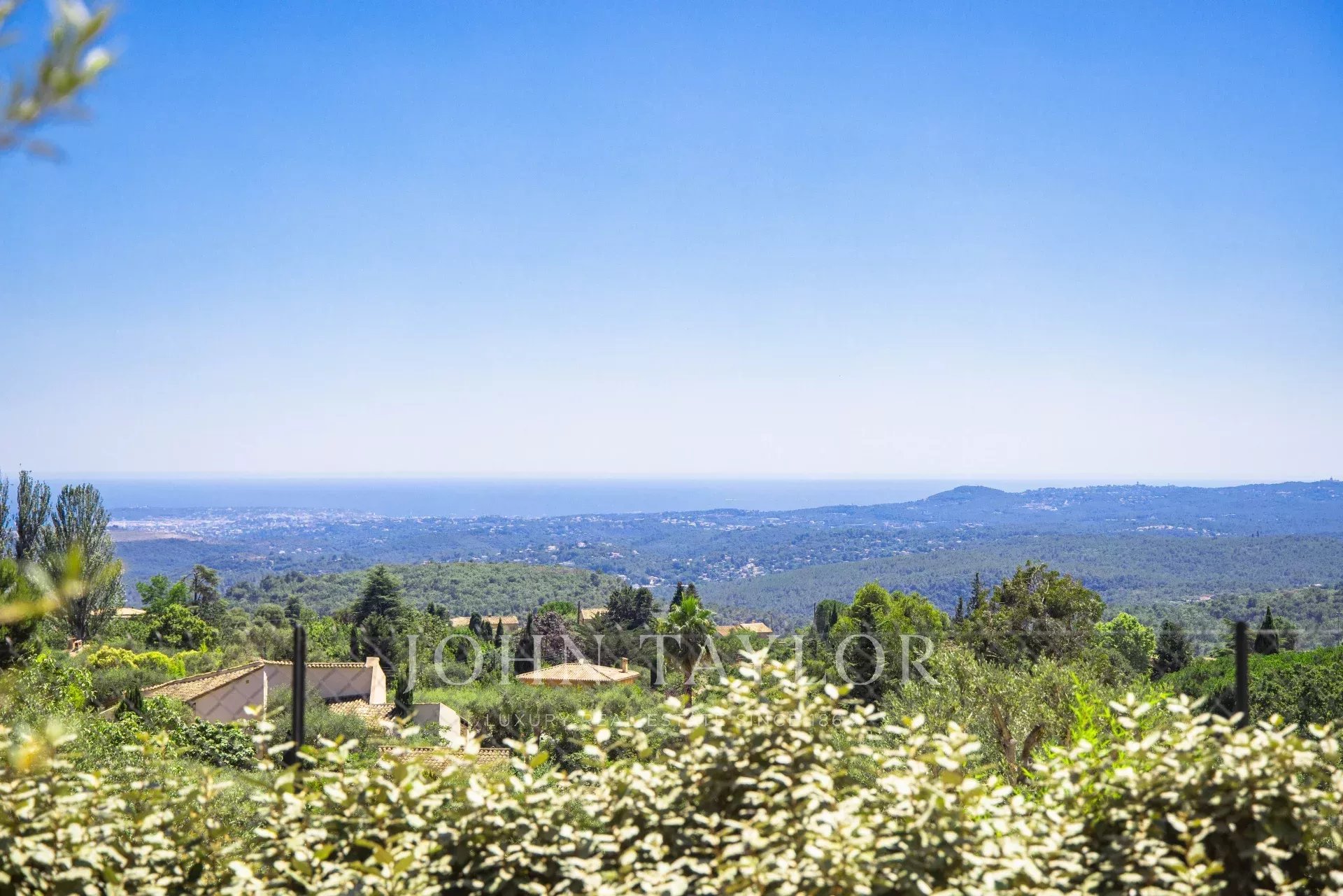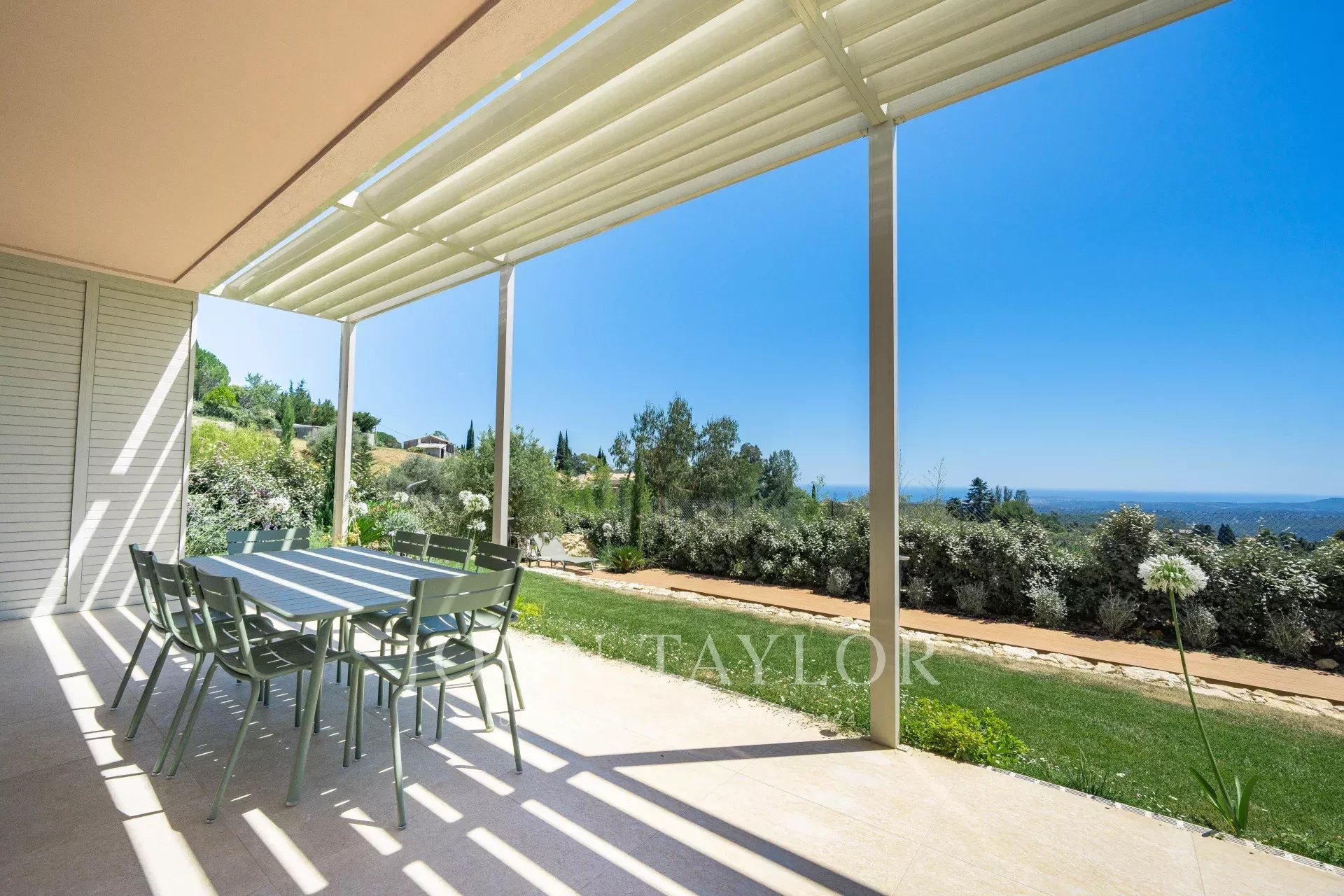 Villa californienne offre une vue carte postale sur la mer et se situe à proximité du charmant village de Tourrettes-sur-Loup, dans un quartier résidentiel calme.