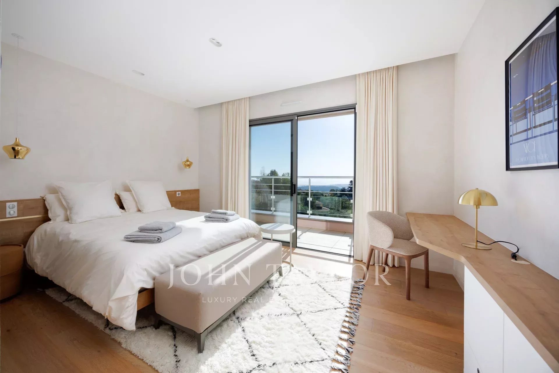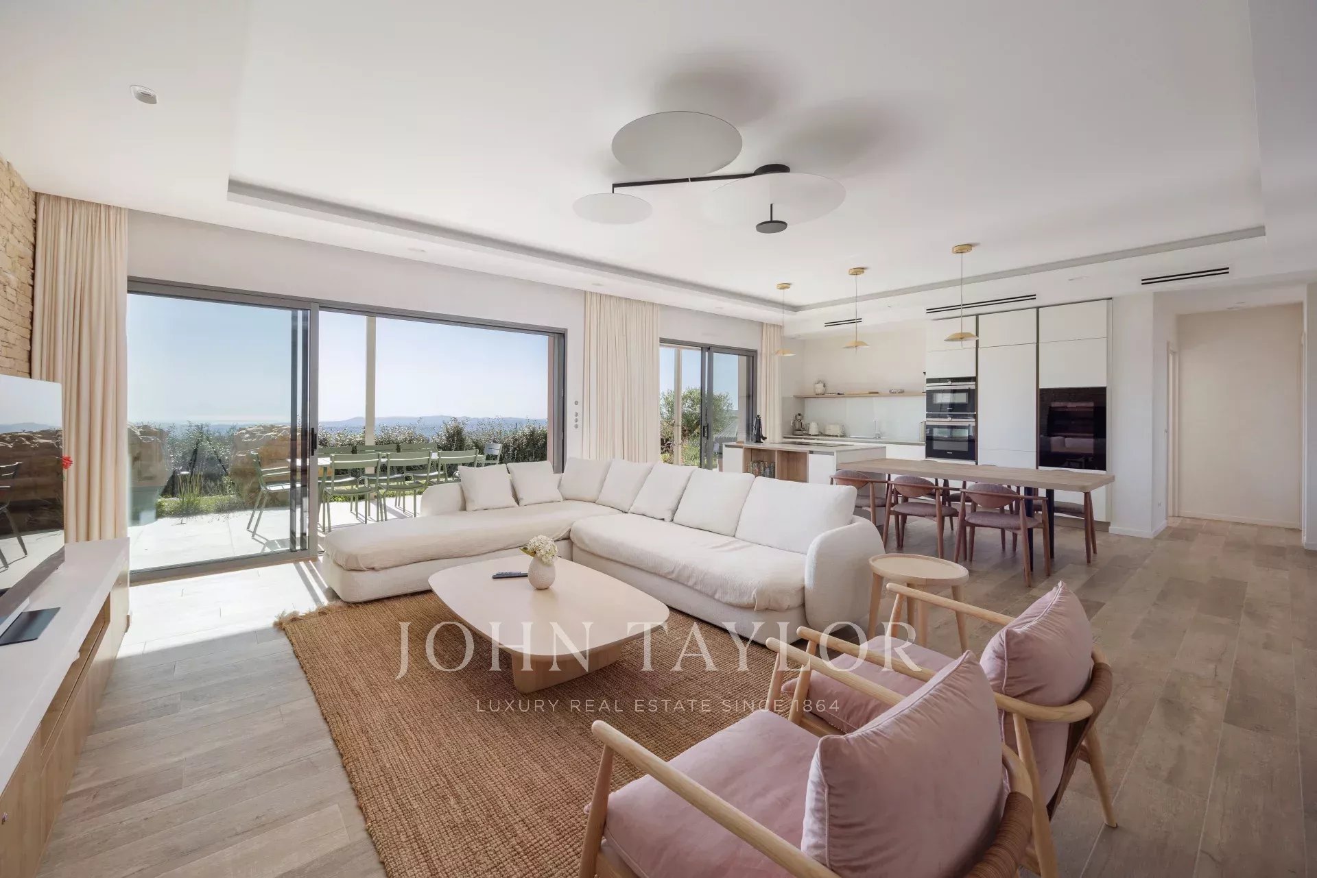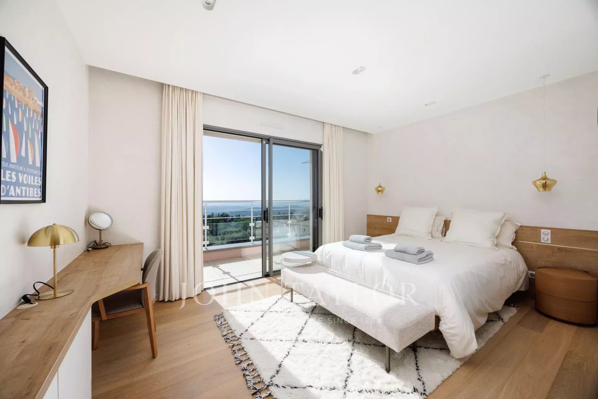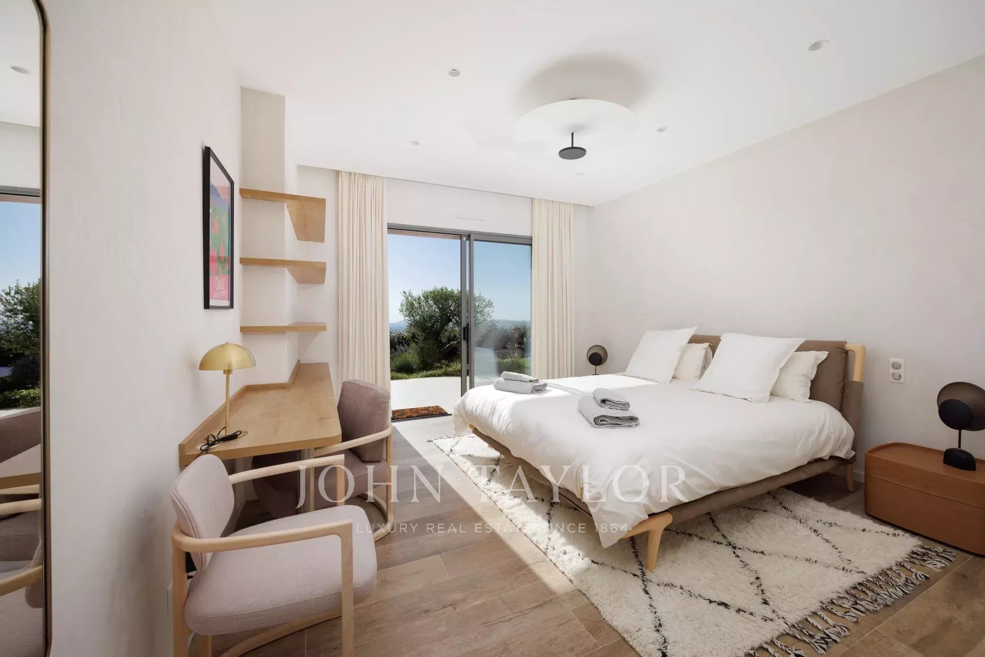 Villa californienne offre une vue carte postale sur la mer et se situe à proximité du charmant village de Tourrettes-sur-Loup, dans un quartier résidentiel calme.