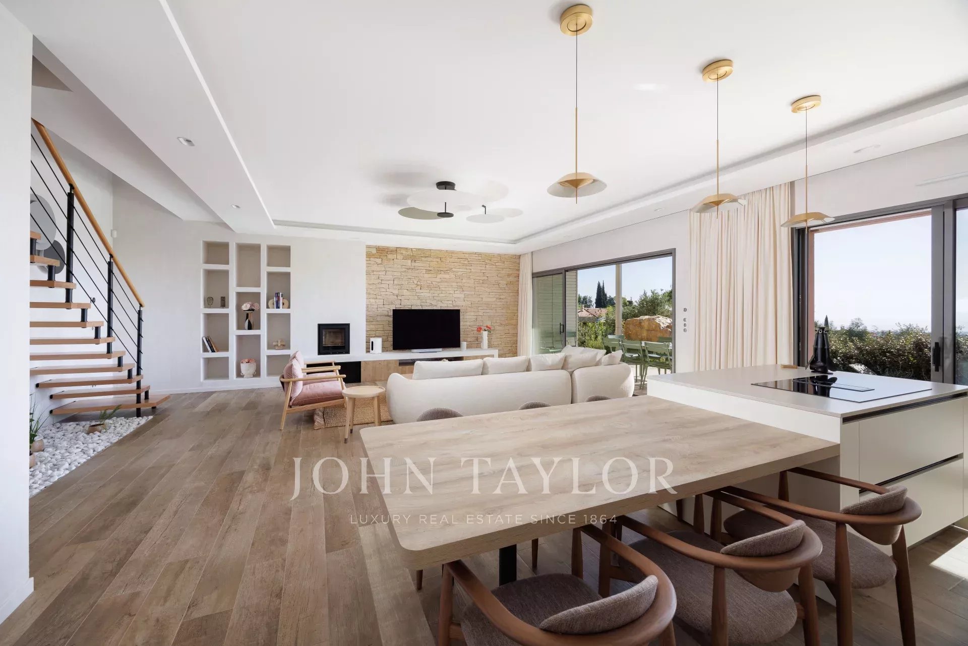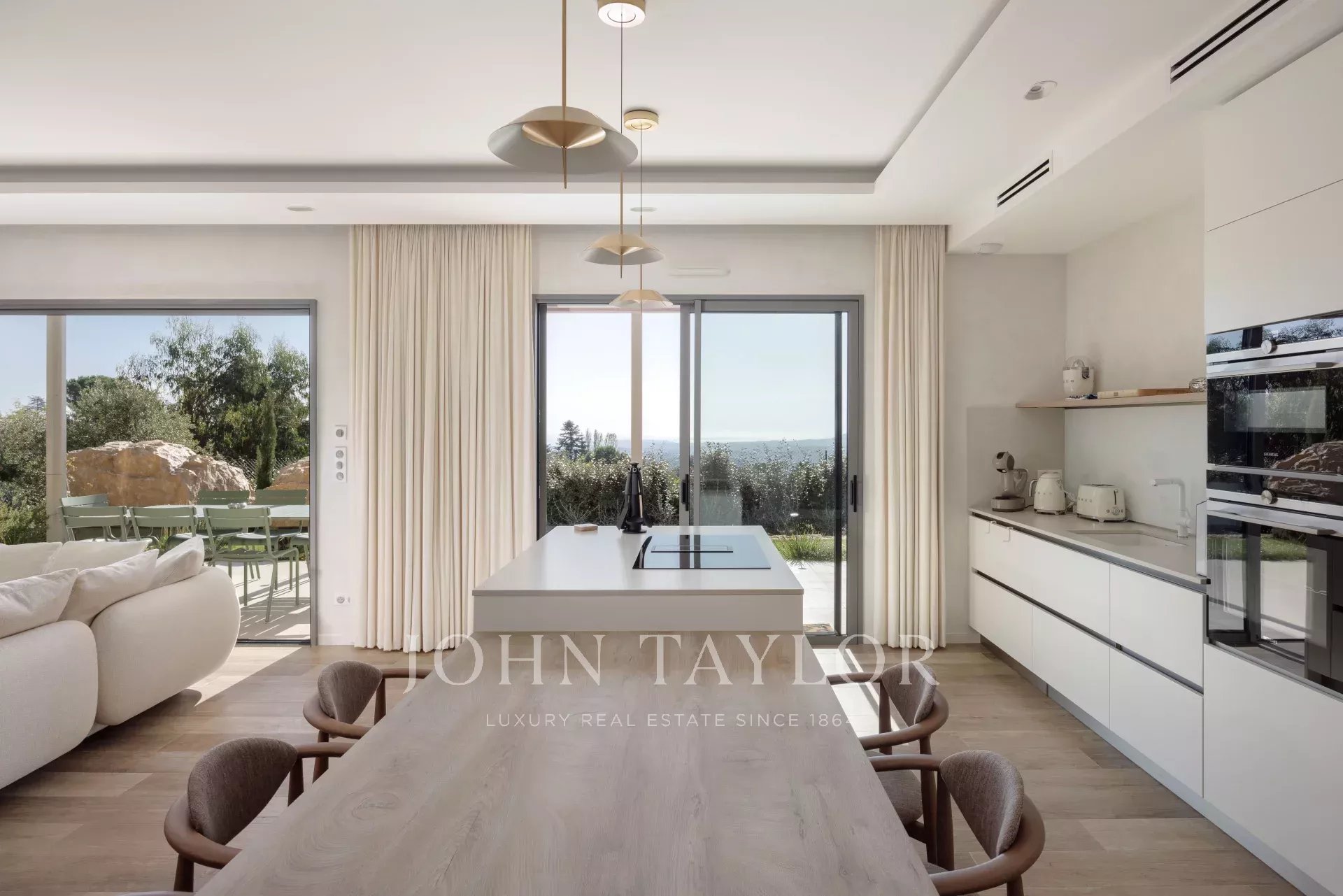 Avec une superficie de 152 m², cette villa moderne et lumineuse est idéale pour un séjour en famille ou entre amis dans l’arrière-pays niçois. Au rez-de-jardin, une grande cuisine entièrement équipée s'ouvre sur un vaste séjour convivial, offrant un accès direct à une terrasse meublée. Elle dispose de trois chambres climatisées, chacune avec salle de douche à l’italienne et dressing privatifs : une chambre au rez-de-jardin avec accès à la terrasse, et deux chambres à l’étage.